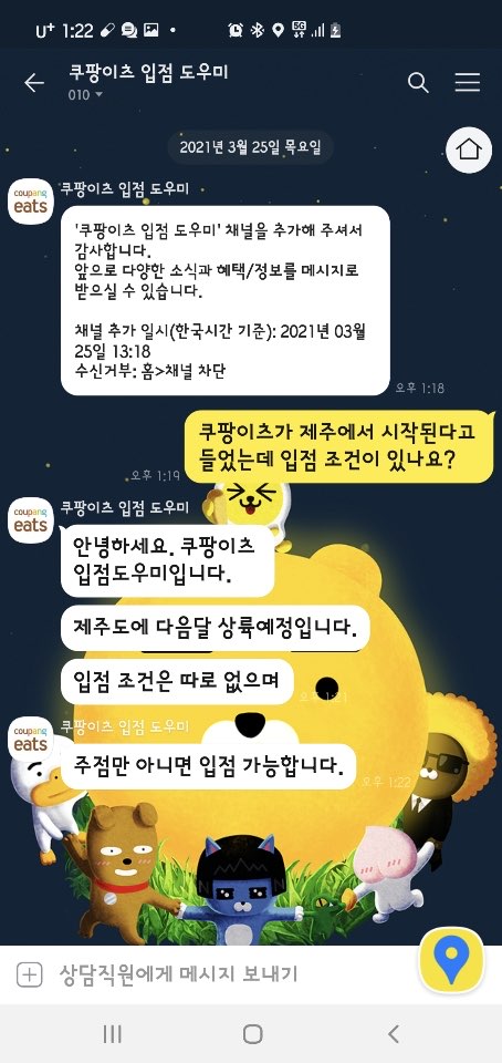 도내 ㄱ 배달대행업체 신제주 총판을 운영하는 A씨는 "(우리) 가맹점에 쿠팡잇츠 관계자가 찾아왔다. (업주가) 이미 배달앱도 깔았더라"고 전했다. 구제주 구간에서 영업하는 ㄴ 업체 관계자도 "프렌차이즈를 중심으로 영업을 시작한 것으로 안다"고 했다.