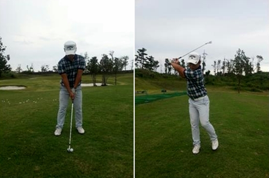 우선 훅 구질을 잡기 위해서 중요한 것은 체중 이동일 것이다. 그래서 이번에는 보다 쉽게 체중이동을 느낄 수 있도록 해주는 연습 방법을 알아보자.