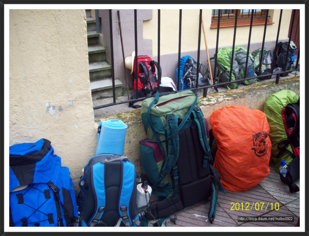 직원이 오기를 애타게 기다리는 순례자의 배낭 들~