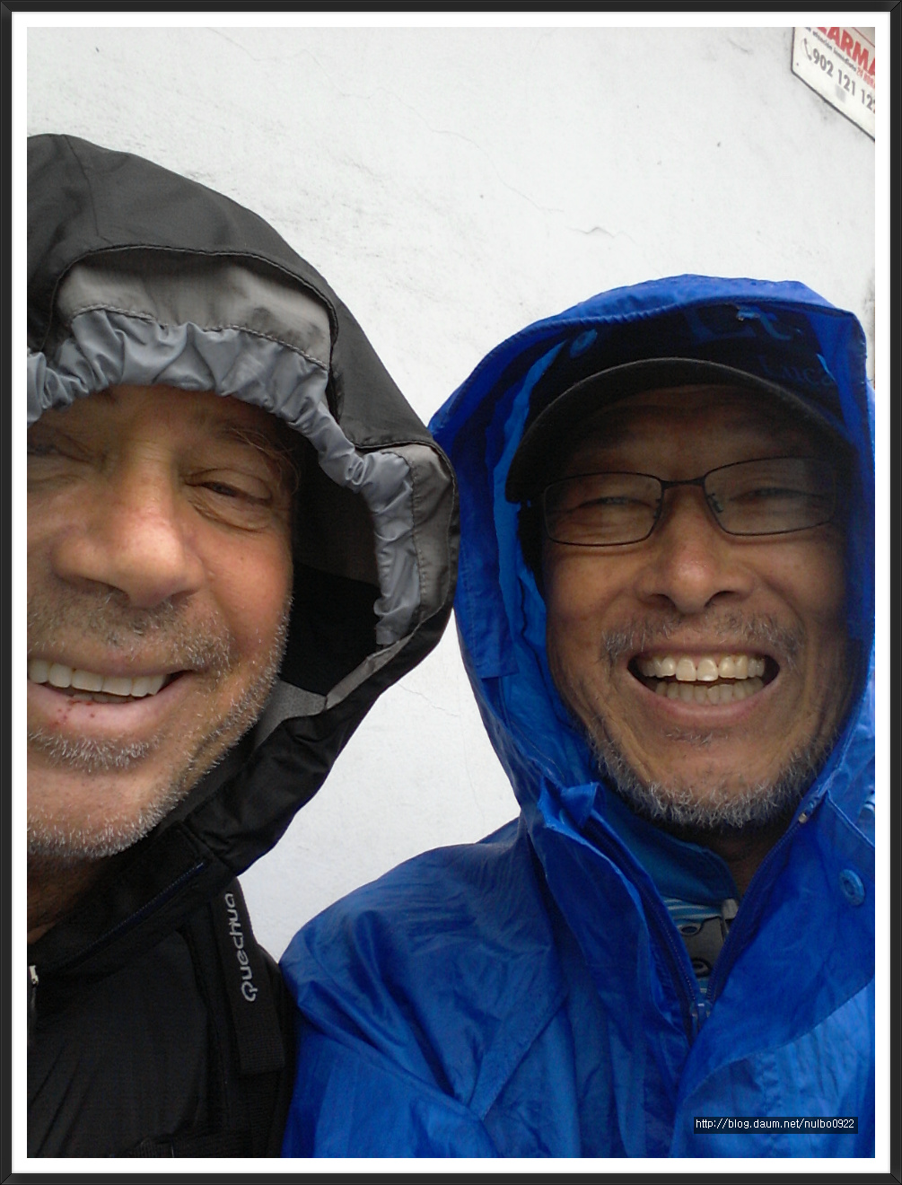어떤 때는 양말도 신고 자기도 합니다. 오늘도 걷는 내내 비가 왔습니다.