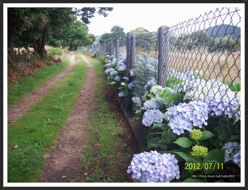 밭 경계가 온통 산수국으로 둘러 쳐져 있네요~~