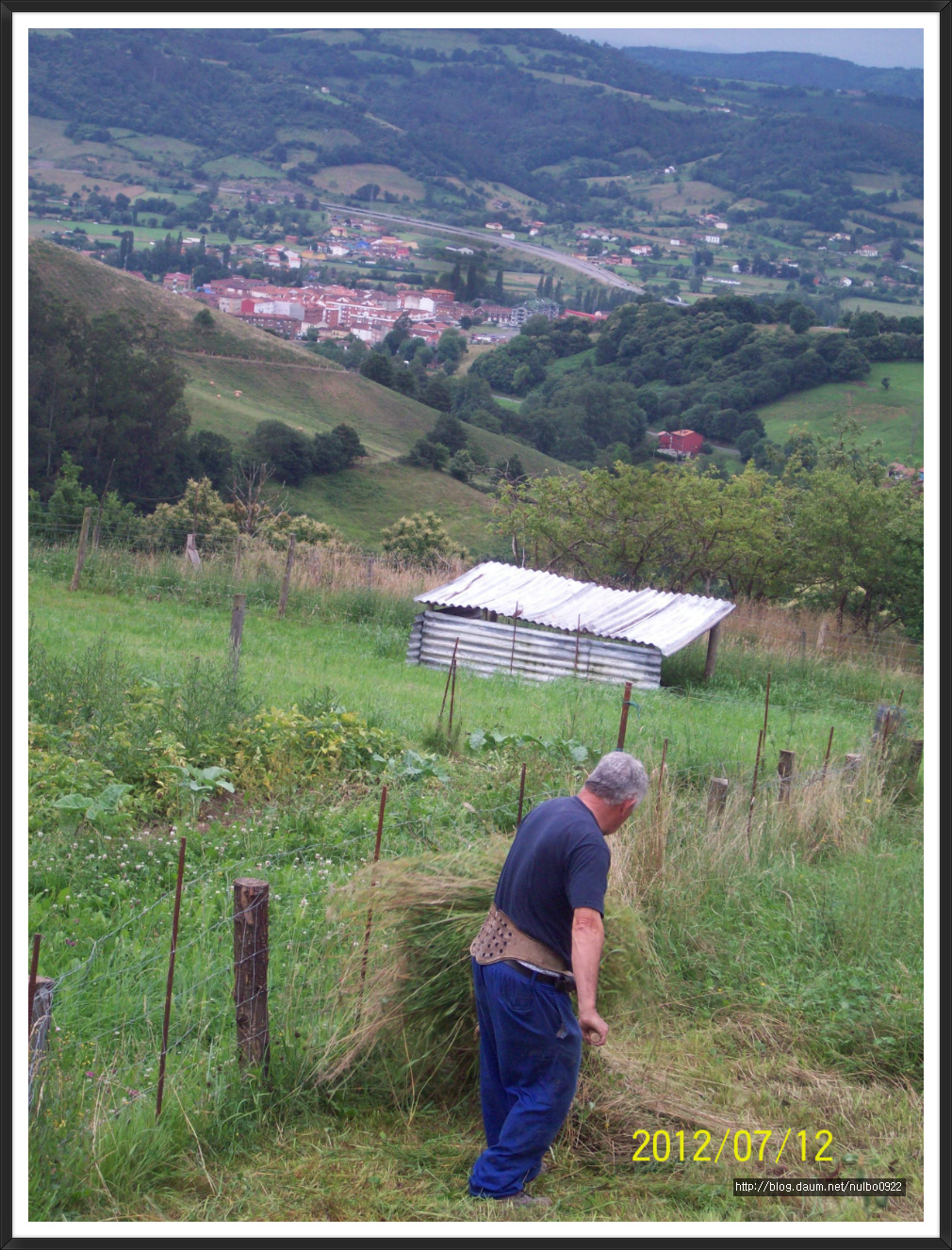 알베르게 앞 밭에서 목초를 치우시는 주민