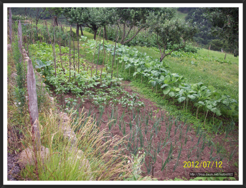한국의 농촌이 연상되는, 마당에 심어놓은 각종 채소 들~~