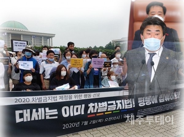 이에 제주지역 19개 시민단체와 정당이 함께하는 제주차별금지법제정연대는 강 의원이 본회의 발언에 이어서 이번에 발표한 입장문에서도 성소수자 혐오를 반복하고 있다는 내용의 성명을 20일 발표했다.