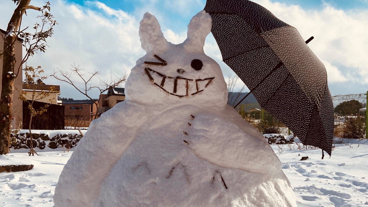 그런 가운데서도 마을 곳곳에는 철없는 아이들의 웃음소리가 넘쳐났다. 아이들은 우진제비오름과 녹차밭 가는 언덕길을 금세 초특급 눈썰매장으로 탈바꿈시켰다. 집집마다 개성넘치는 눈사람이 만들어졌다. 일주일간 임대 가능한 이글루까지 분양(?)되었다. 어른들의 SNS놀이터에는 영화 [러브레터]의 한 장면처럼 눈밭에 드러누워서, ‘오겡끼데스까’를 외쳐도 이상하지 않을 아름다운 오름 풍경과 ‘슬기로운 고립생활’ 체험수기 들이 속속 올라왔다.