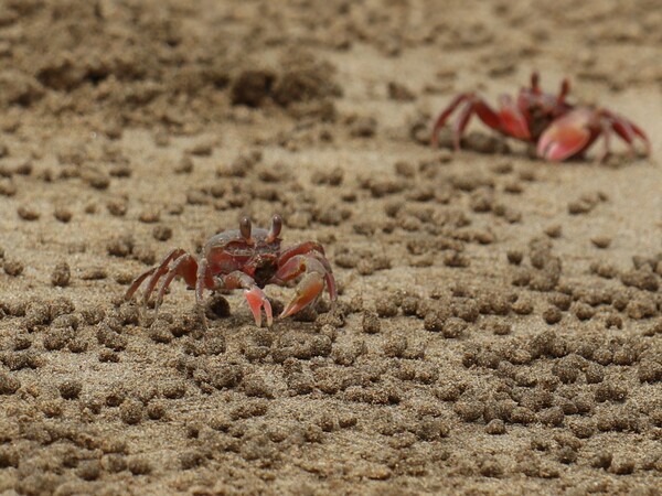 이곳에 서식하는 달랑게는 해수욕장 서측 귀퉁에 모여 있다. 우리 단체에서 모니터링한 결과 적어도 100개체 이상이 서식하는 것으로 확인되고 있는데 약 3백평이 안되는 좁은 공간에서 바닷물이 드나듬에 따라 해수욕장 위아래로 이동하며 먹이활동을 하고 있다.