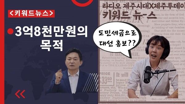 [키워드뉴스]는 제주MBC <라디오 제주시대>에서 제주투데이 기자들이 키워드로 정리한 한 주의 주요 뉴스를 전하는 라디오 방송 코너로, 매주 화요일 오후 6시 5분부터 7시까지 생방송으로 진행된다. ‘보이는 라디오’로 제작한 '키워드 뉴스' 영상을 제주투데이에 함께 싣는다.