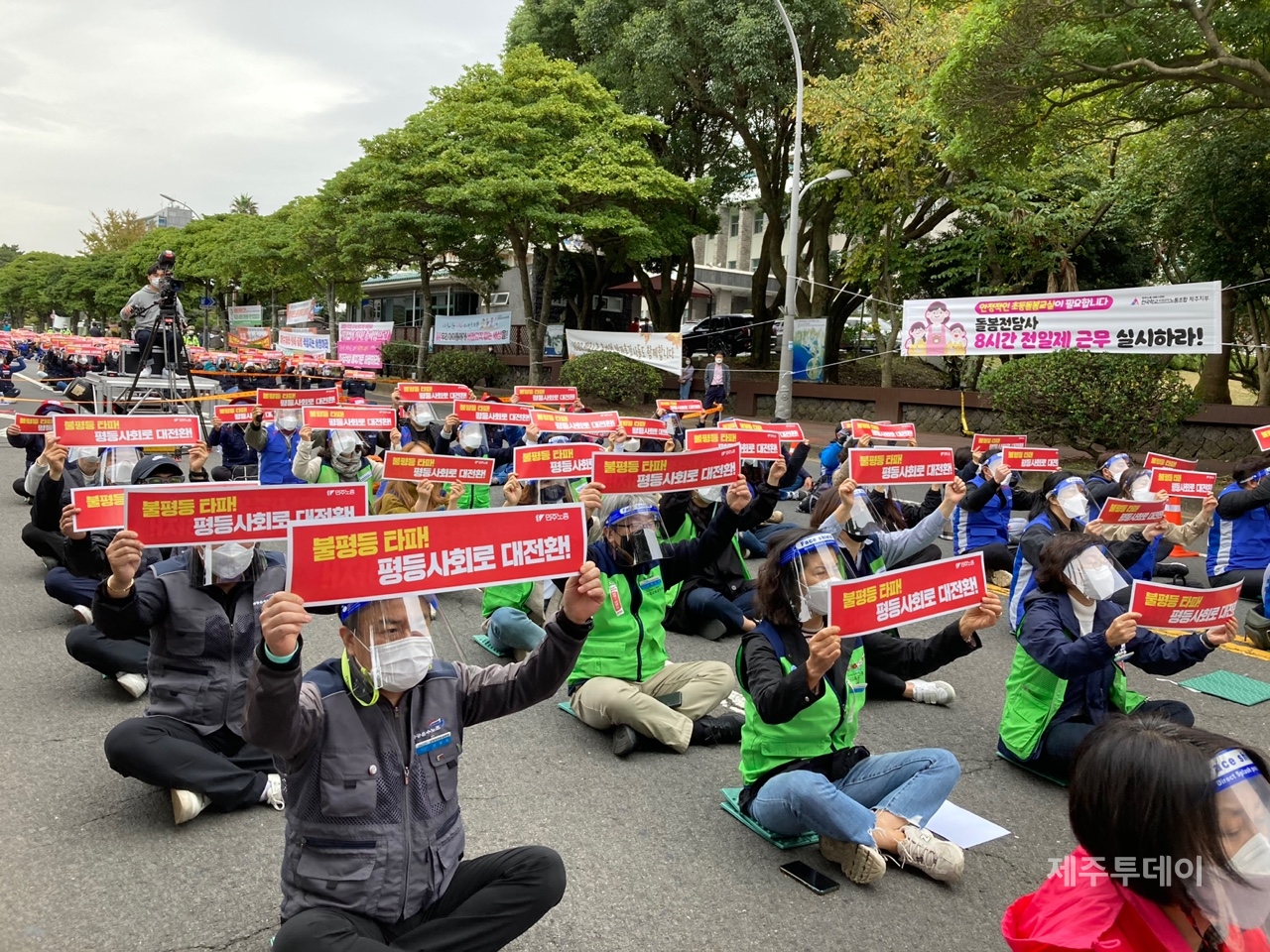 그러면서 "제주 관광노동자가 웃어야 제주도 관광산업의 미래가 열린다"고 했다.