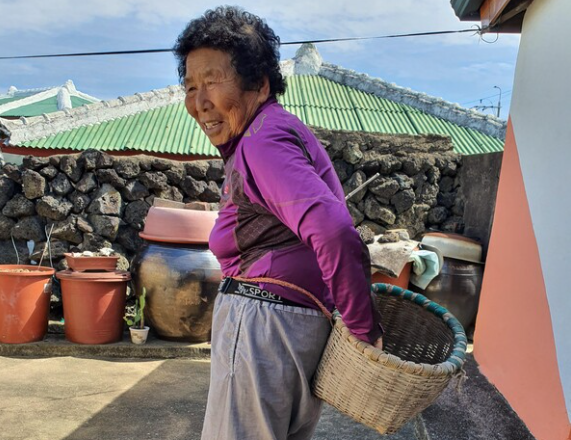 2. 상군 해녀에게 잘 보이려면 불턱에서 불을 지필 지들커(땔감)가 모자람이 없어야 한다. 애기 좀수 순이는 발로 꾹꾹 밟아가며 ‘질구덕’이 터지도록 지들커를 담았다. 삐죽삐죽 삐져나온 지들커 위에 아버지가 만들어주신 ‘망사리’와 테왁을 올려놓으니 족두리를 쓴 것 마냥 제법 모양이 난다.