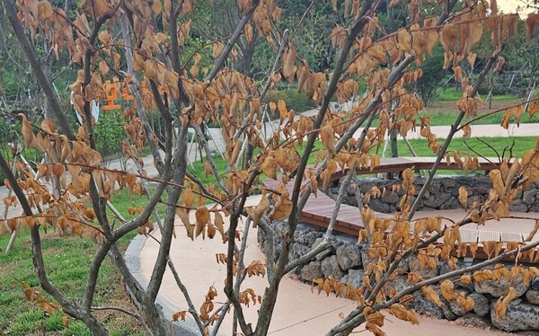 다만, 모다드렁숲에는 2023년 진행한 1단계 공사와 올해 2단게 공사를 통해서 식재한 나무들이 혼재돼 있다. 1단계와 2단계 공사를 수주한 업체가 다르다. 그런 만큼 공원에 식재된 식물들의 상태를 제대로 점검하고, 걱 업체와 제주도의 책임을 명확히 따질 필요가 있다.