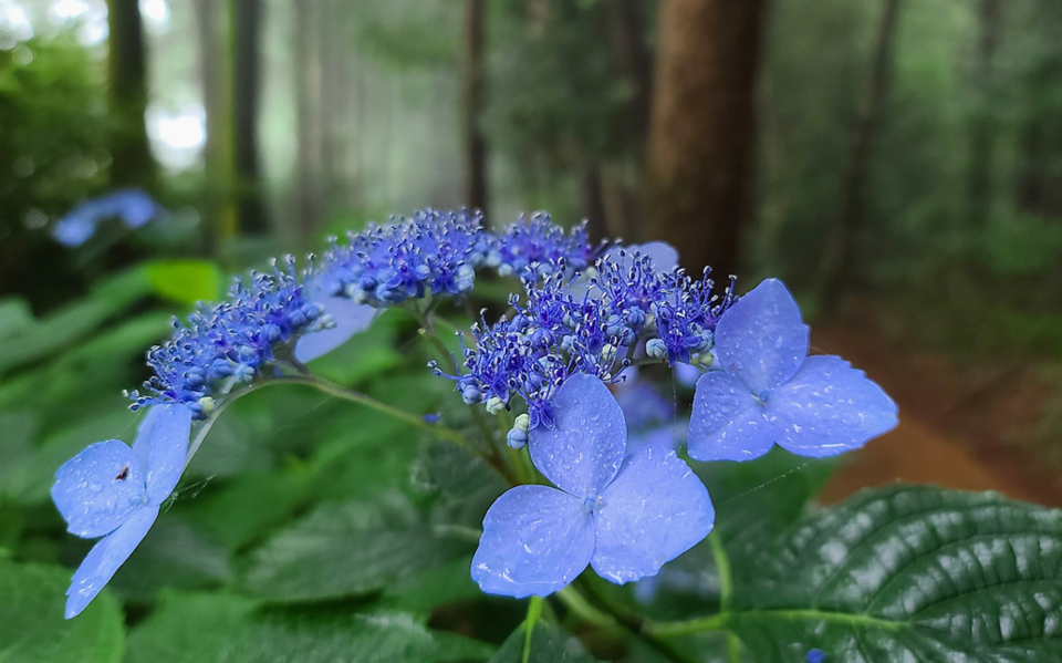 장마의 시작을 알리는 헛꽃이 아름다운 산수국이 숲과 오름을 아름답게 수놓으면