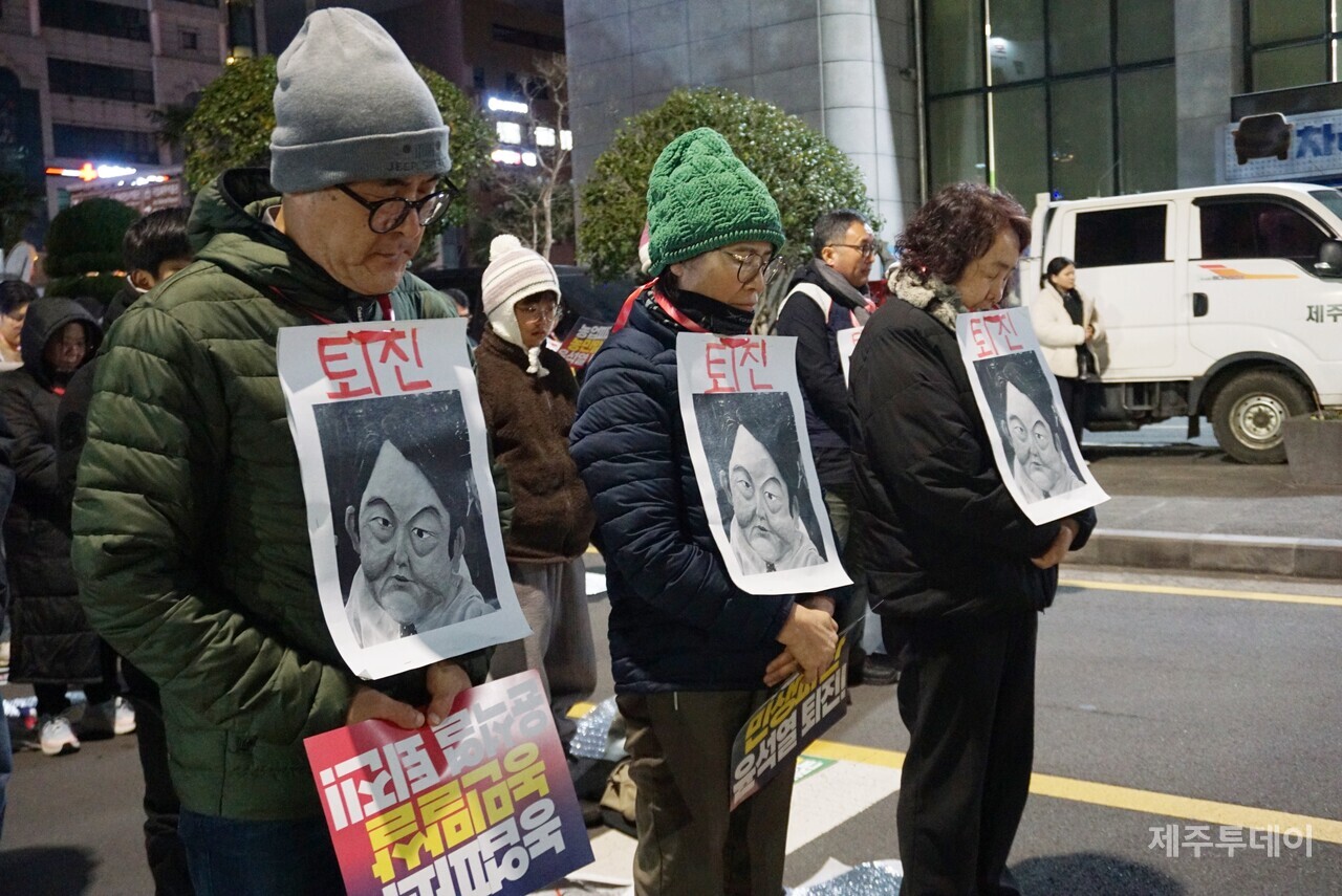 제주지역 19개 시민사회단체·정당으로 이뤄진 탈핵기후위기제주행동은 “헌법과 법률을 무시한 계엄령 발동은 몇 시간 만에 해소됐지만, 몇 시간 우리가 본 것은 민주주의가 무너질 수 있다는 위기 그 자체였다”며 “민주주의를 파괴한 윤석열을 대통령으로 인정하지 않는다”고 4일 밝혔다.