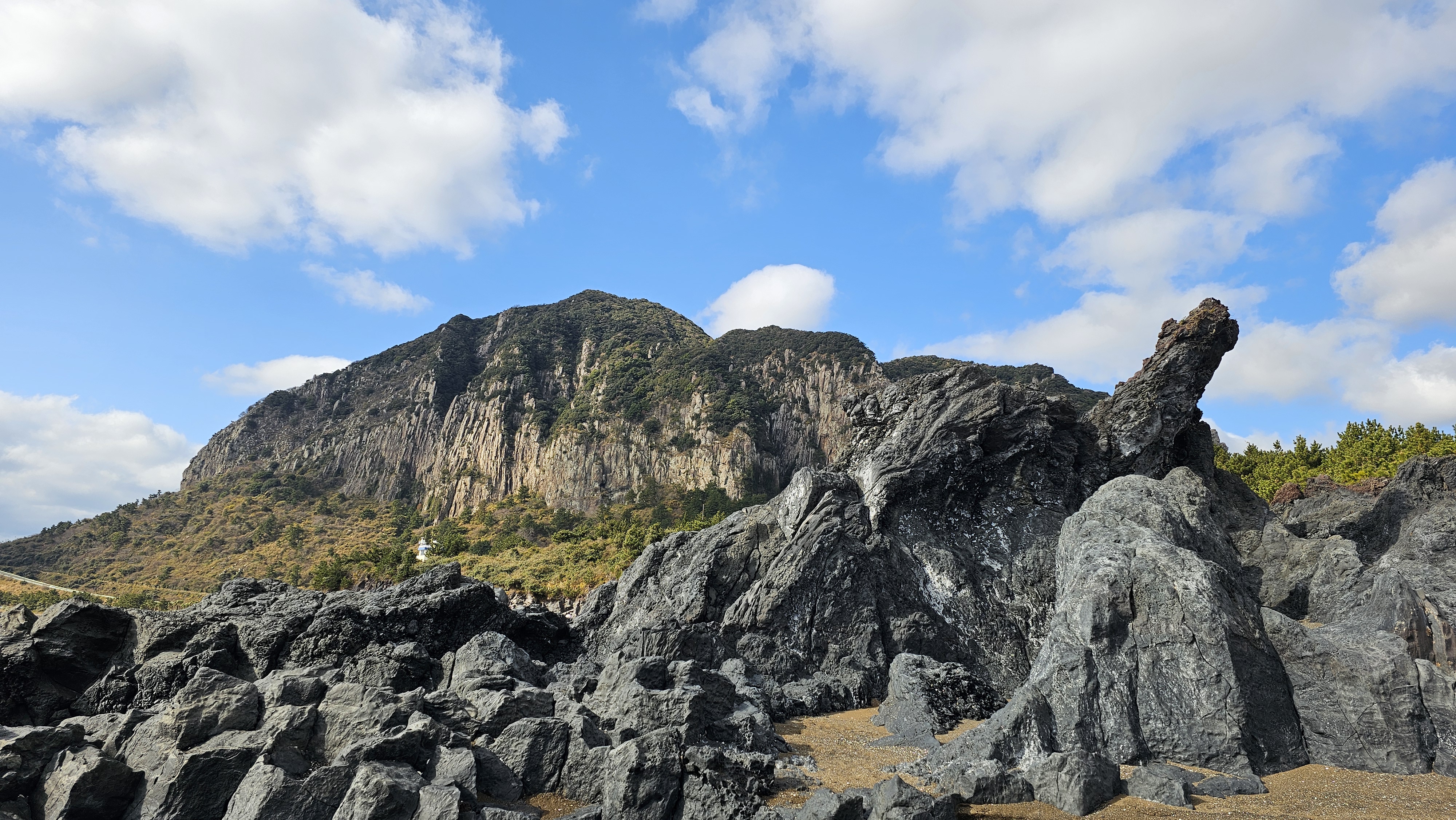 끈적끈적한 용암이 만든 용암돔으로 대표되는 '산방산'