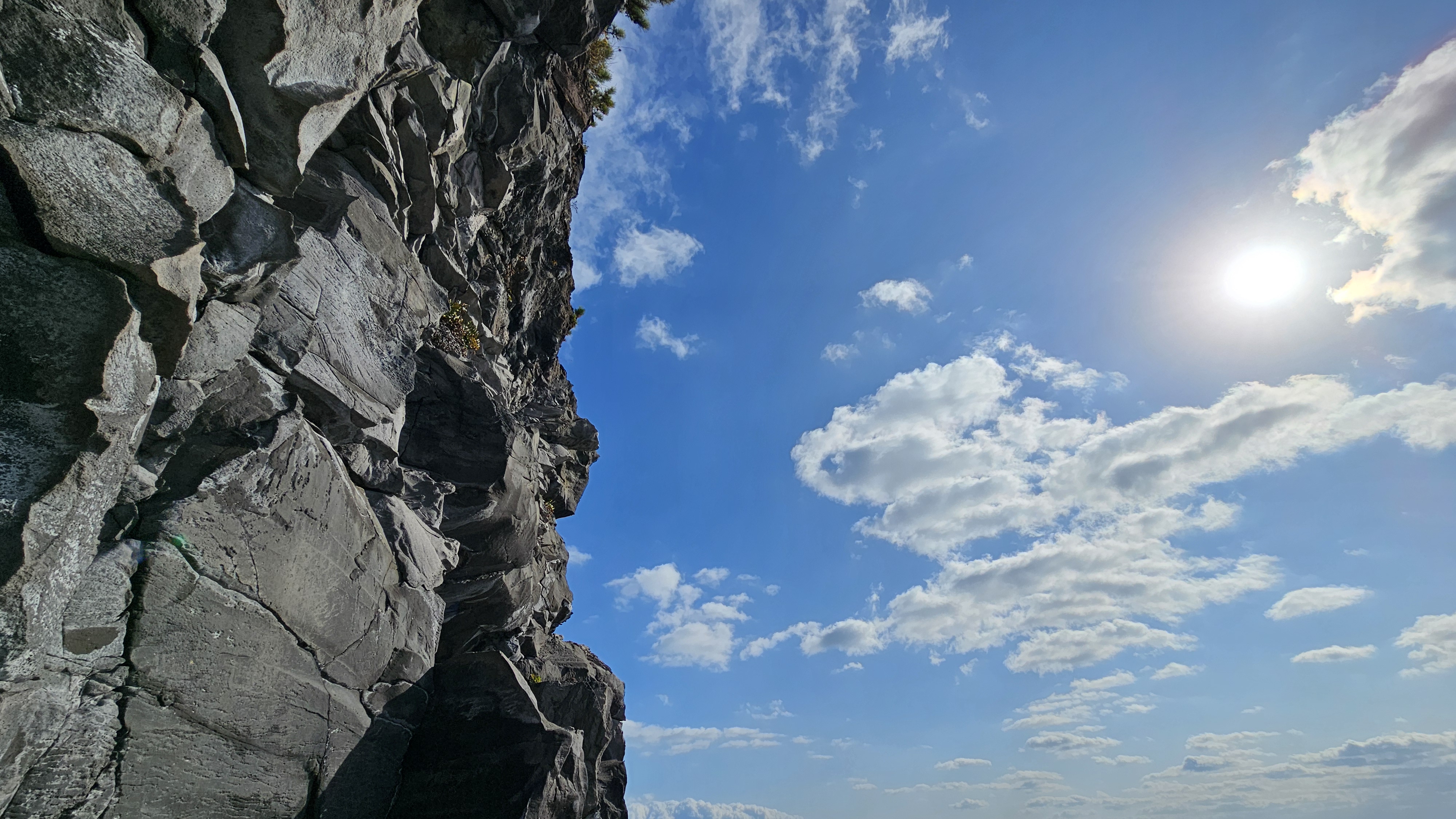 바구니를 엎어놓은 듯한 거대한 용암돔의 표면은 대규모 주상절리가 발달해 있고,