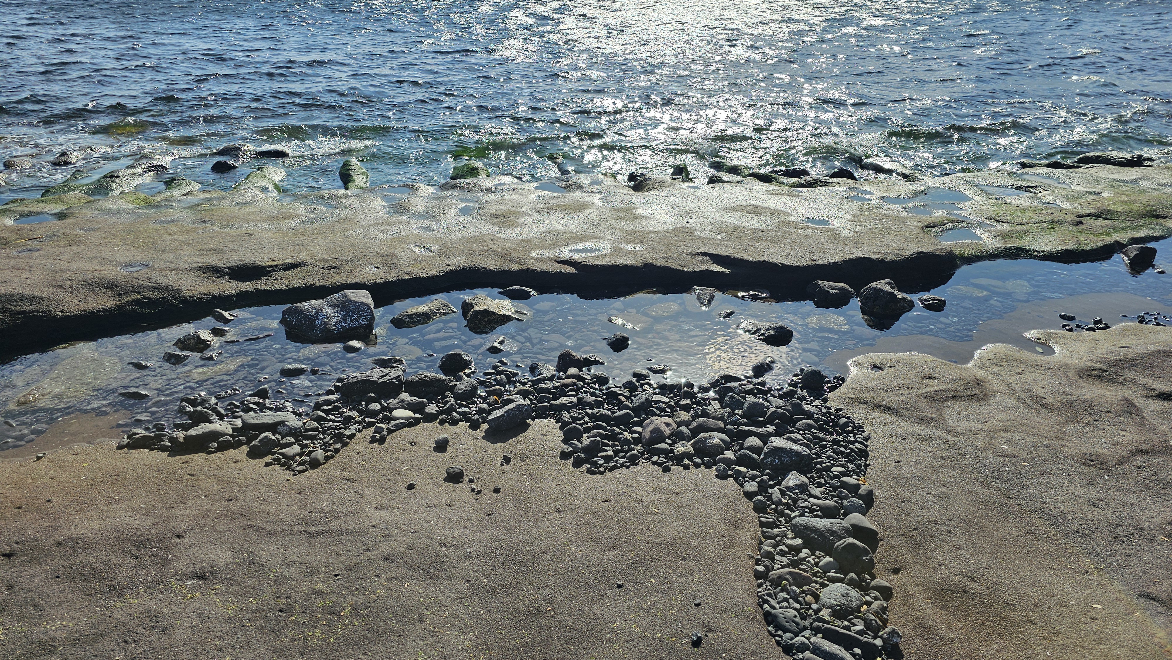 모래해변이라기보다는 통째로 화산 암반으로 되어있는 곳