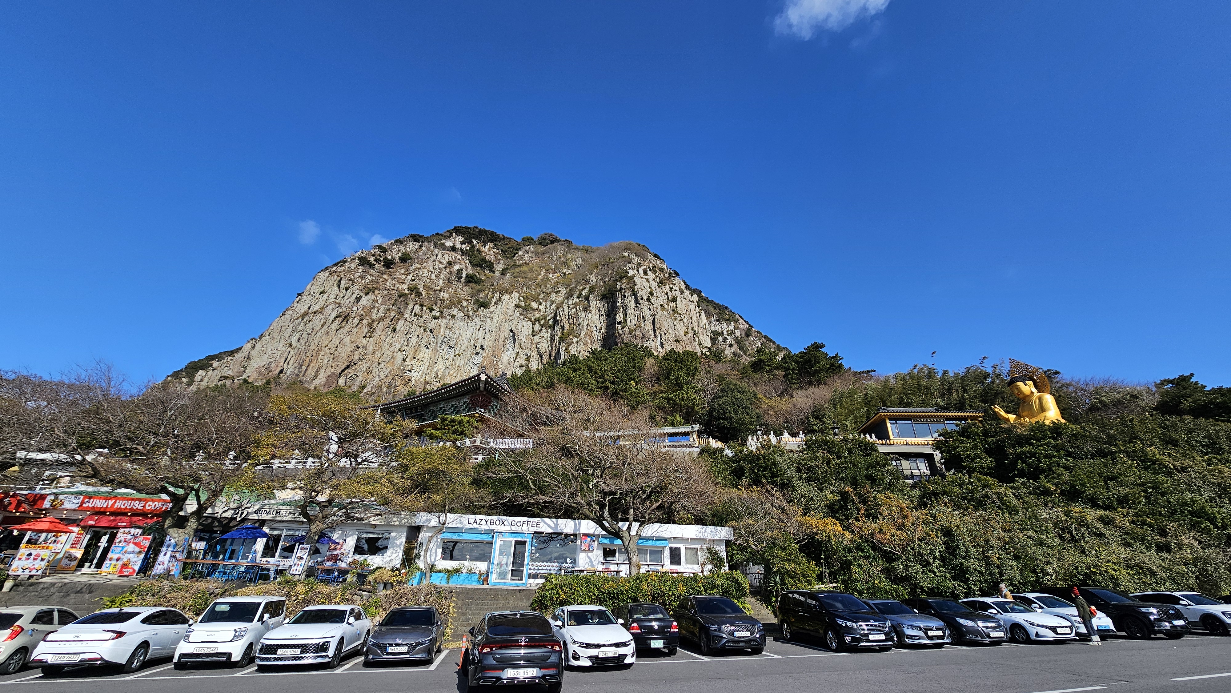 아침바람이 매섭게 불어오는 산방산 공영주차장