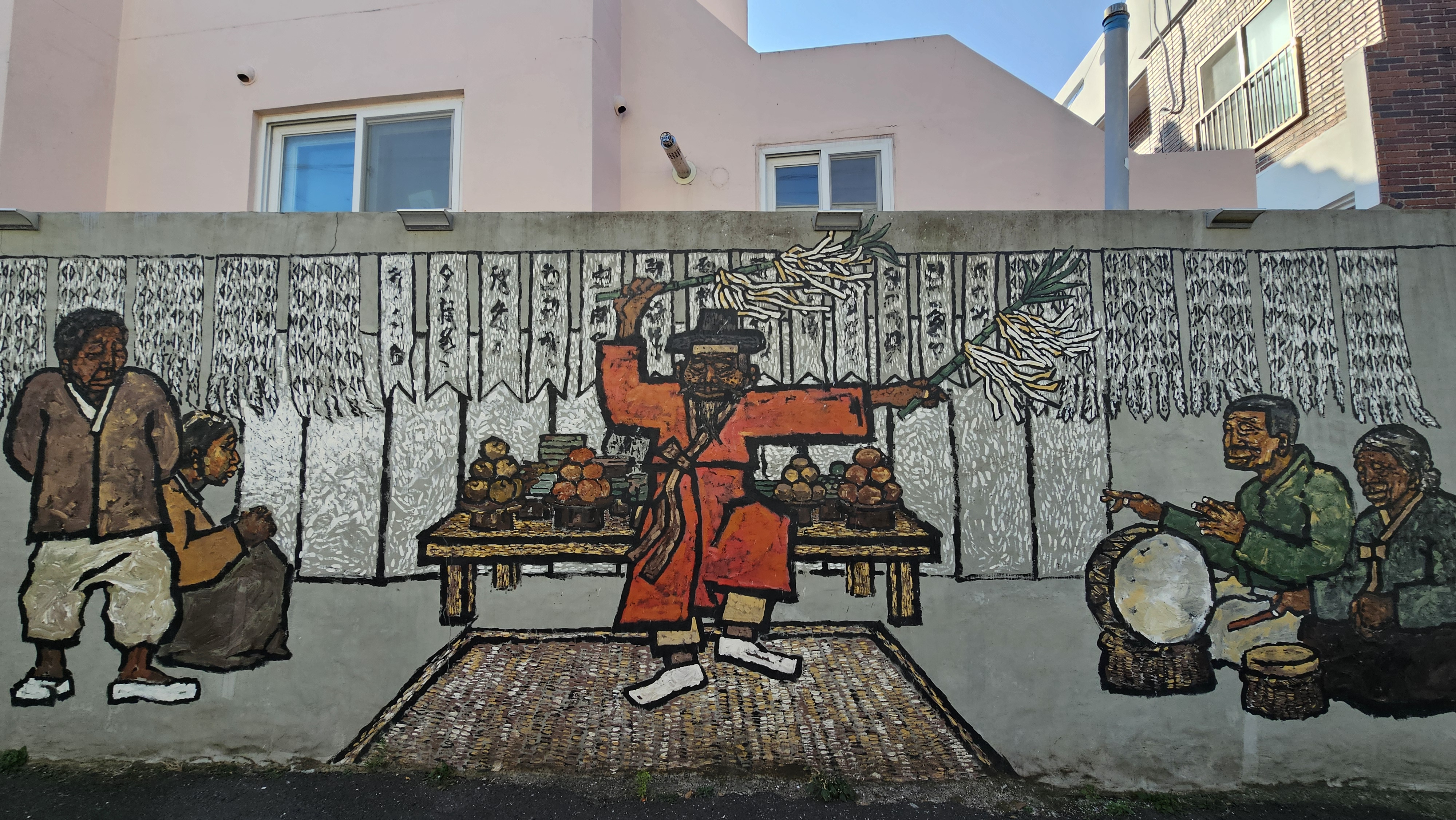벽면에 그려진 벽화는 세월의 흔적을 덮어버렸다.