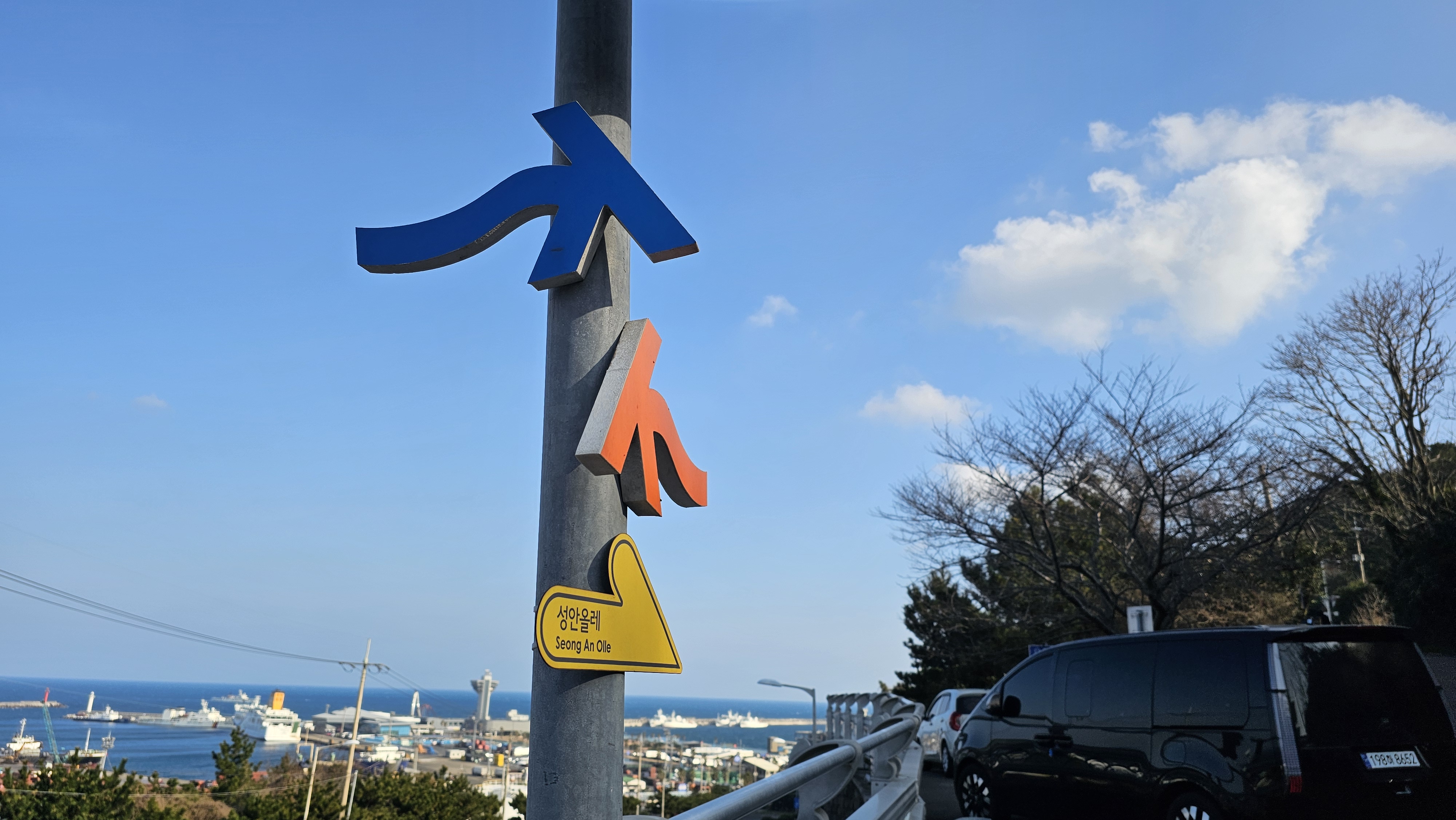 성안올레는 중간 스탬프가 있는 산지등대로 향하게 한다.
