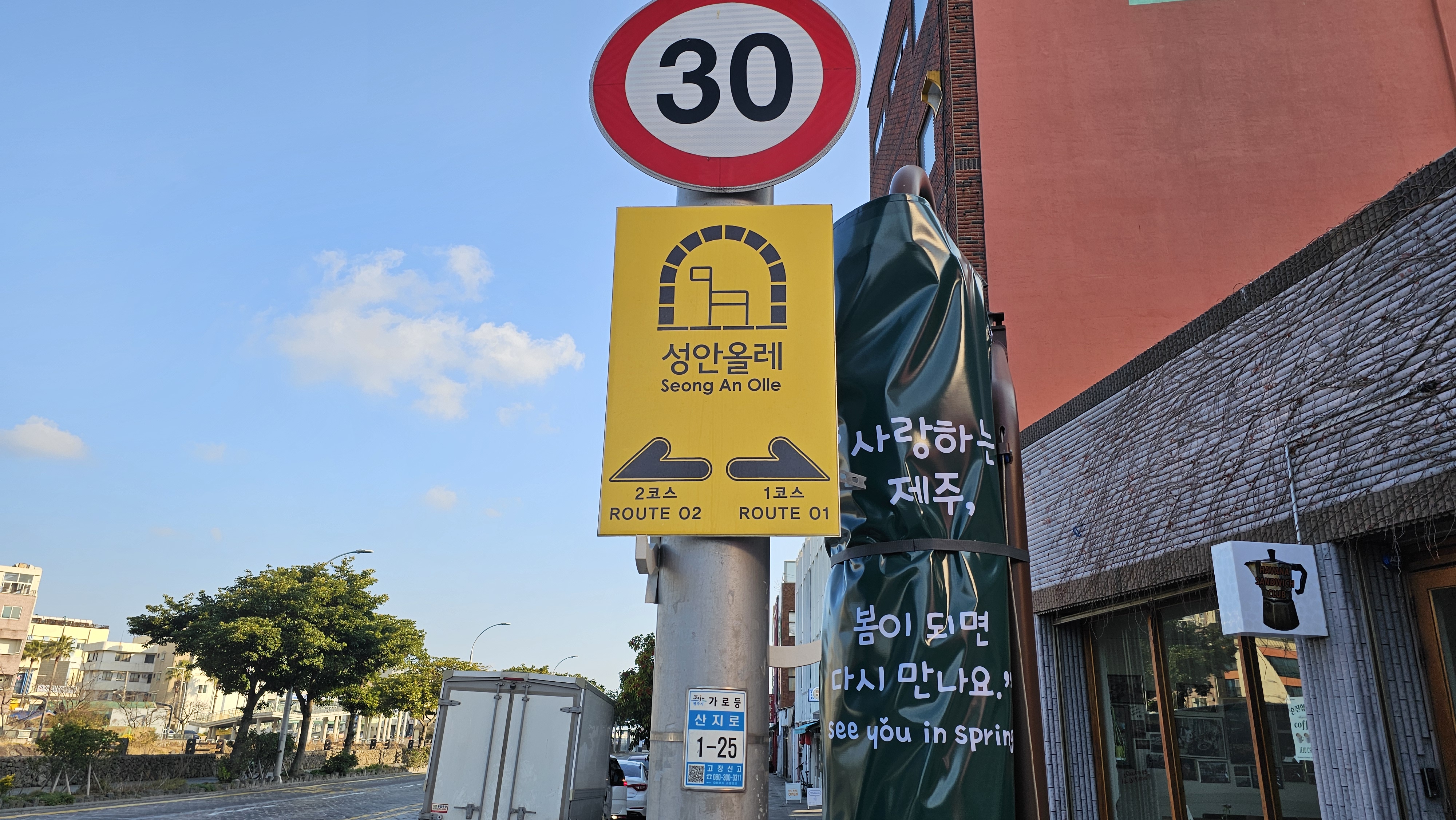 성안올레 표지를 따라 놀멍 쉬멍 보멍 여유롭게 즐기며 걸어보자.