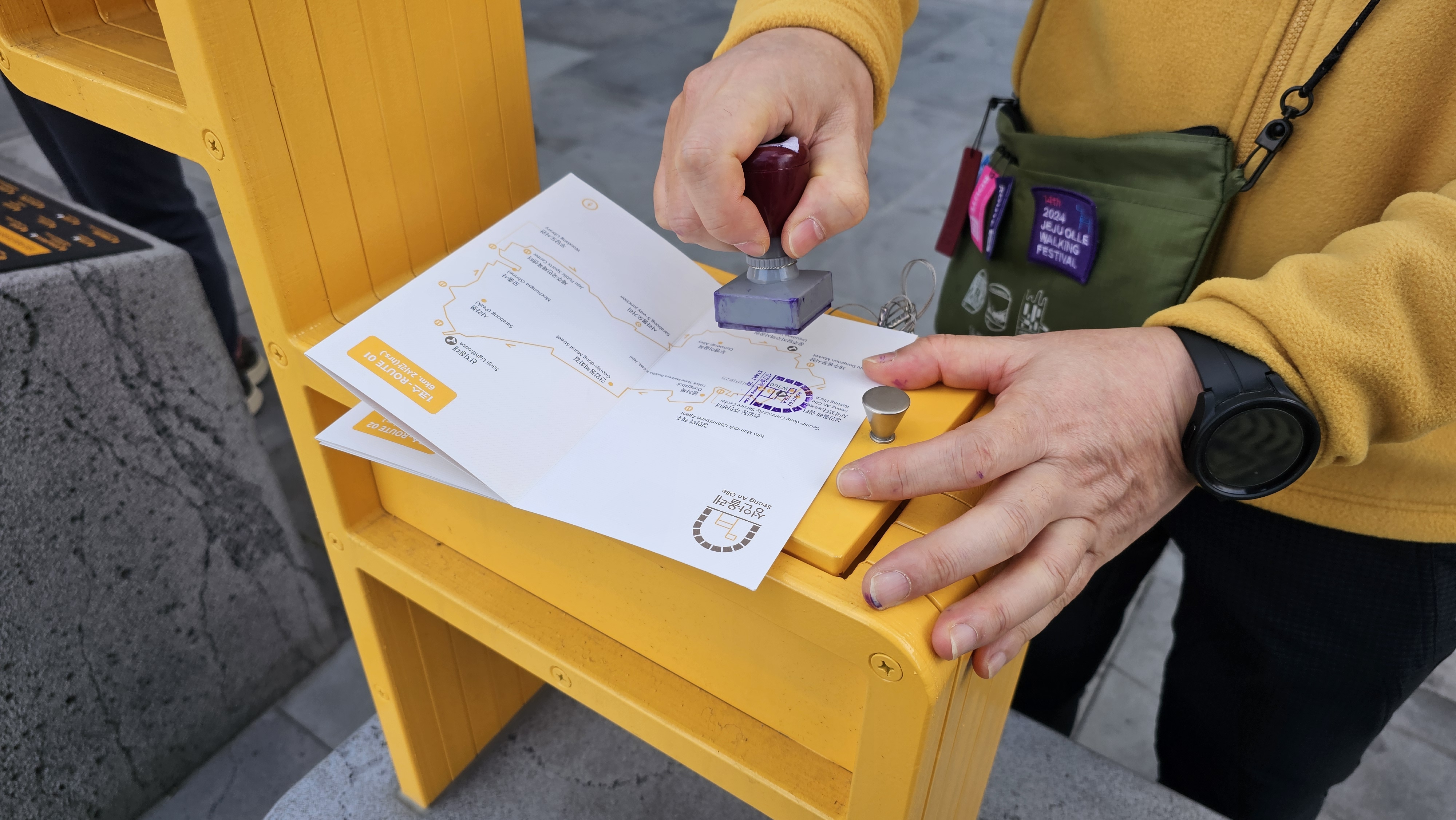 성안올레쉼터에서 안내책자와 스탬프북을 무료로 가져갈 수 있다.