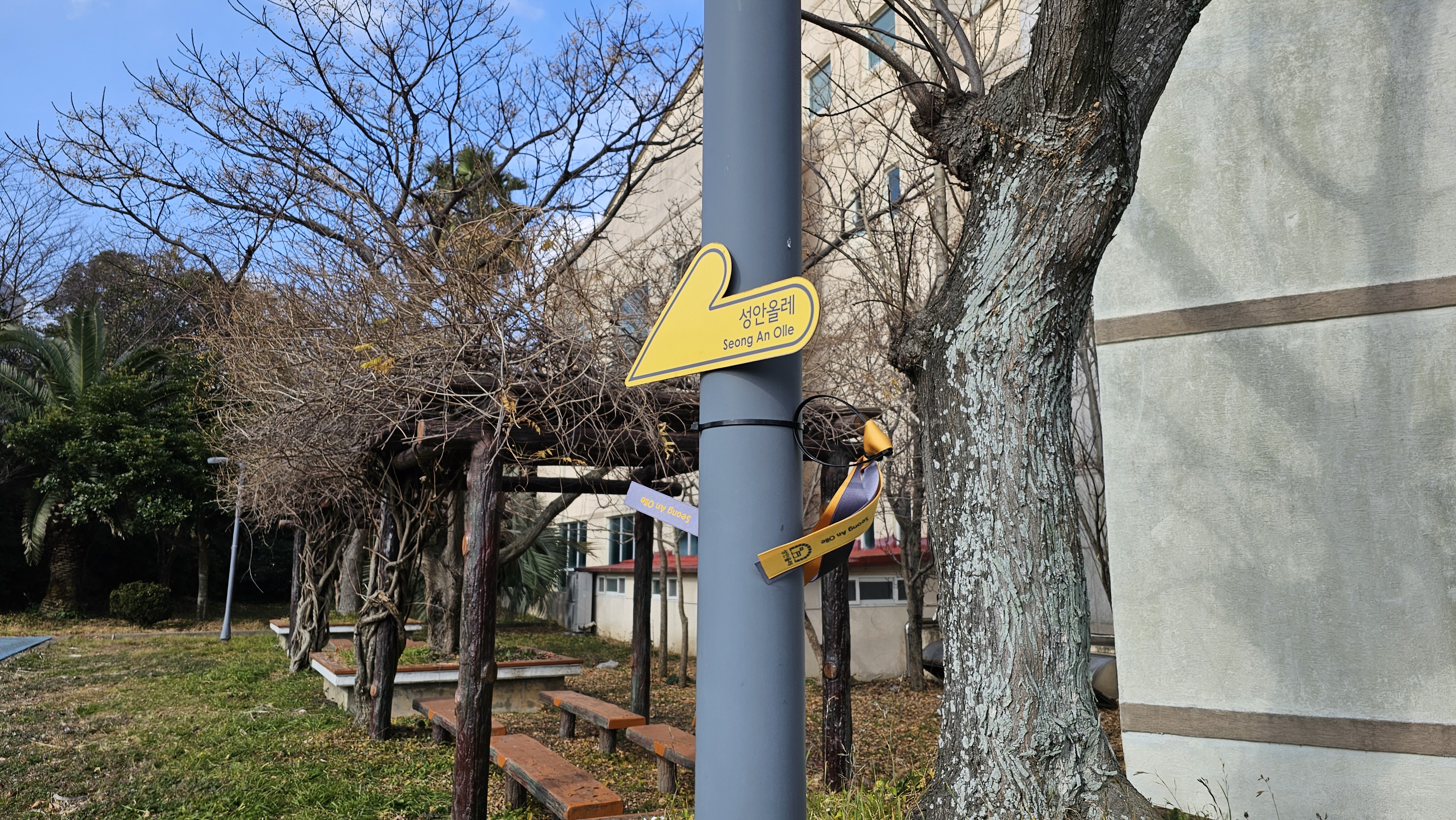 성안올레를 걷다 보면 건물 벽이나 담, 전신주, 나무 등에