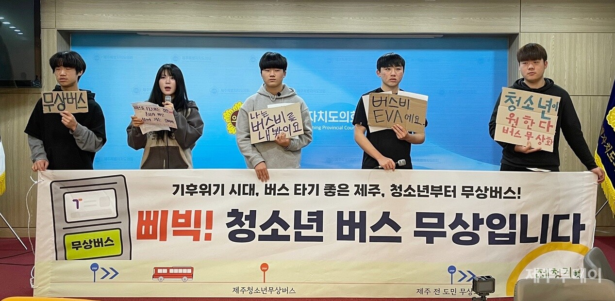 제청기행은 “제주버스 무상화는 기후위기 시대에 꼭 필요한 정책이다. 현재 제주에서 탄소 배출의 절반 이상이 수송에서 발생하고, 자가용 비율이 높은 제주에서 대중교통 이용을 장려하면 탄소배출을 줄일 수 있다”며 “청소년들이 버스 요금을 걱정하지 않고 자유롭게 이동할 수 있는 방안이 필요하다”고 주장했다.