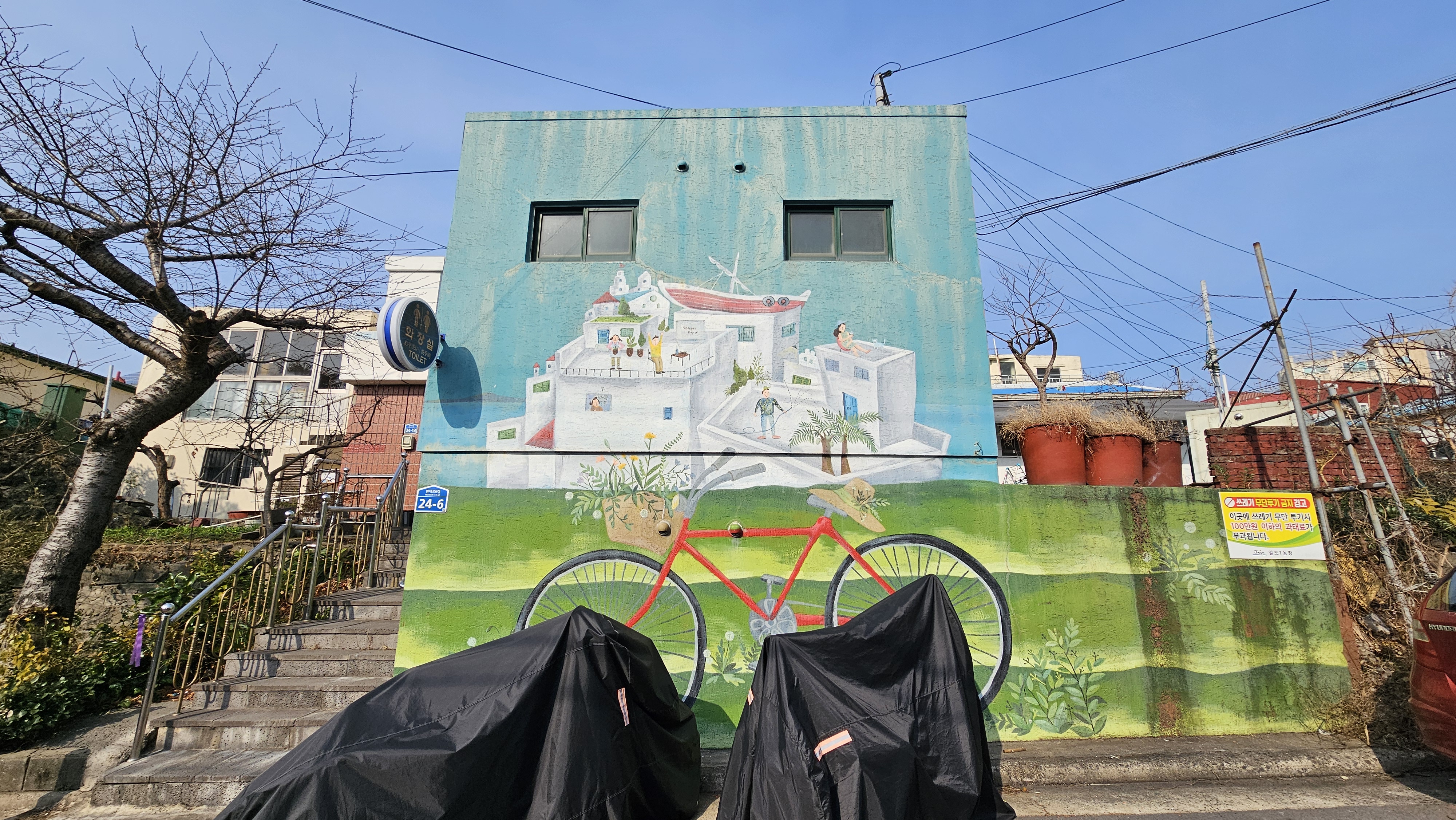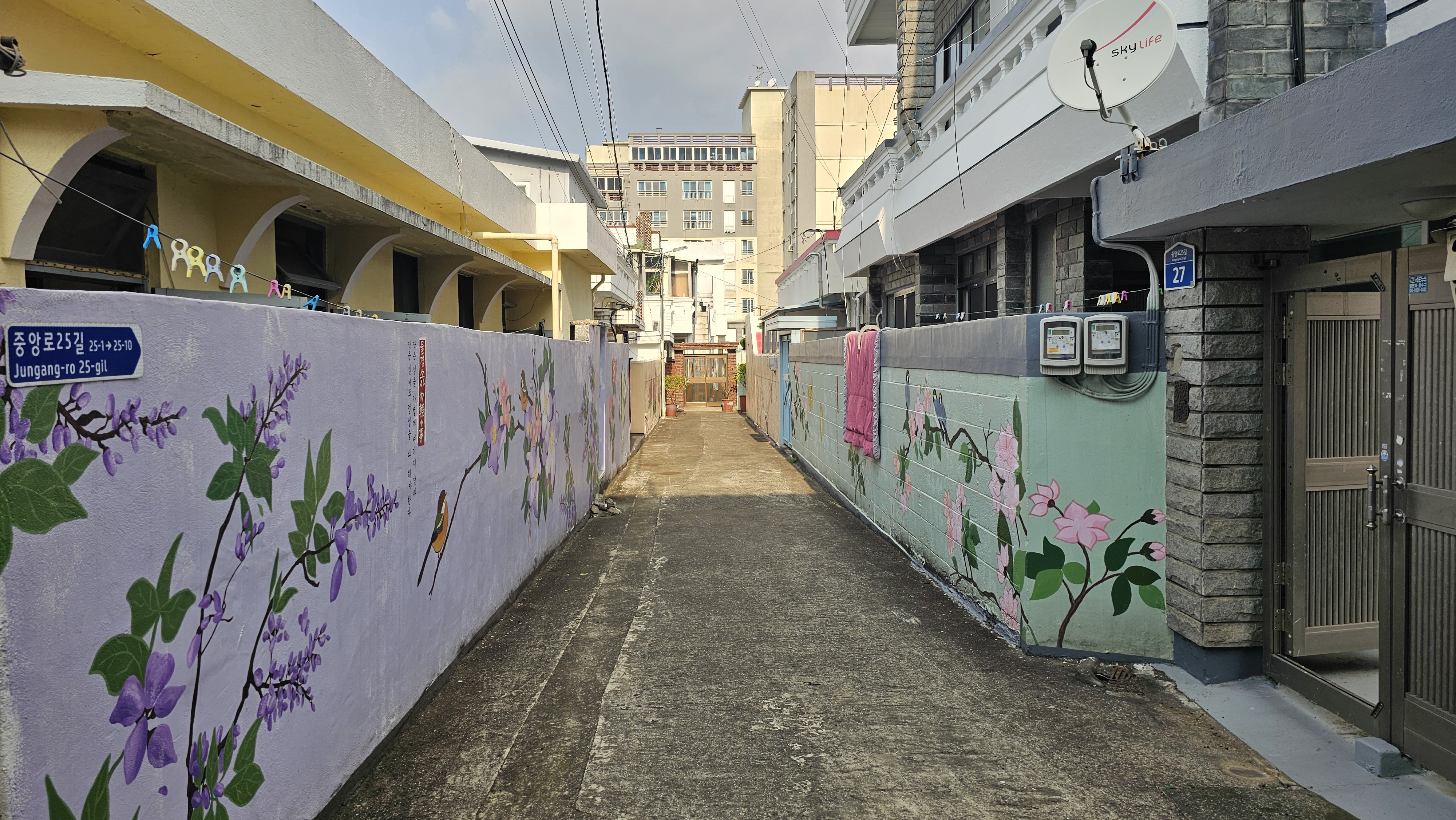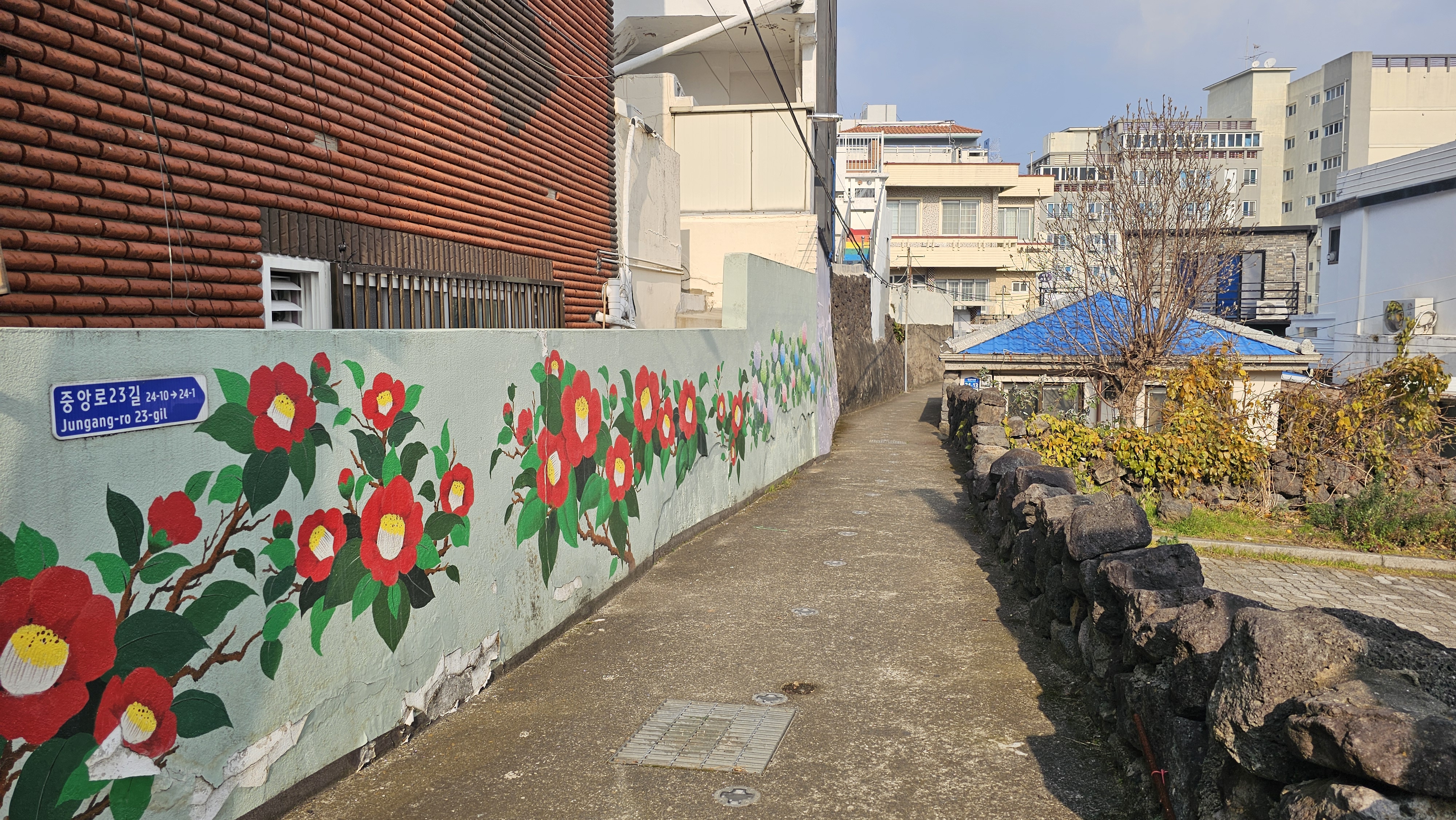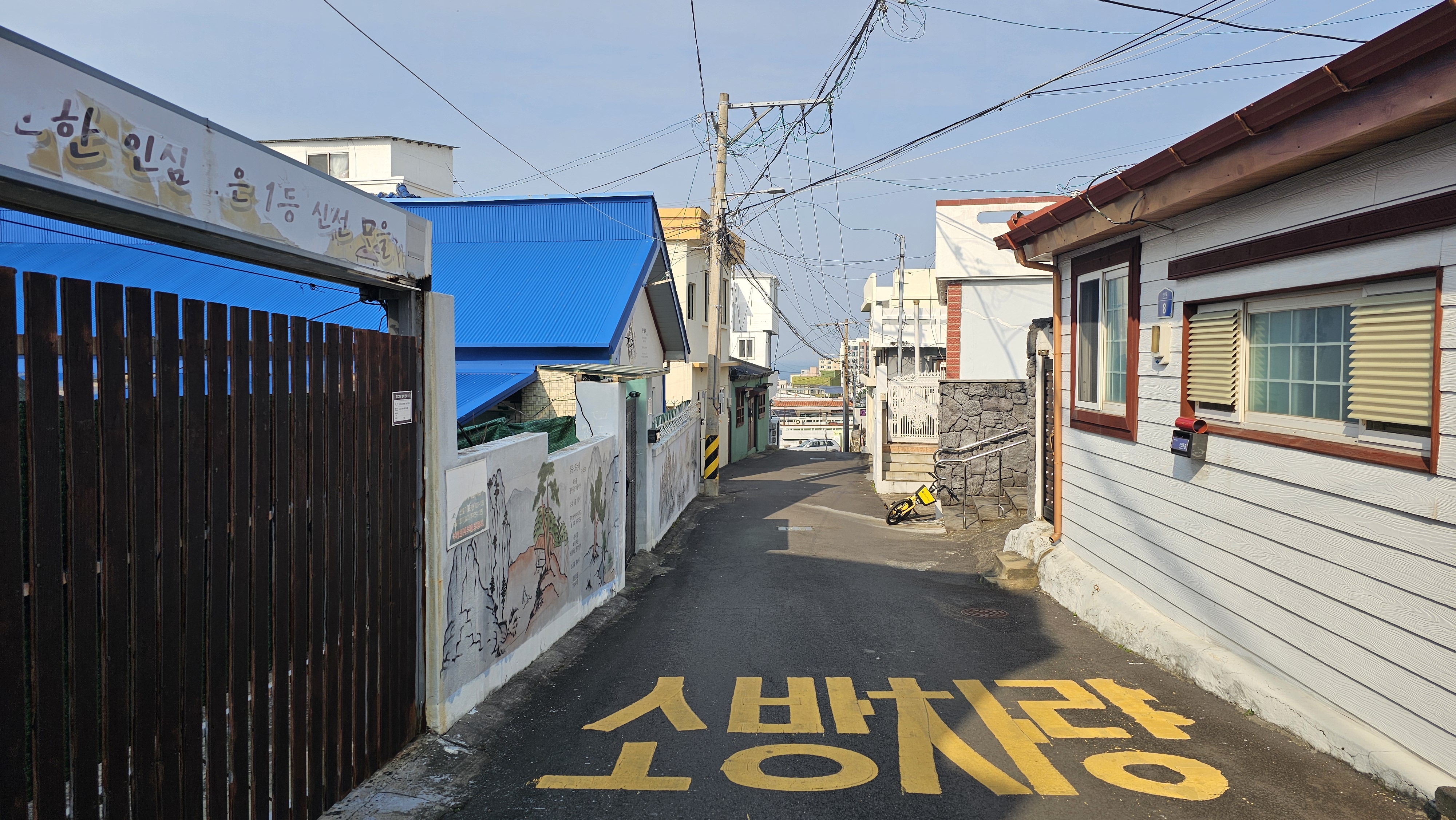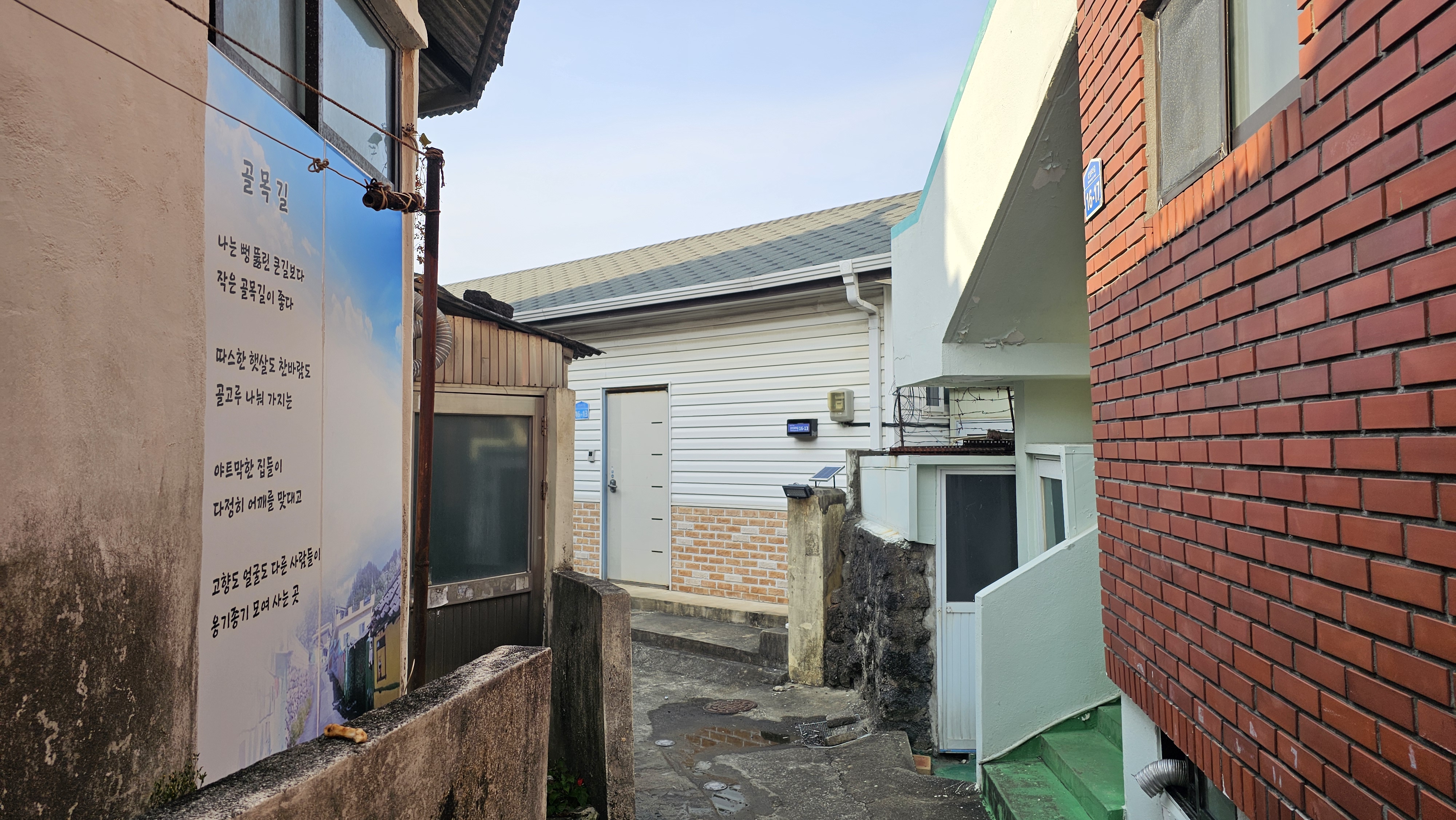 골목 입구 벽면에는