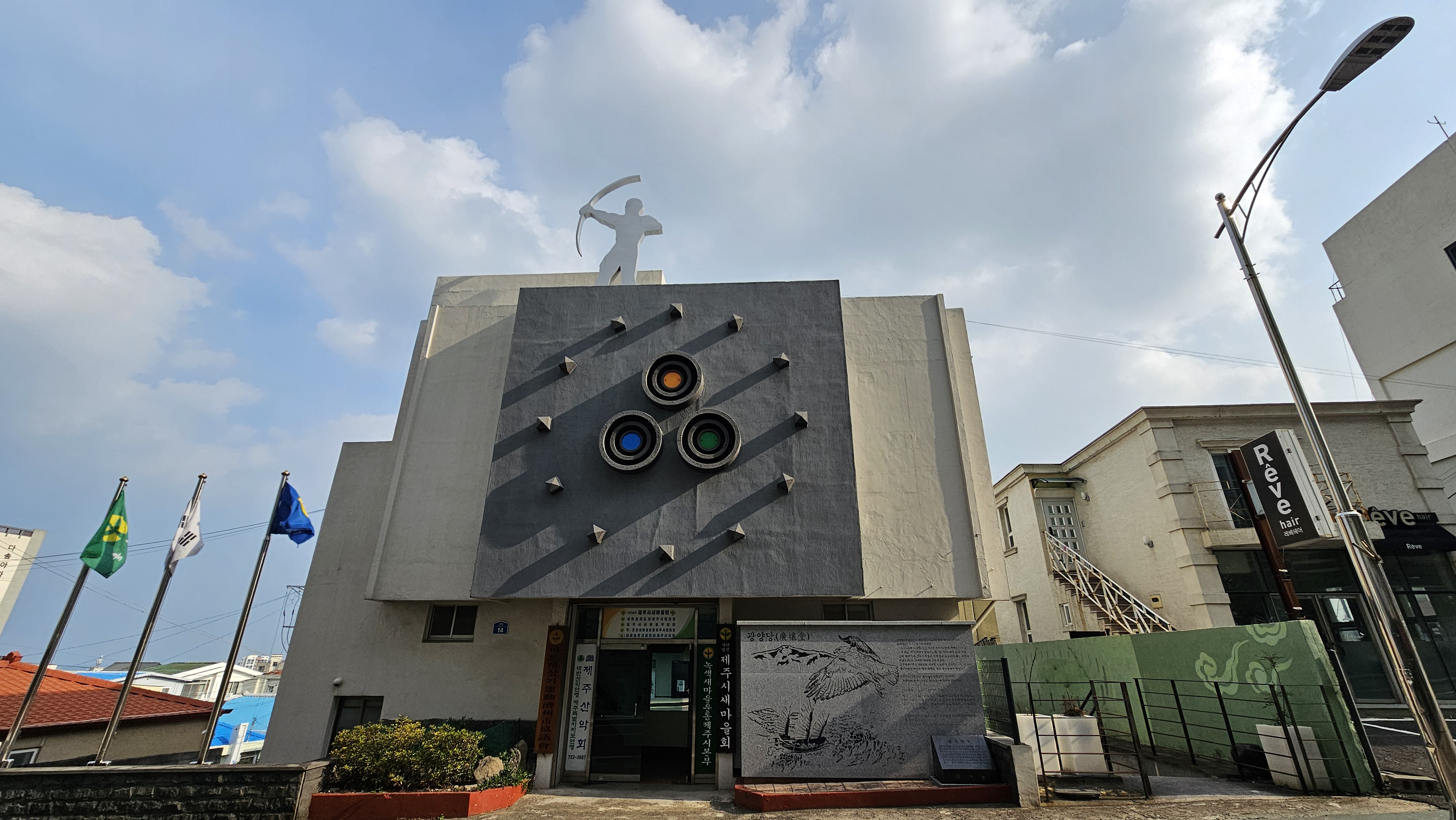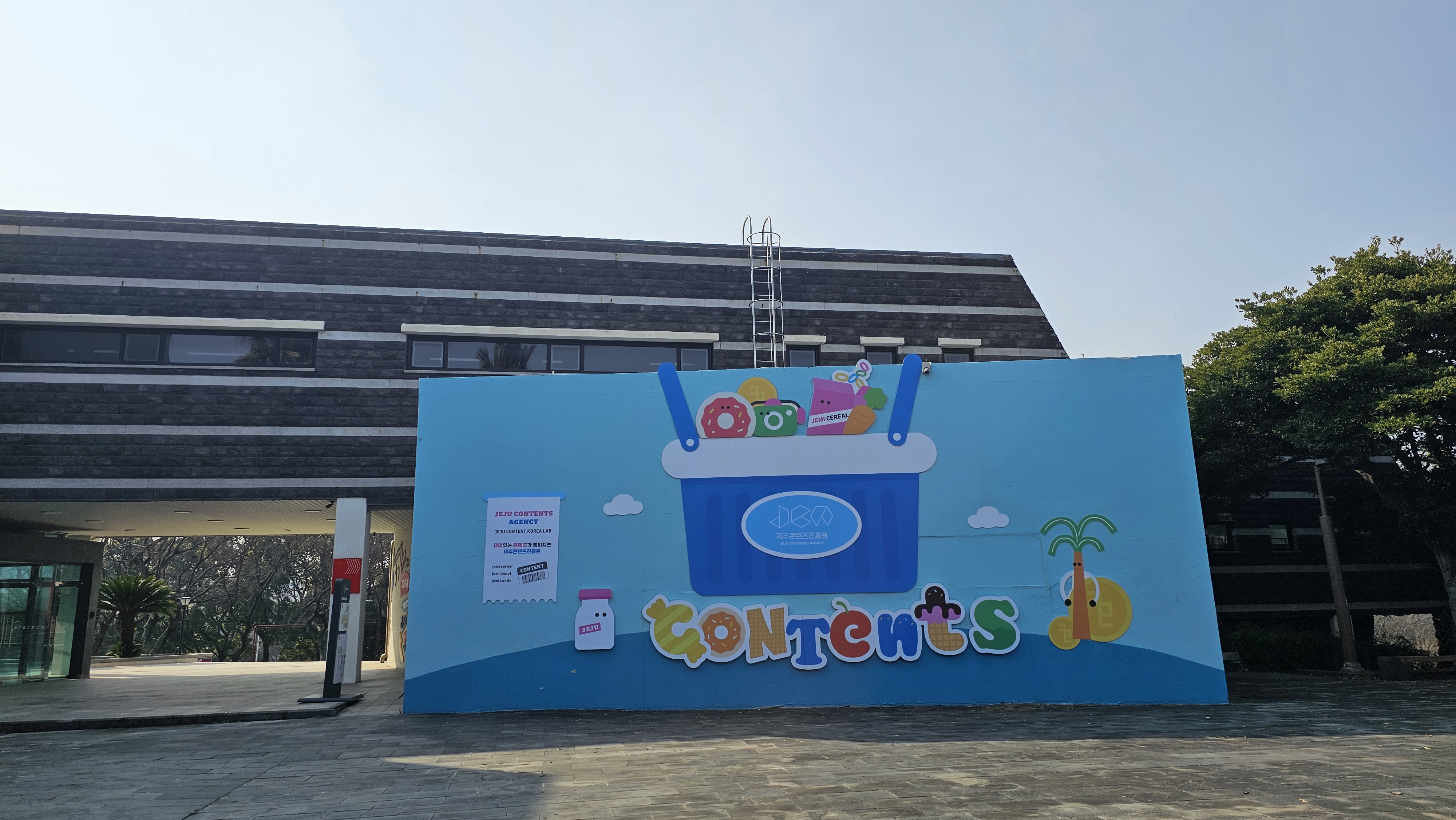 현대적이고 독특한 건물 제주콘텐츠진흥원으로 향한다.
