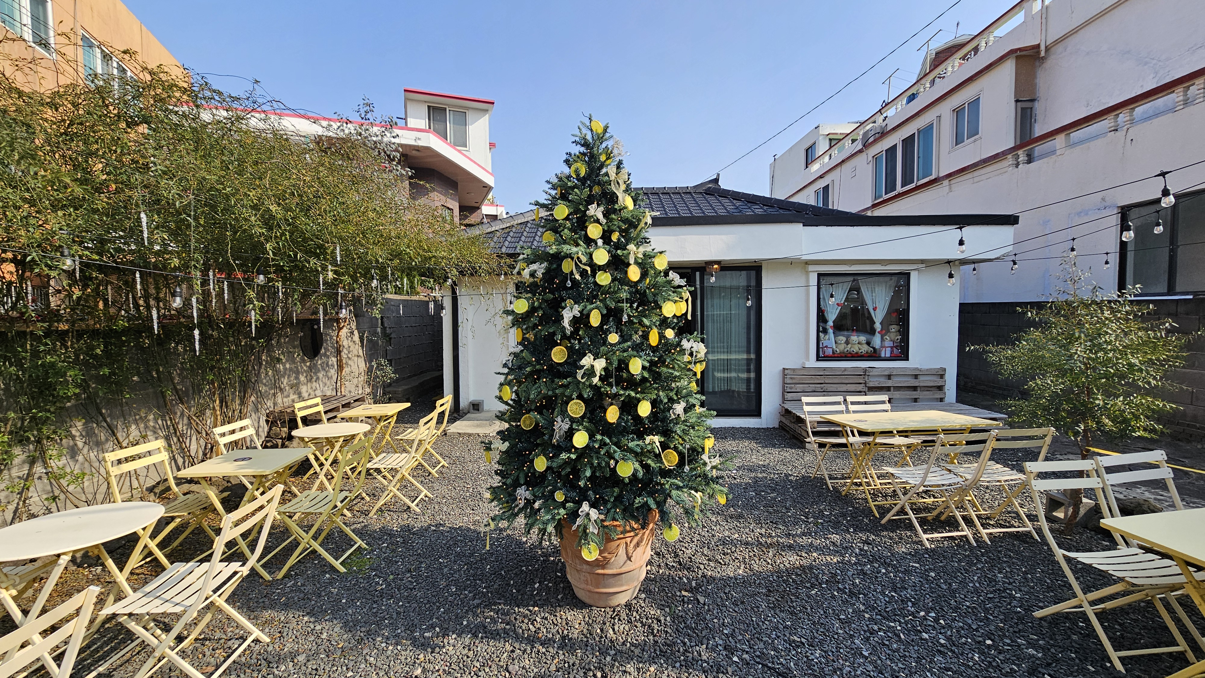 마당을 감귤 트리로 장식한 앙증맞은 모습이 눈에 들어온다.