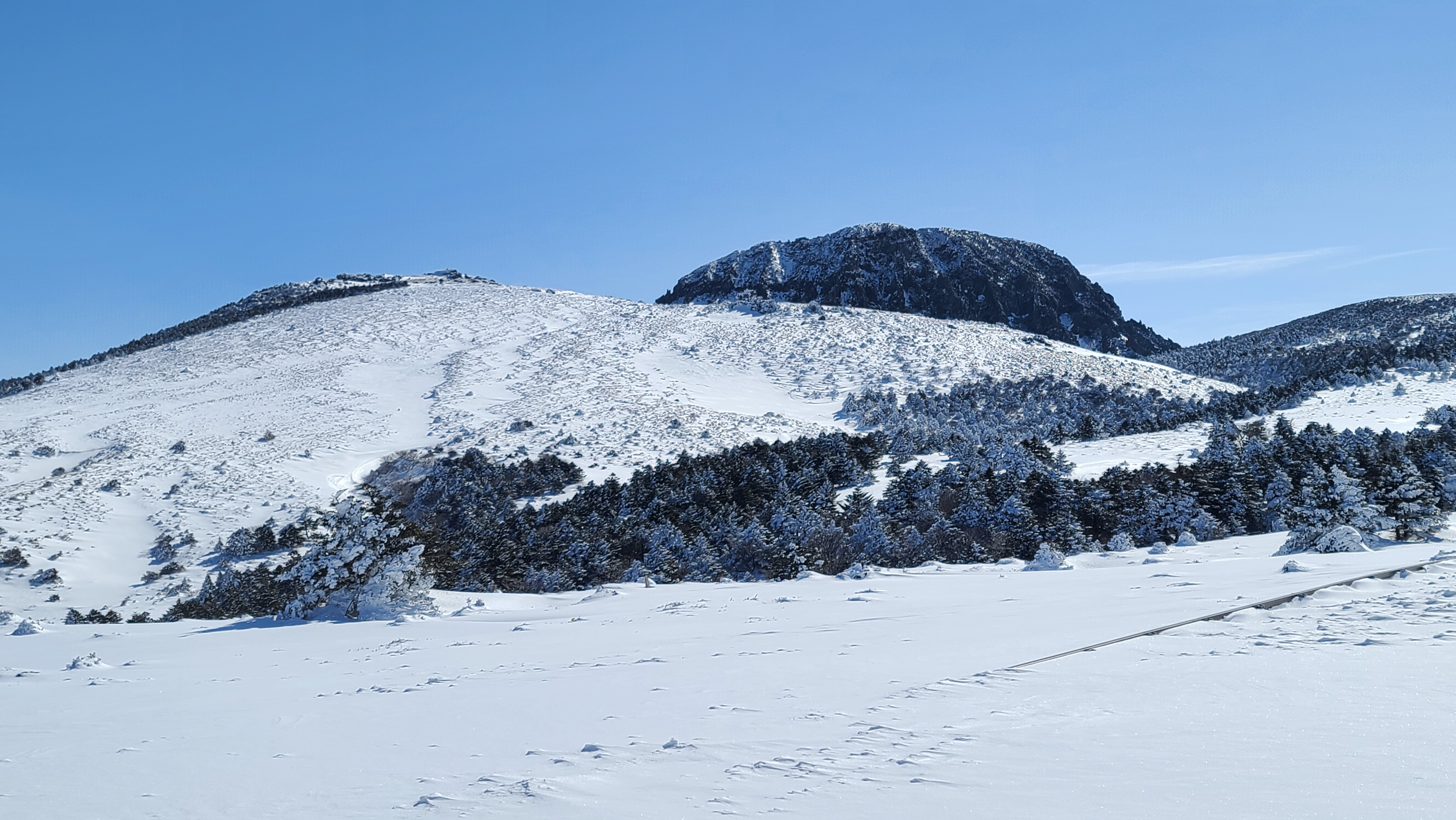 한라산의 정상은 아직도 눈이 쌓여 신비감을 더해준다.