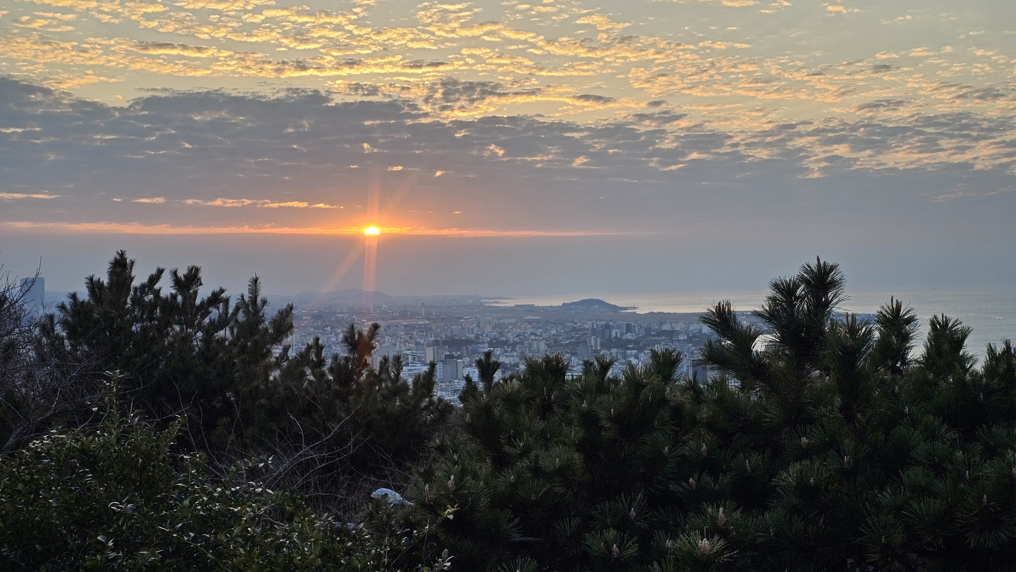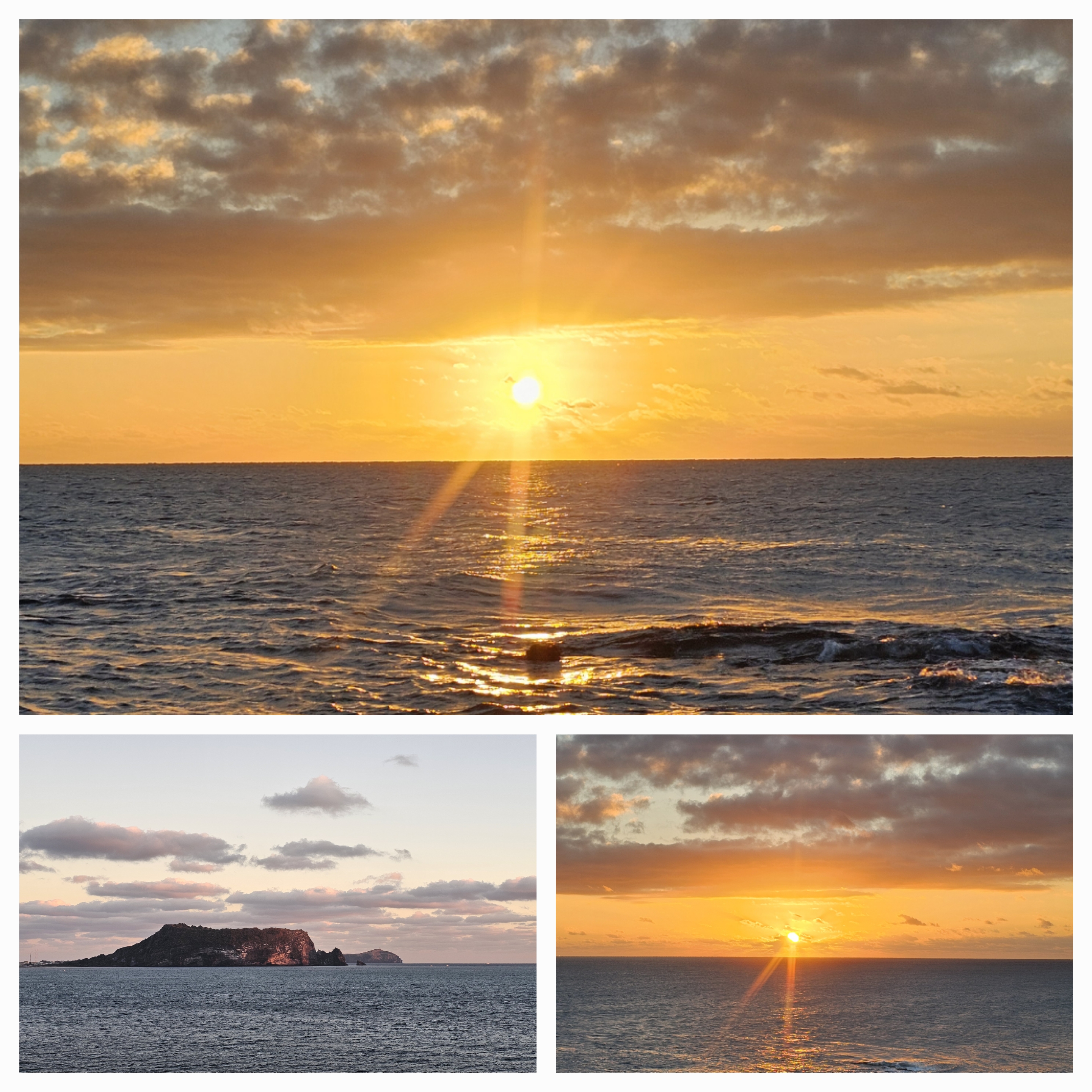 수평선 위로 붉은 해가 힘차게 솟아올라 성산 앞바다를 붉게 물들인다.