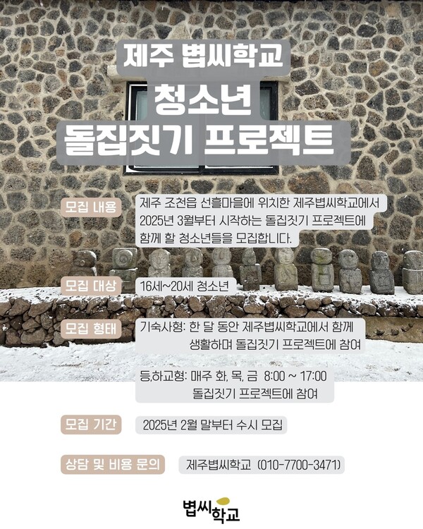 제주학사에서 돌집짓기는 말 그대로 돌집만 짓는 것이 아닌 그 과정을 통해 성장하는 것입니다. 앞으로 많은 고난과 역경이 닥치겠지만 그 과정을 하나하나 이겨내가며 성장하겠습니다. 이번년도 큰 목표, 큰 프로젝트를 하게 된 볍씨학교 제주학사에 많은 관심 부탁드립니다.