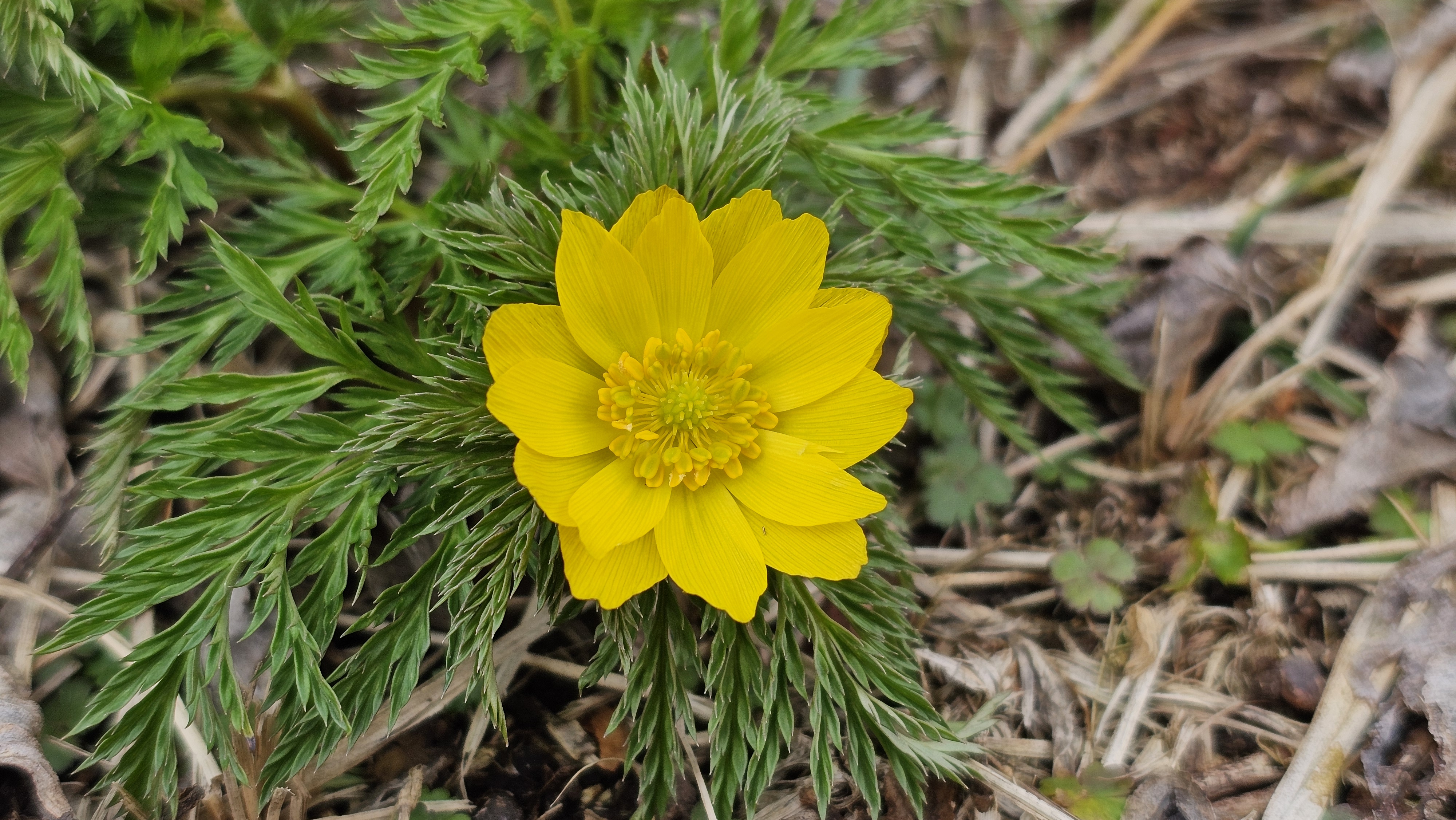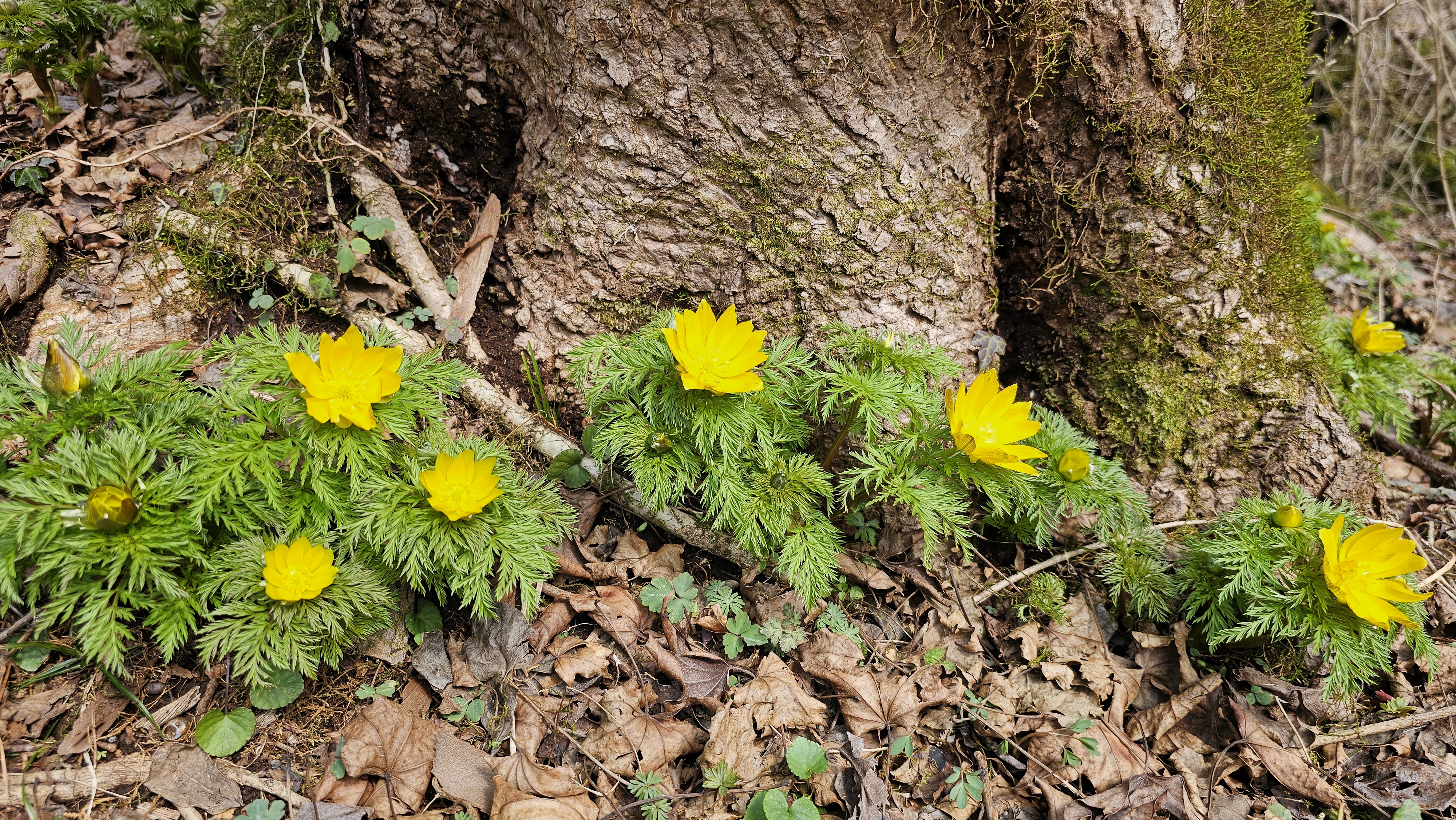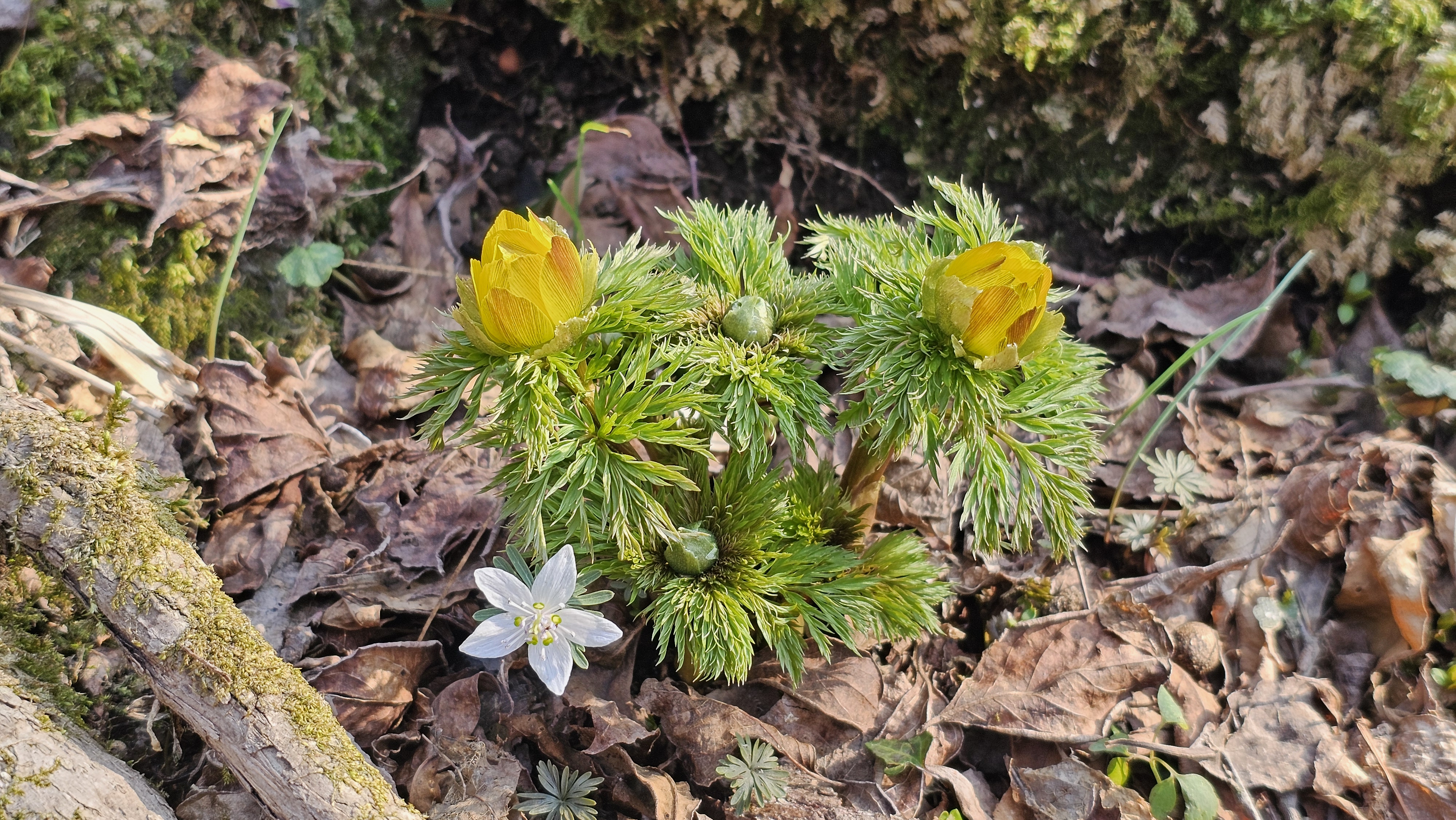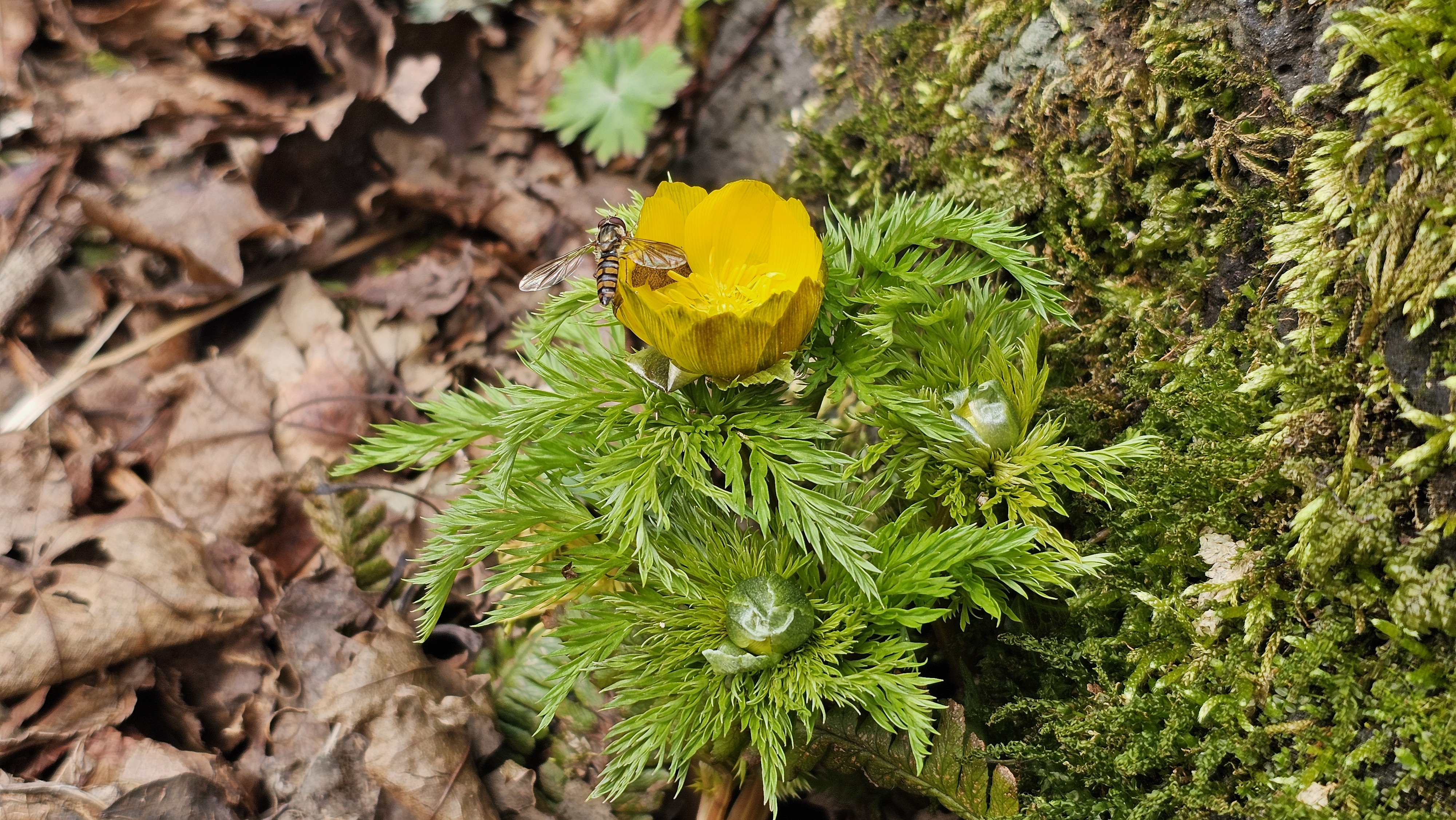 숲 속 나무들이 초록색을 감췄기에 세복수초의 샛노란 색감이 도드라진다.