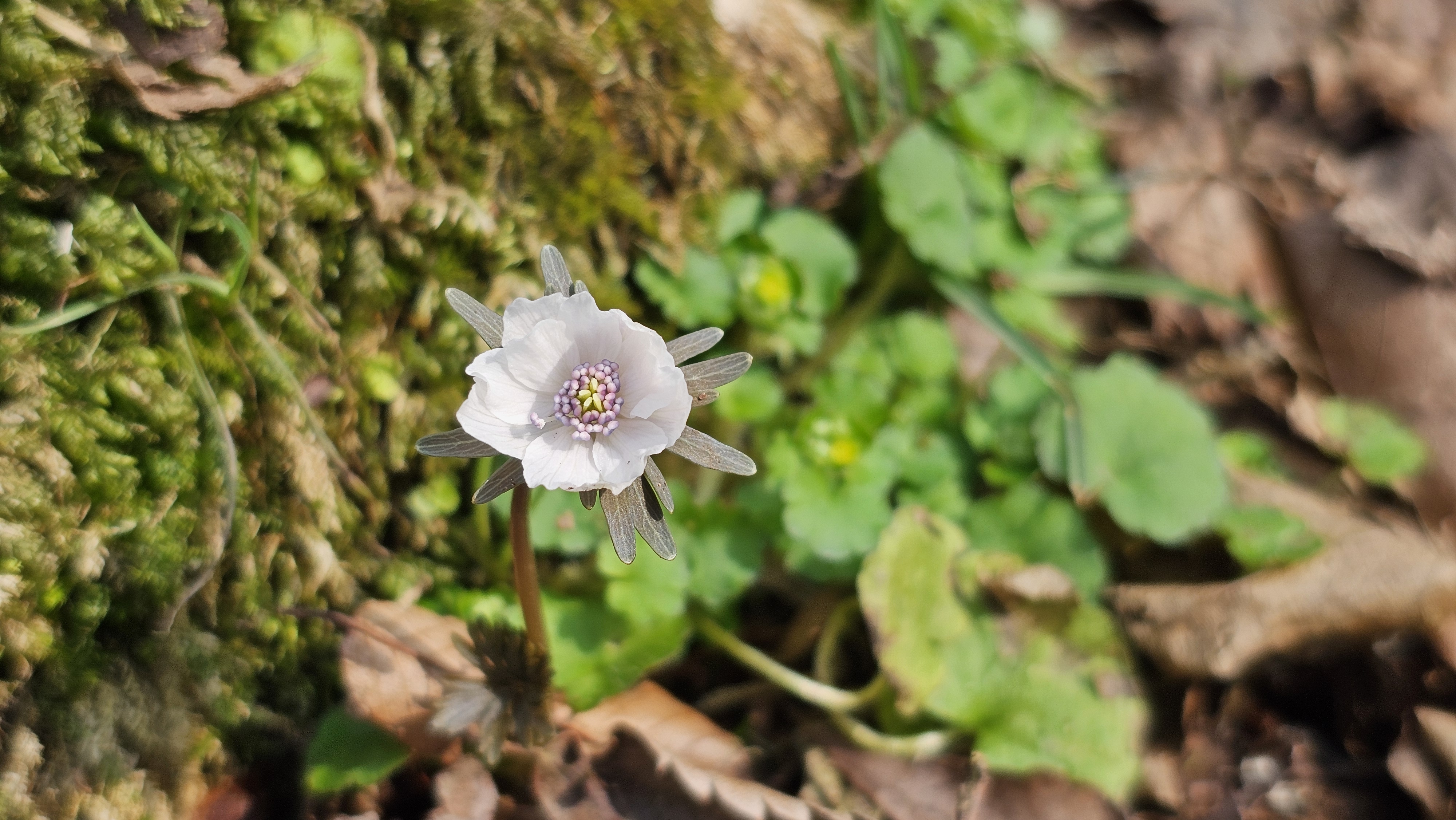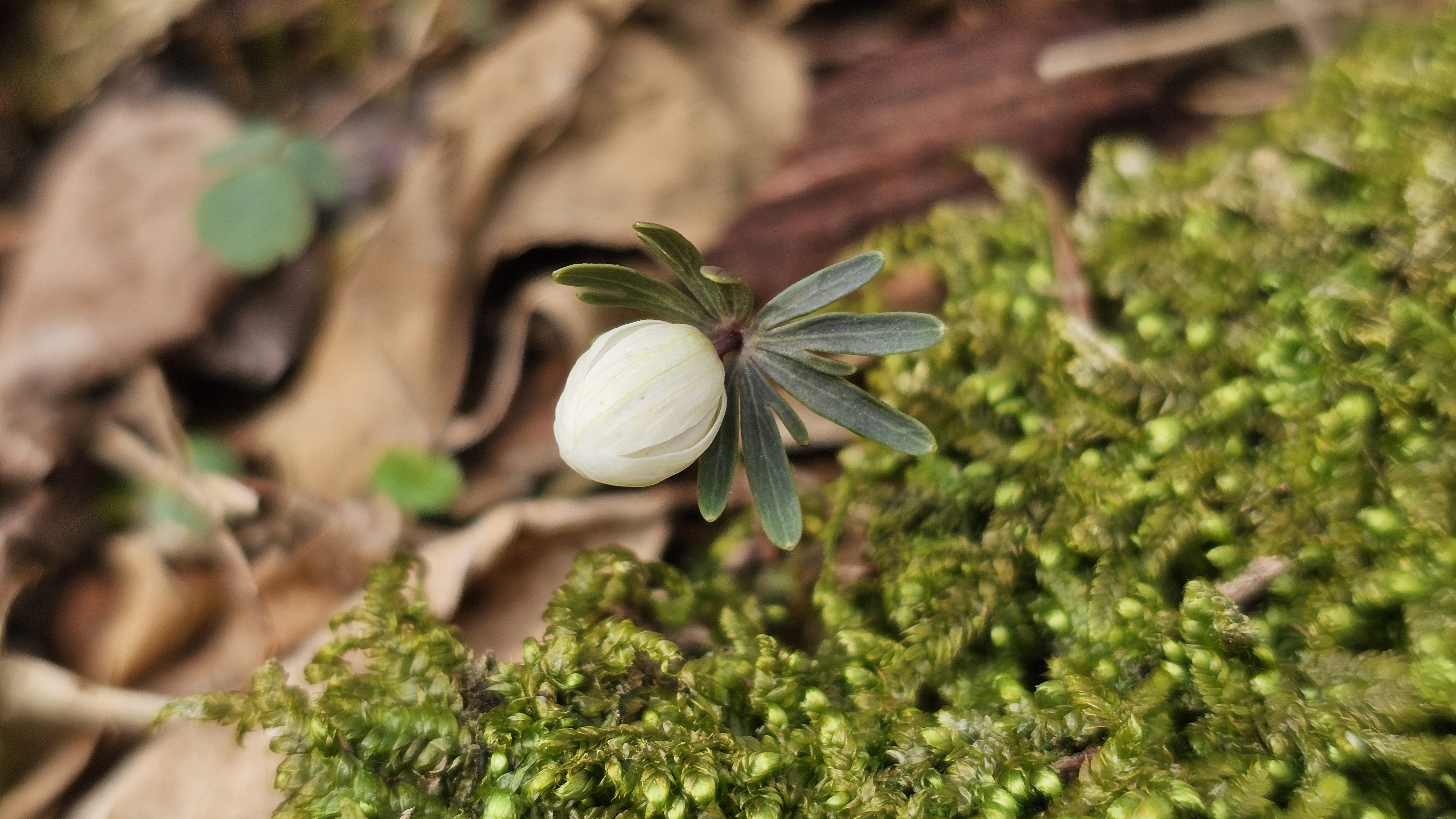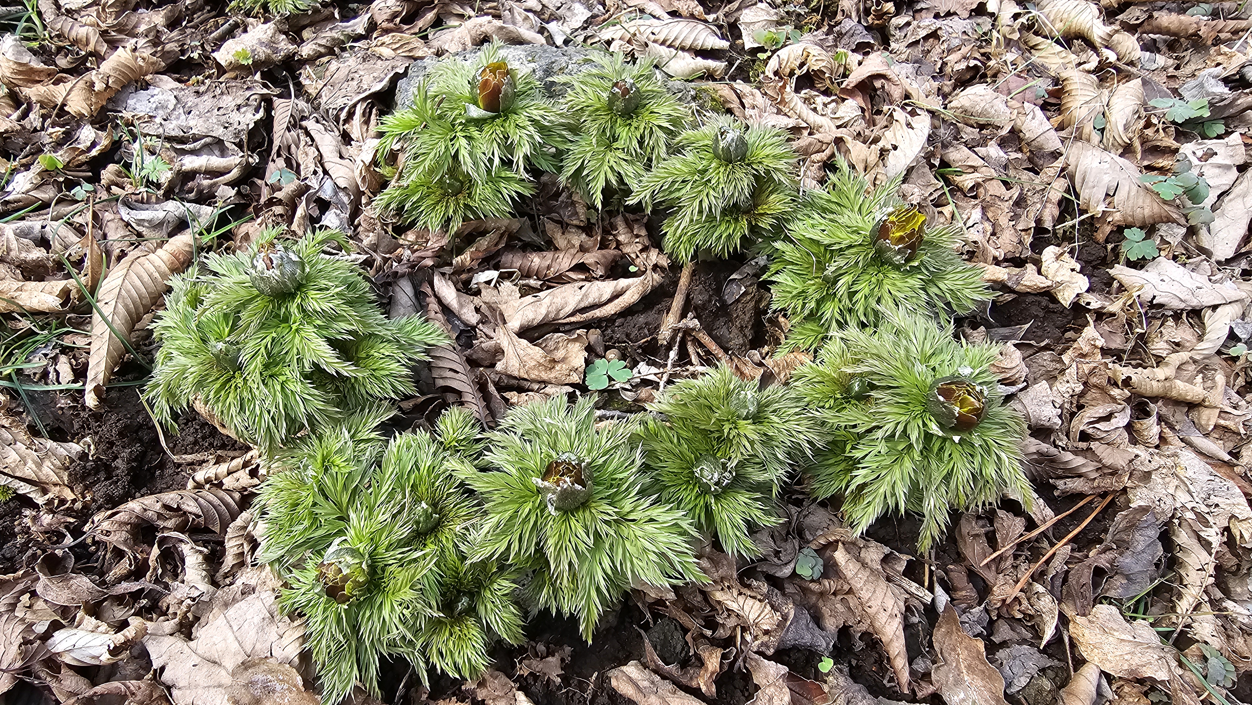 나뭇잎을 이불 삼아 보송보송 솜털을 단 앙증맞은 '새끼노루귀'