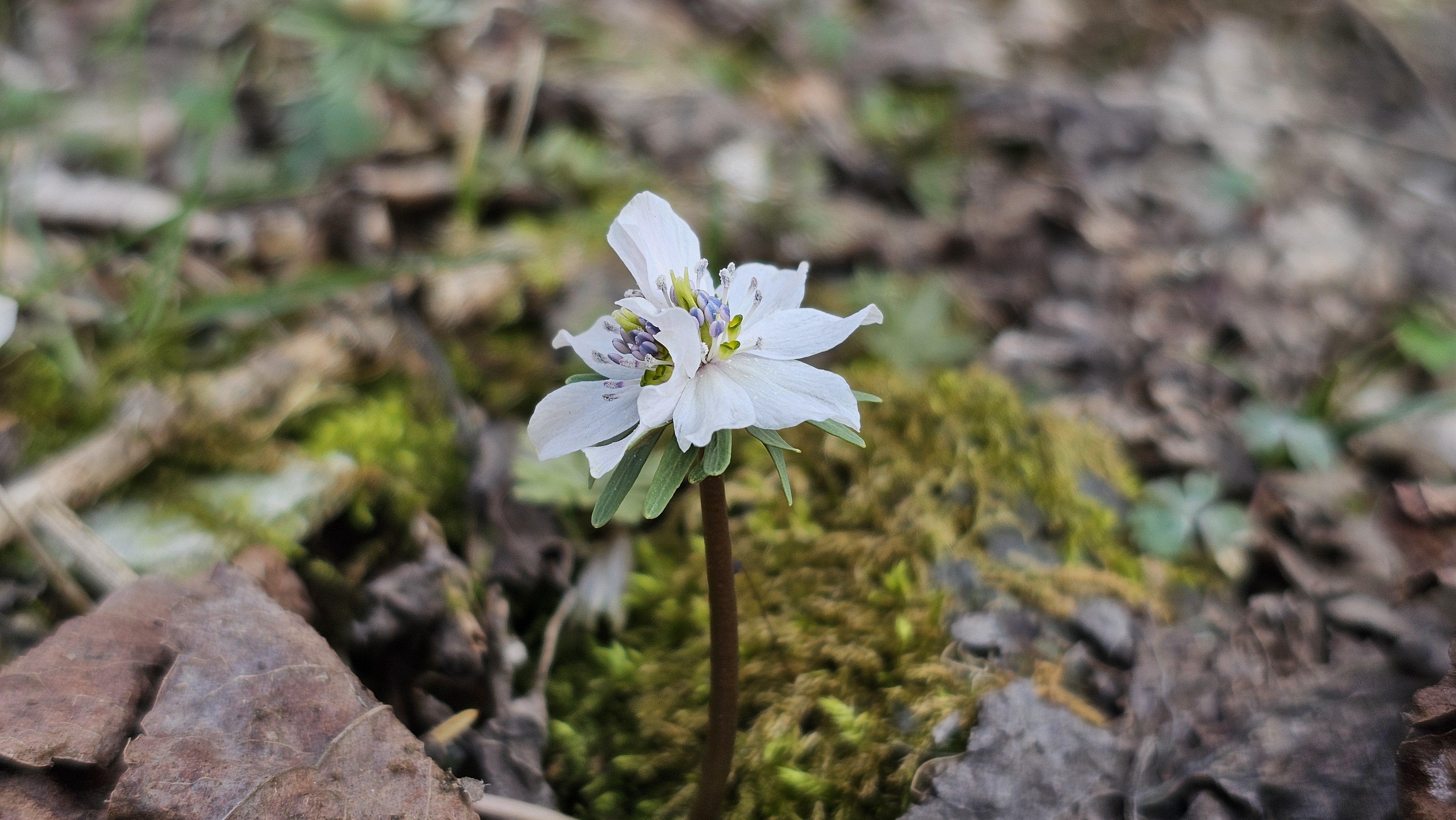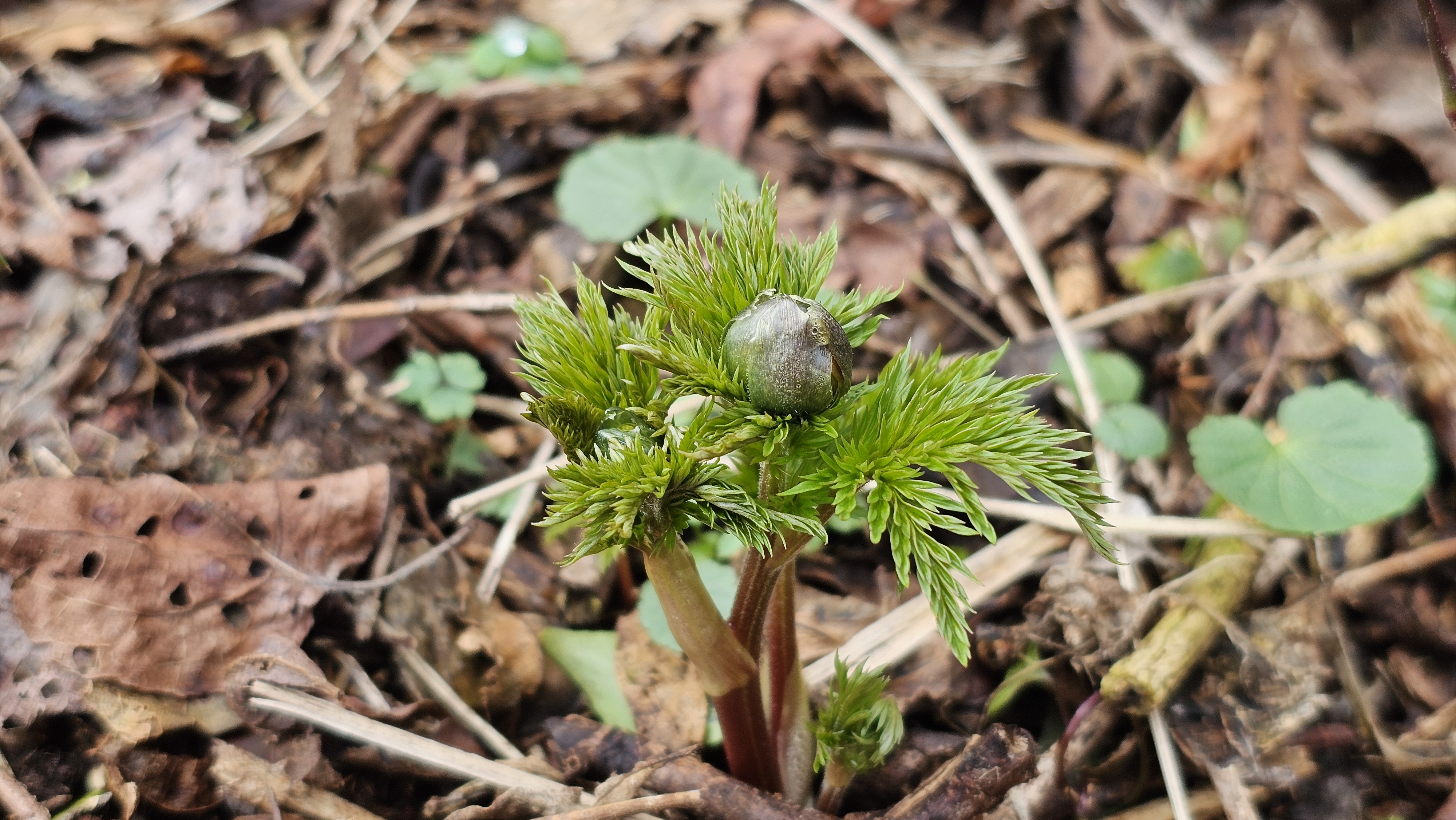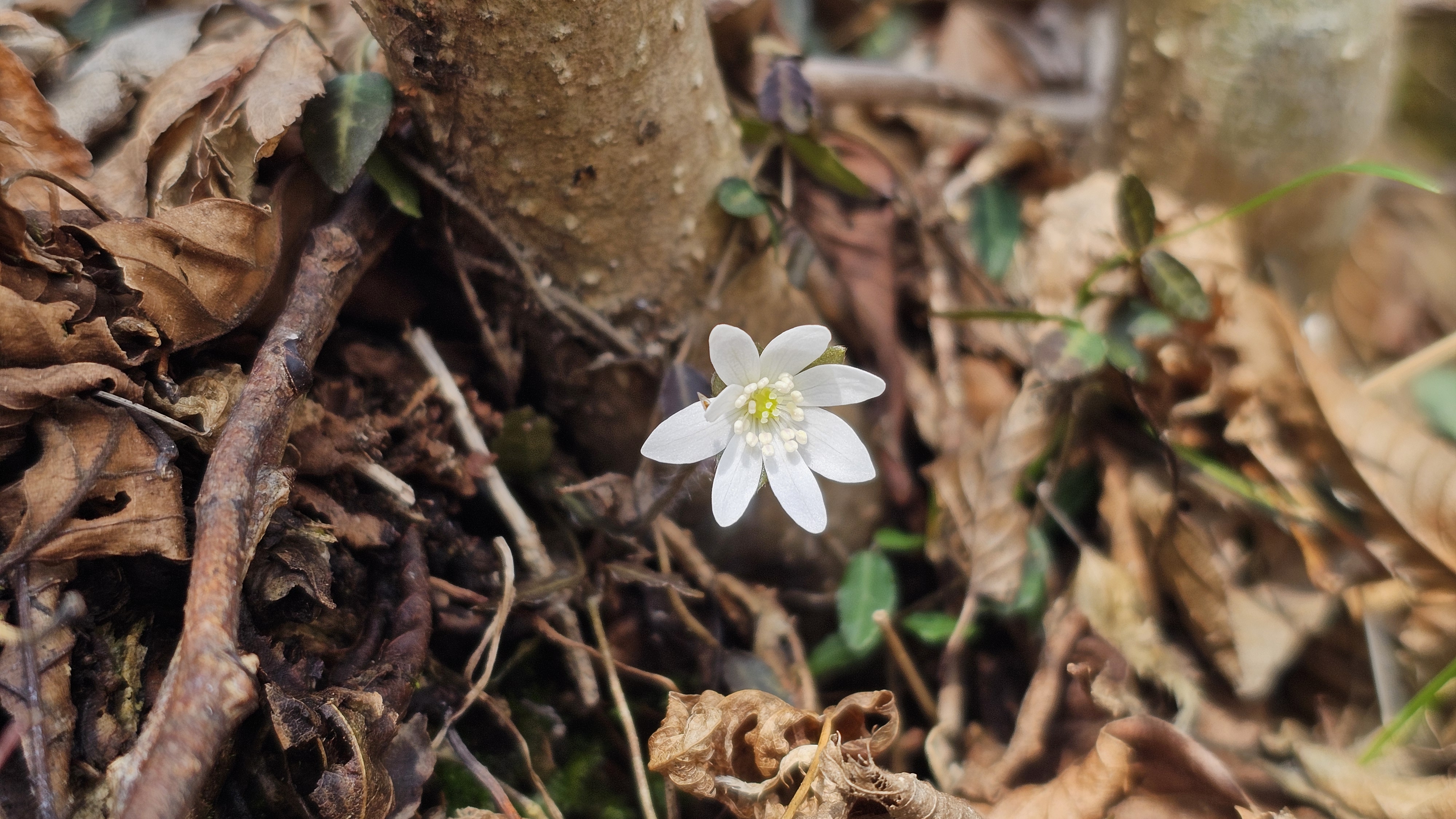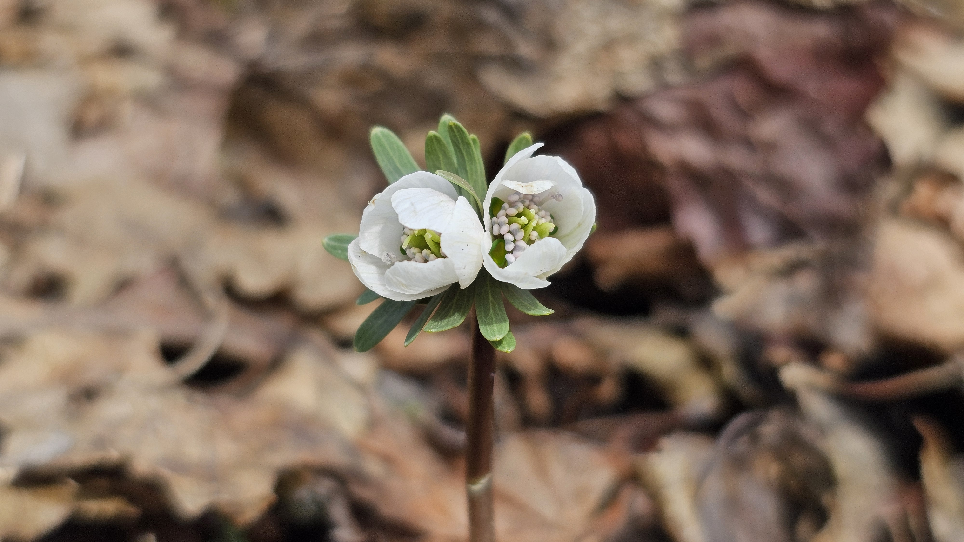 나뭇잎을 이불 삼아 보송보송 솜털을 단 앙증맞은 '새끼노루귀'