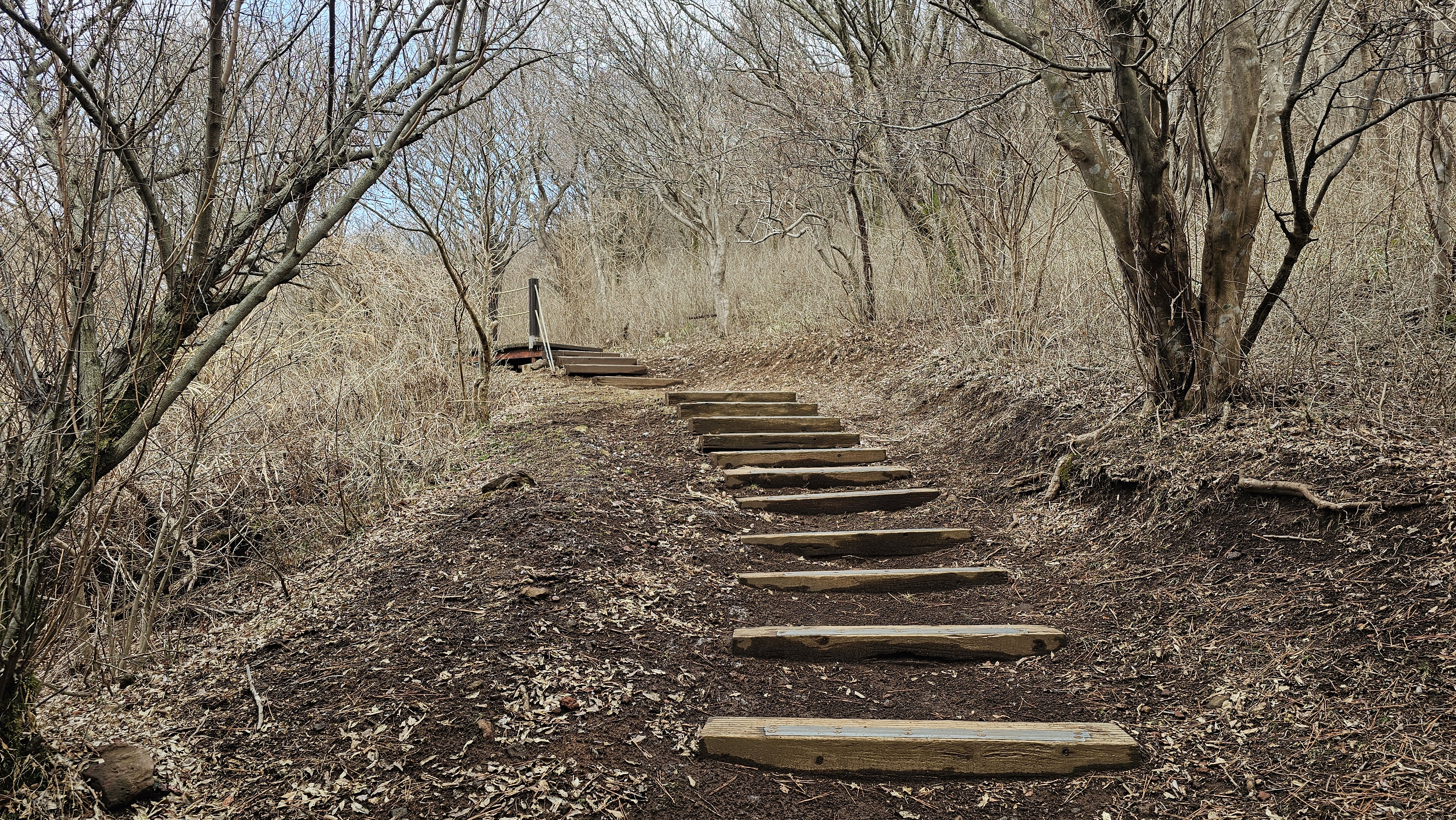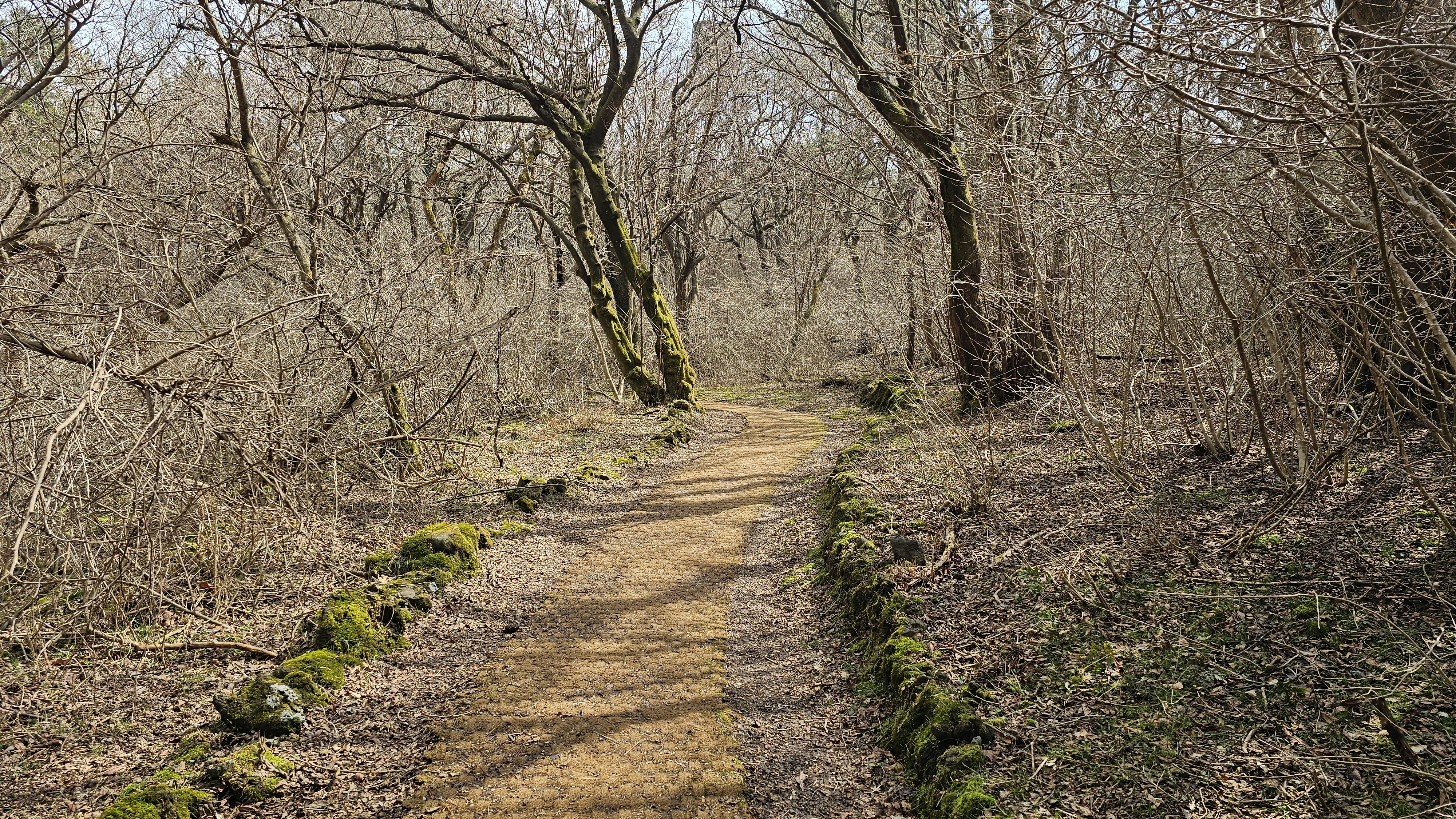 발에 닿는 굴곡, 세월이 느껴지는 앙상한 숲길