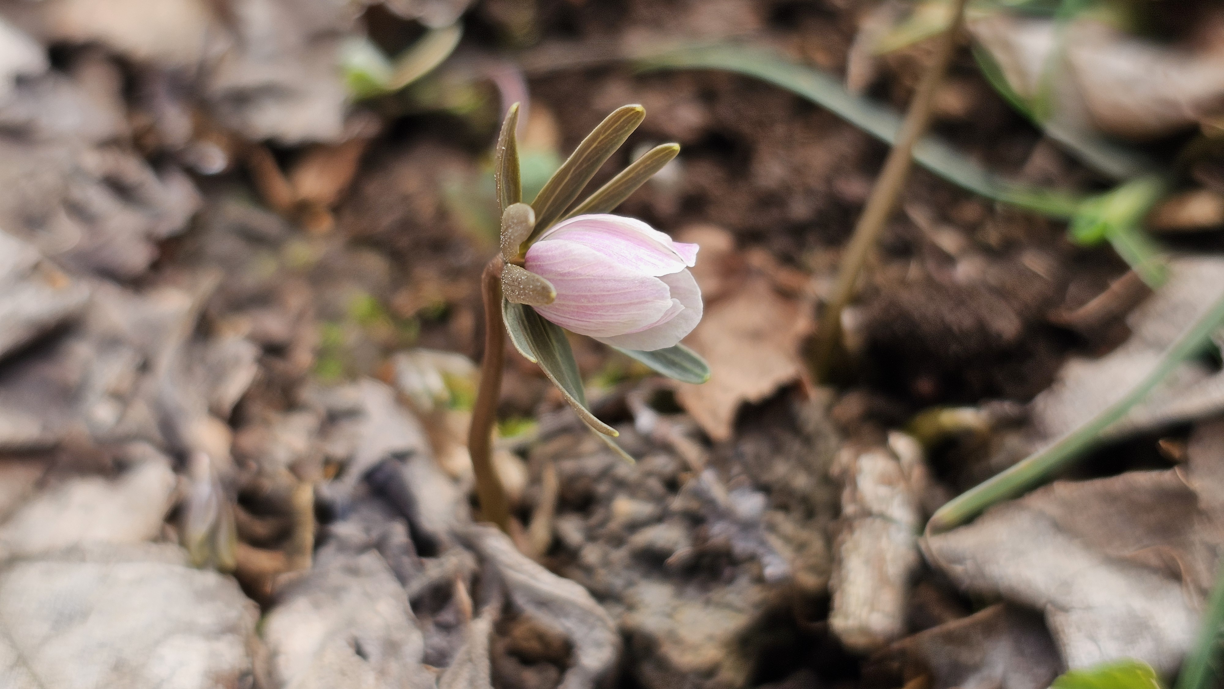 보송보송 하얀 솜털이 앙증맞은 '새끼노루귀'가 기지개를 켠다.