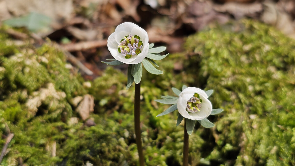 까꿍! 드디어 눈 맞춘 '변산바람꽃 쌍두',