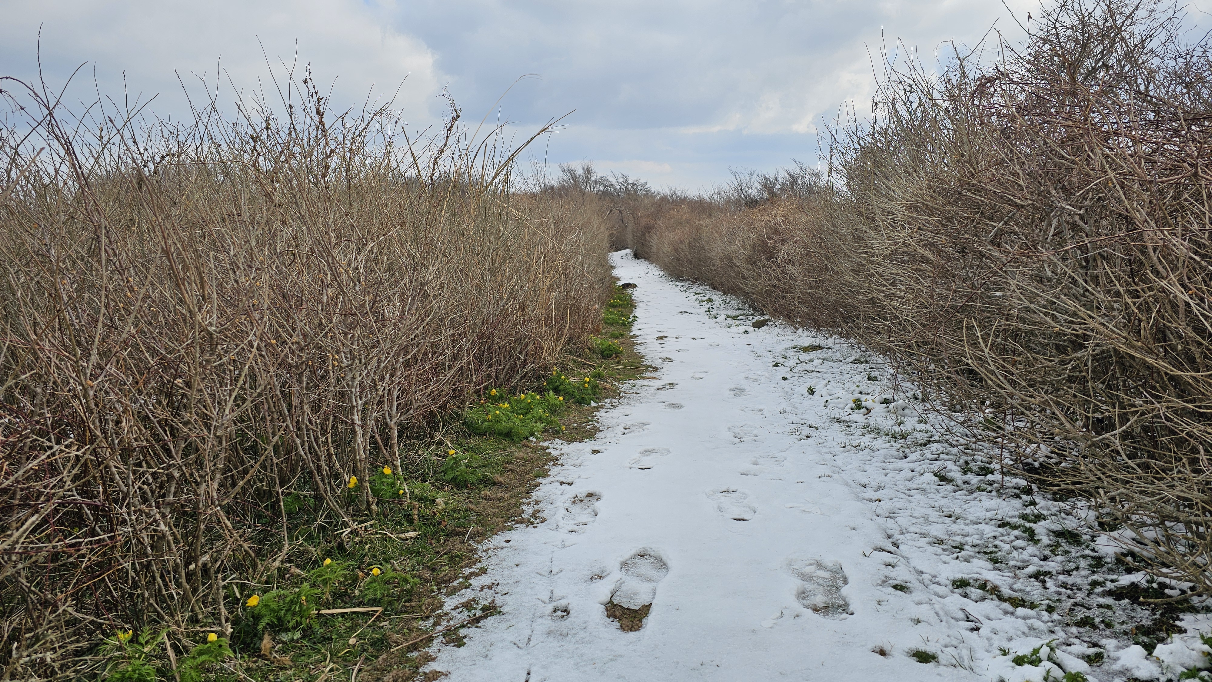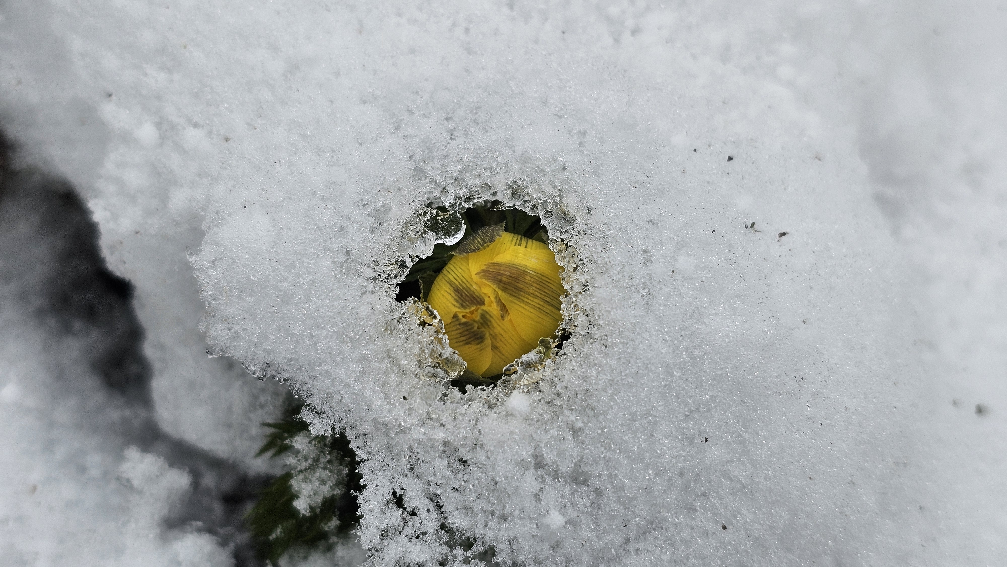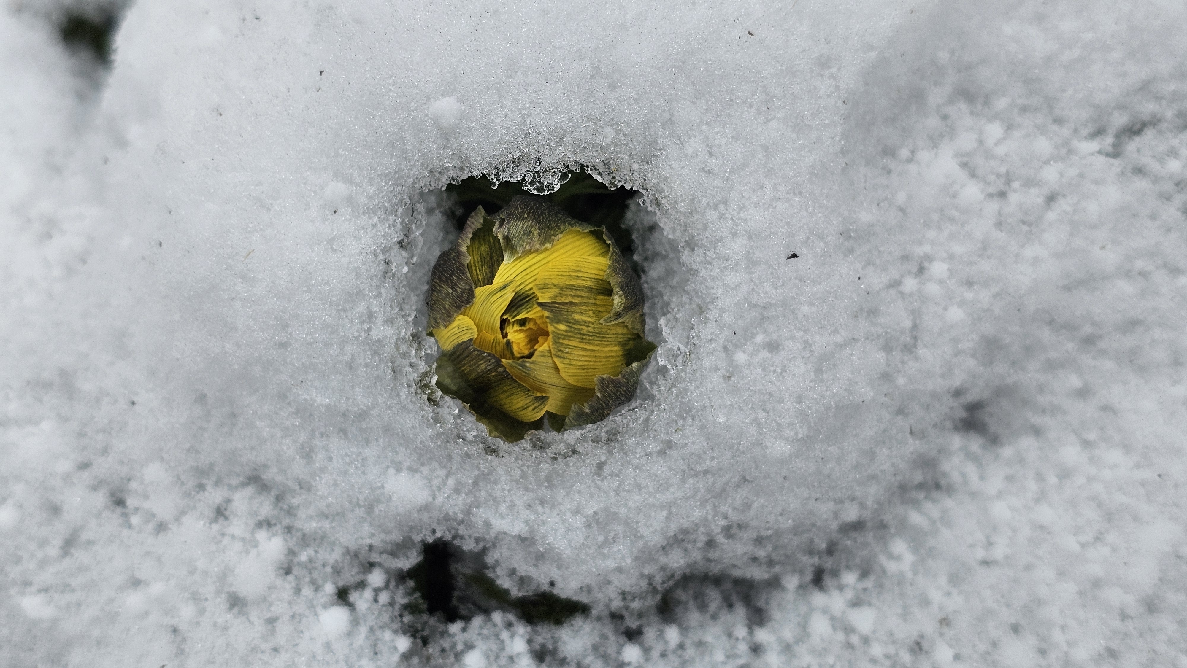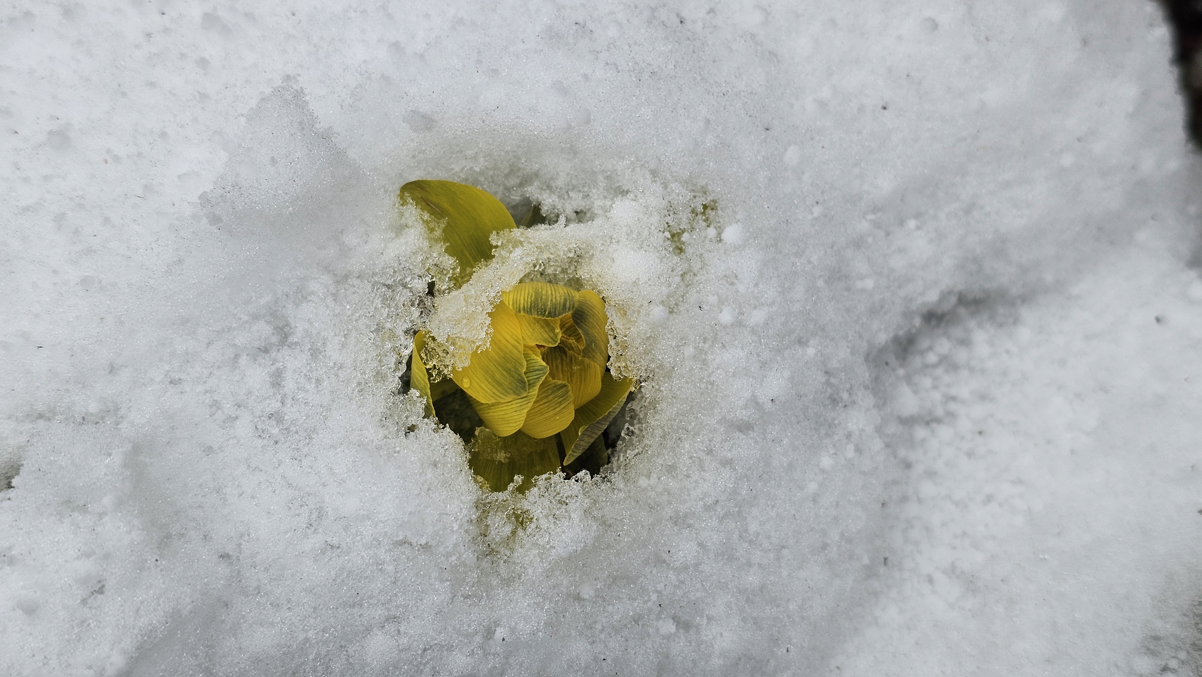 몇 발짝 걸었을 뿐인데 눈밭 뚫고 고개 내미는 얼음새꽃