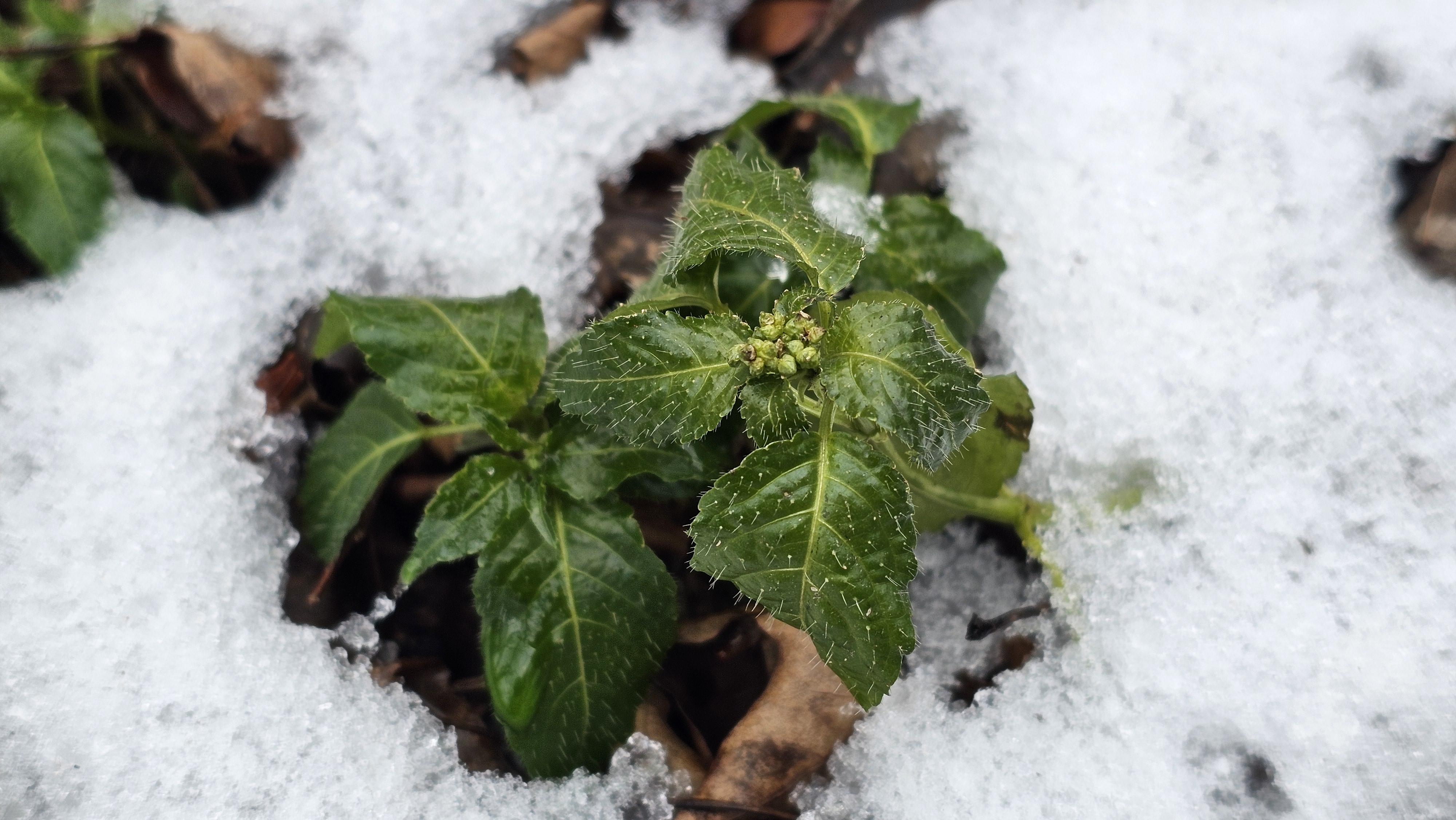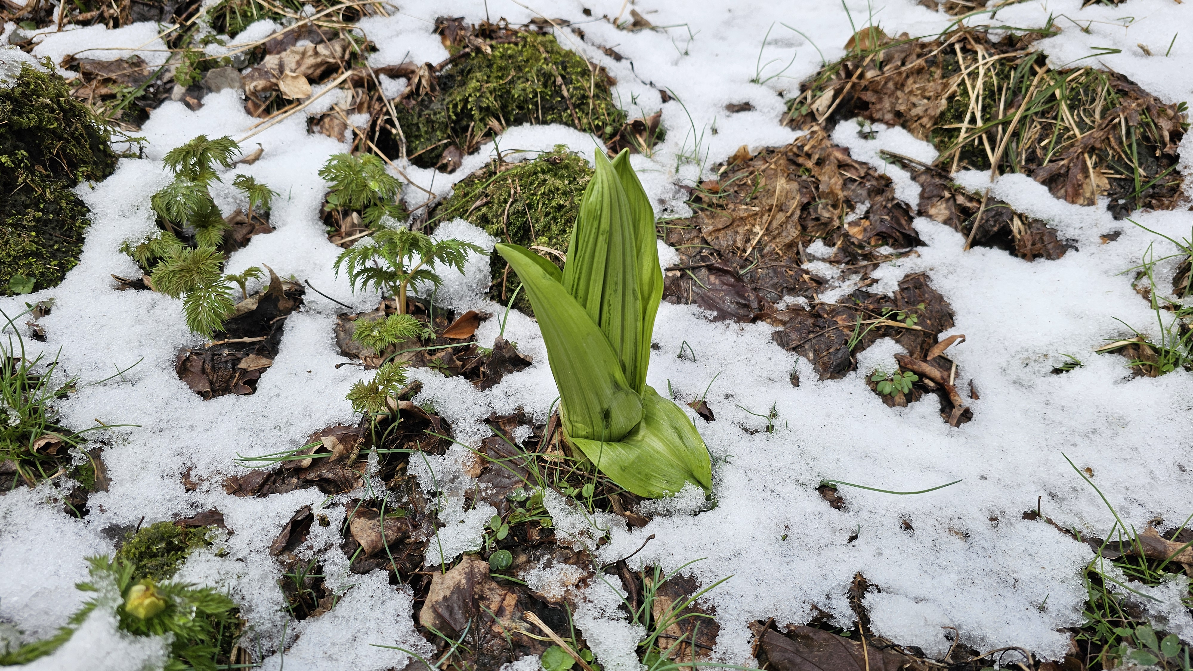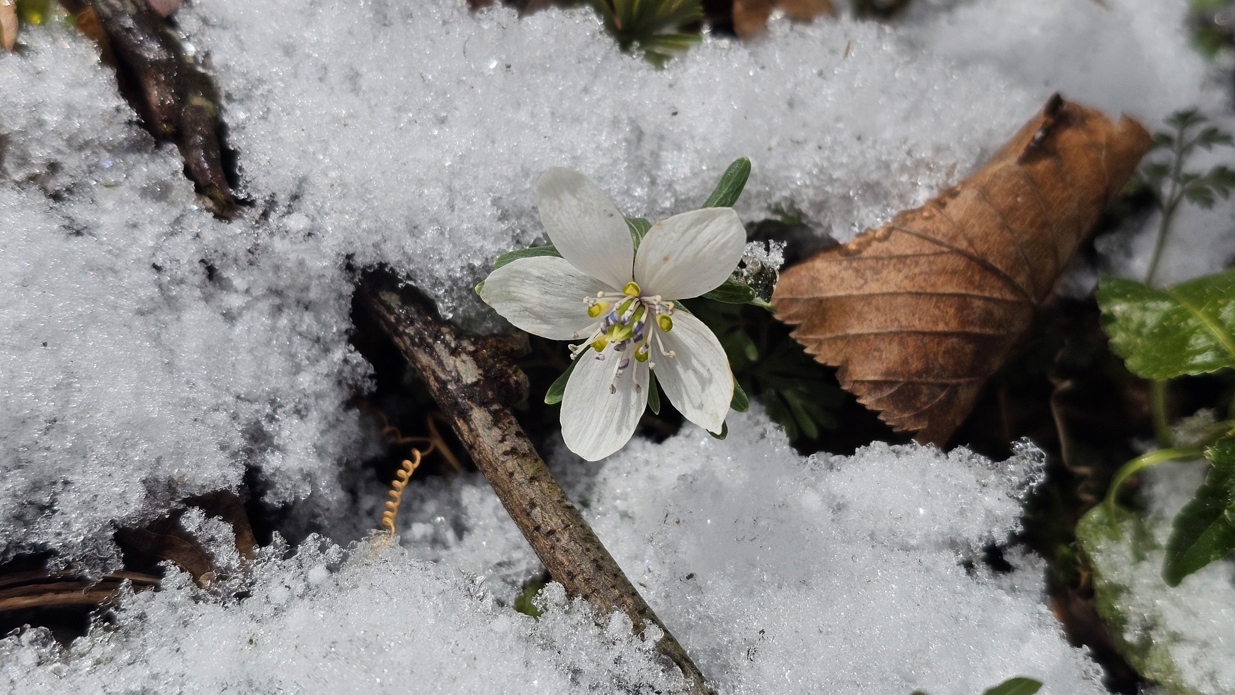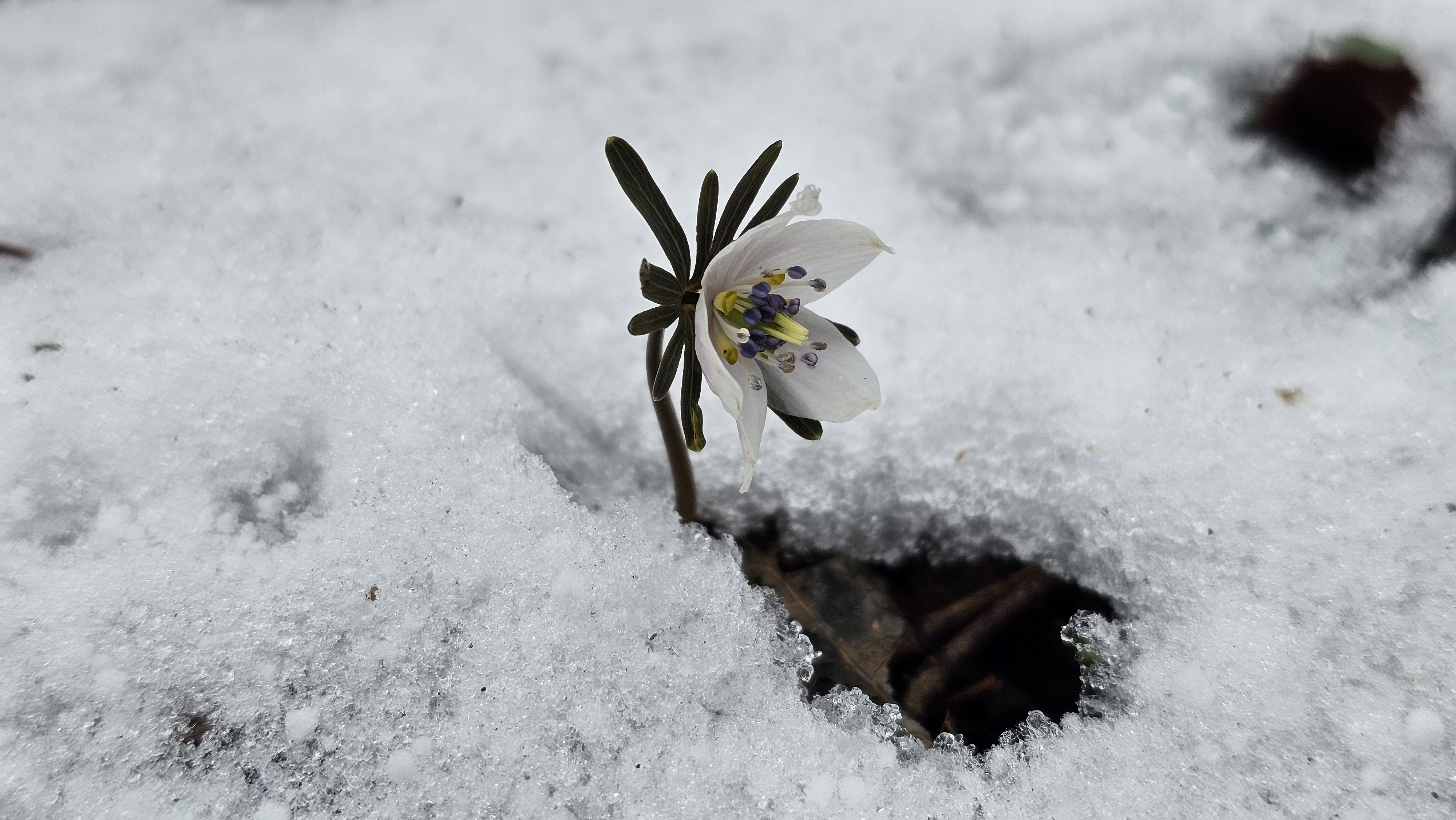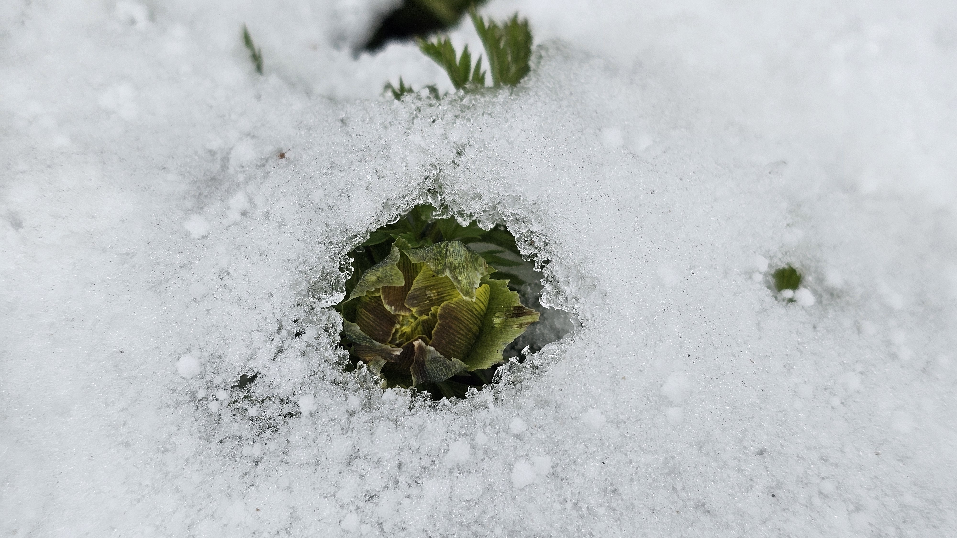 몇 발짝 걸었을 뿐인데 눈밭 뚫고 고개 내미는 얼음새꽃