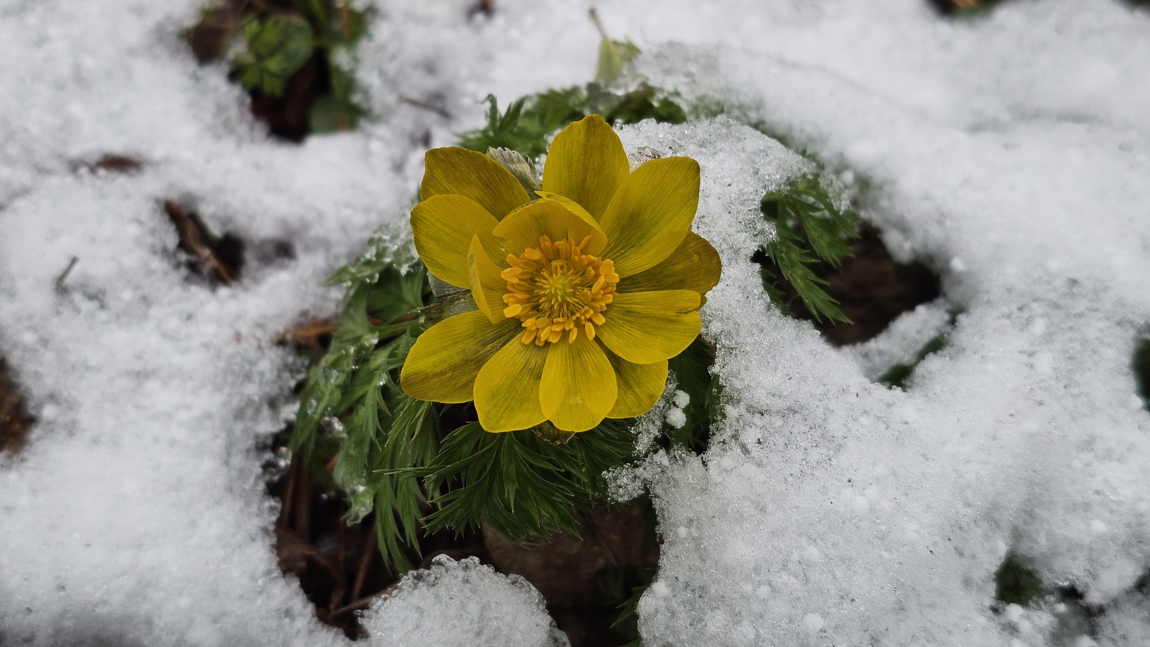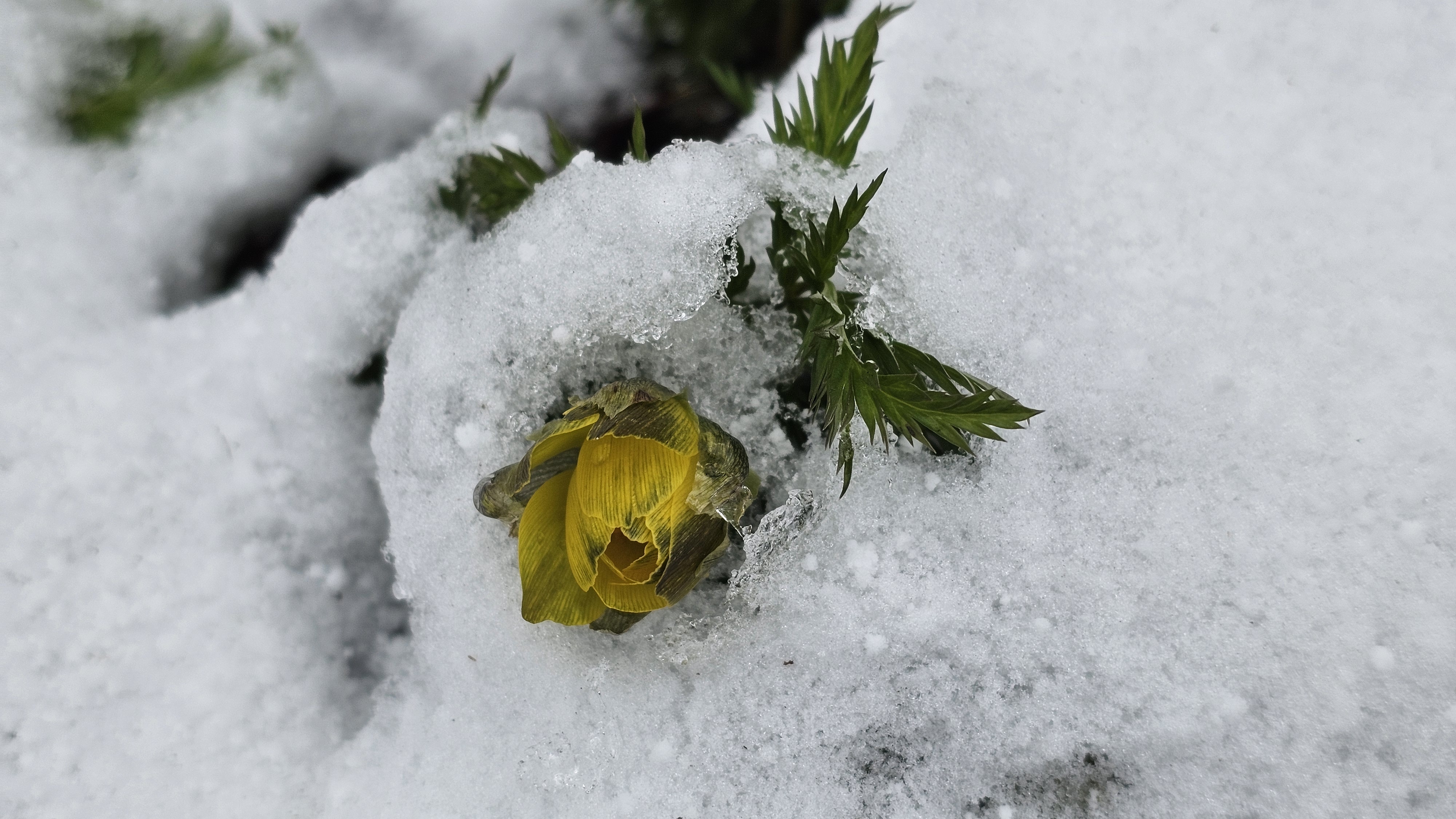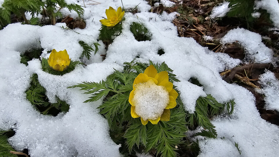 언 땅을 뚫고 나왔던 세복수초는 얼음새꽃이 되어 희망을 불어넣는다.