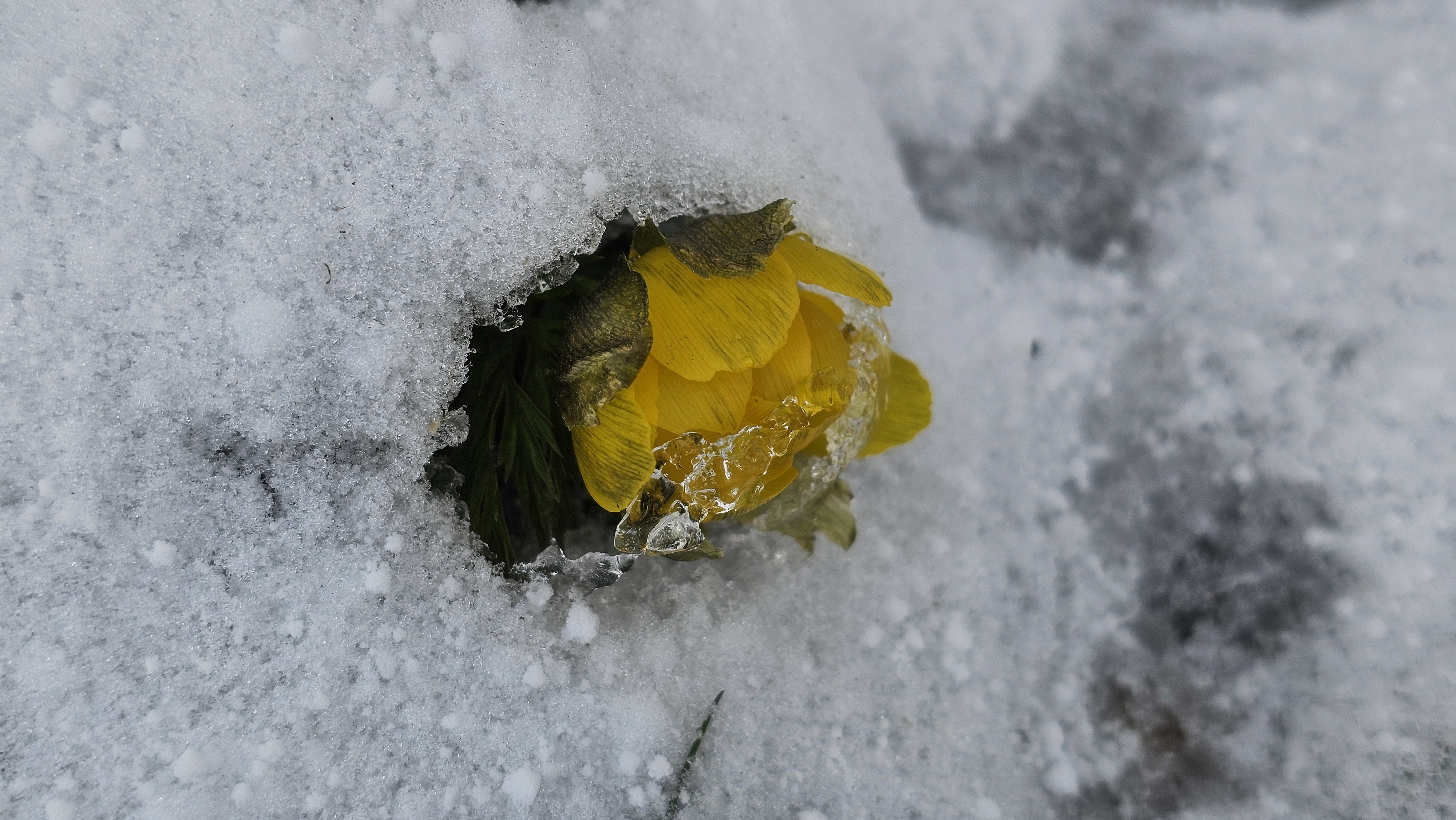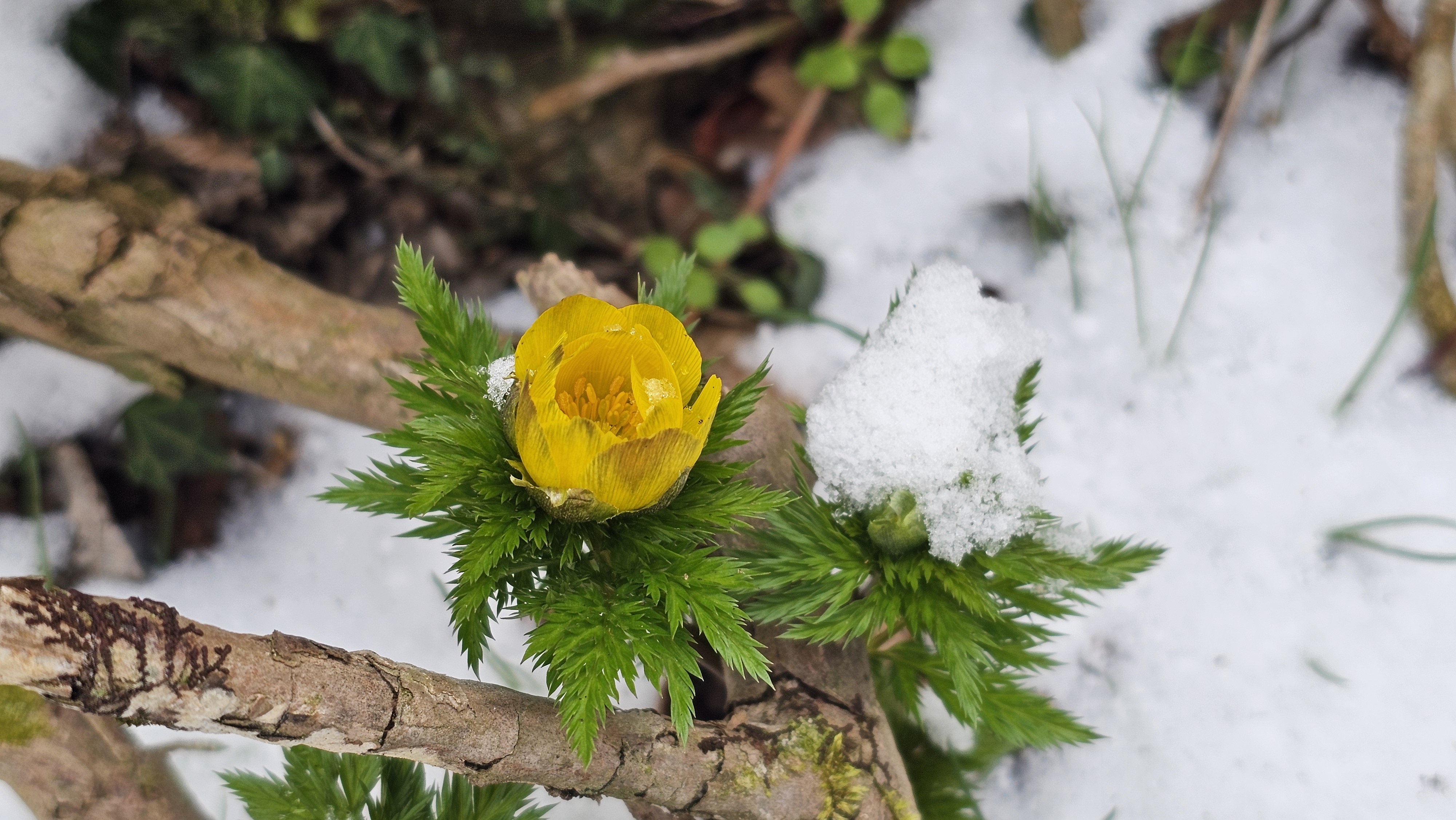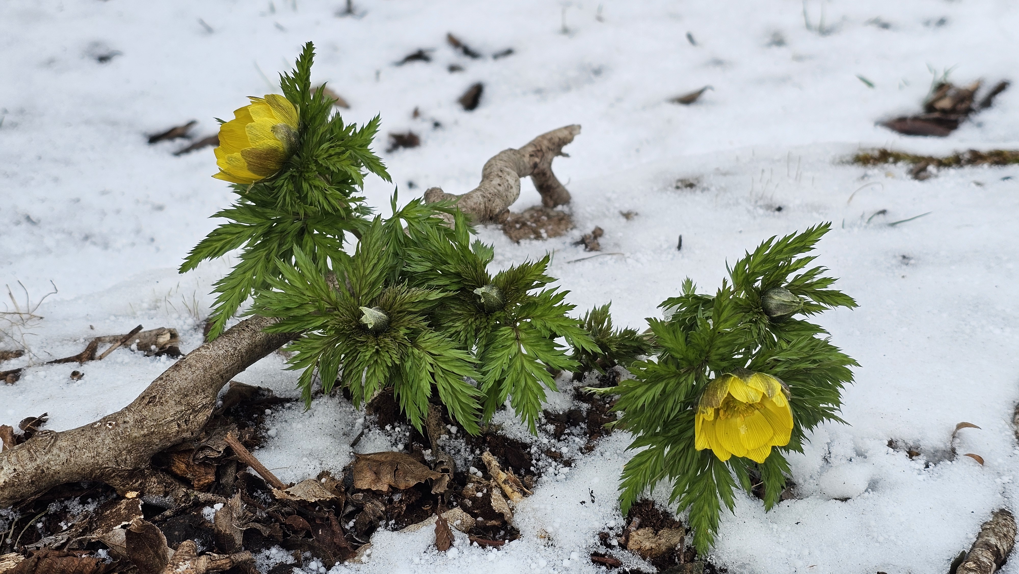 언 땅을 뚫고 나왔던 세복수초는 얼음새꽃이 되어 희망을 불어넣는다.