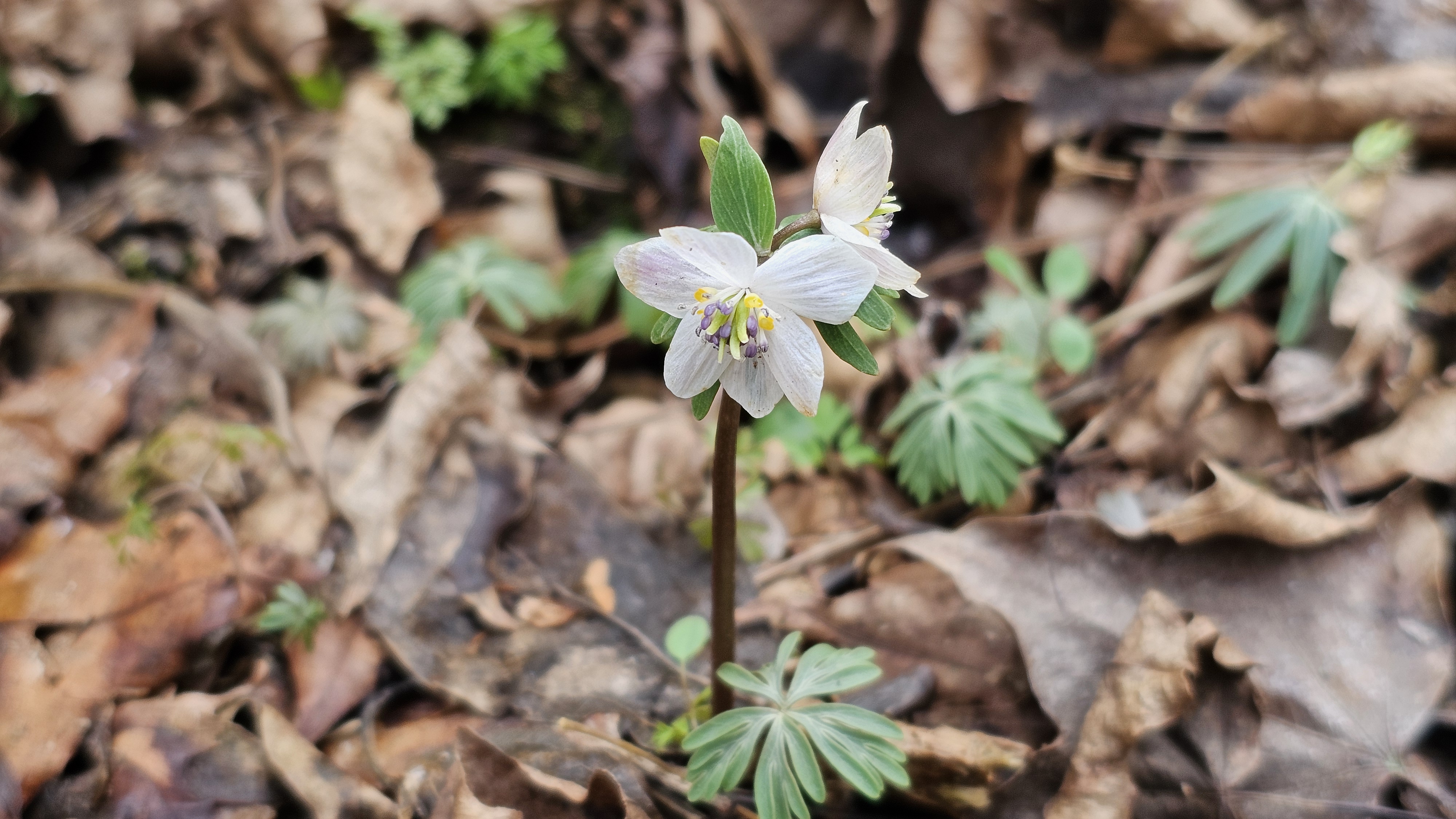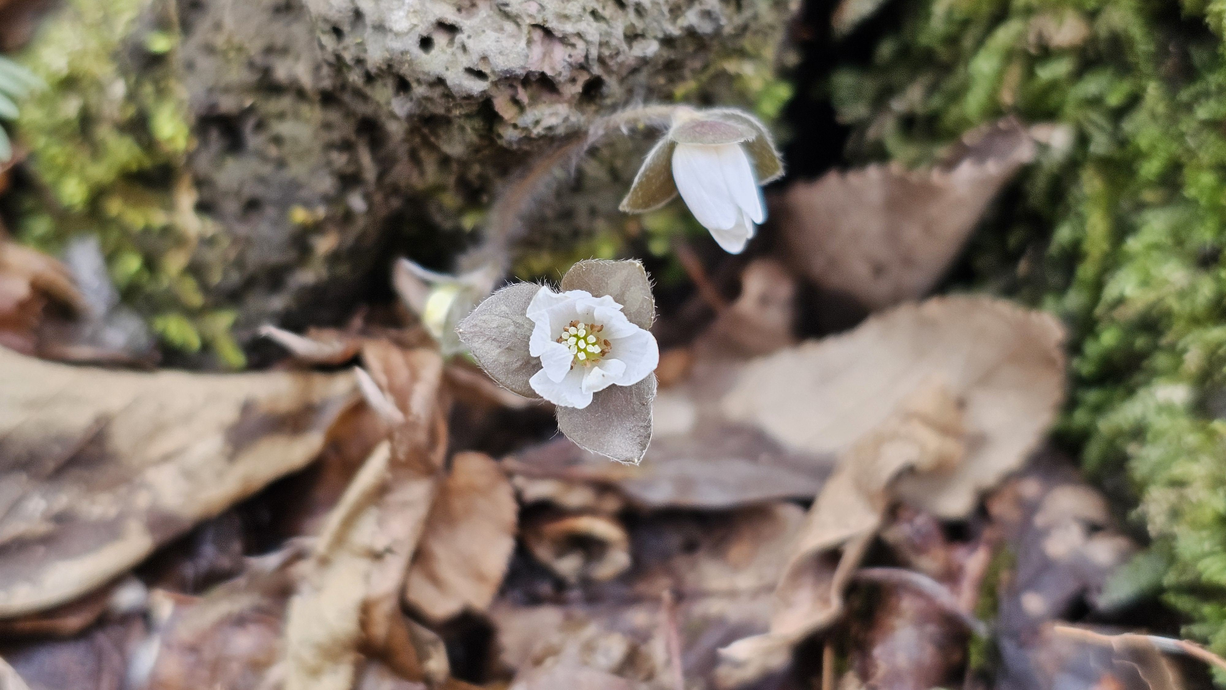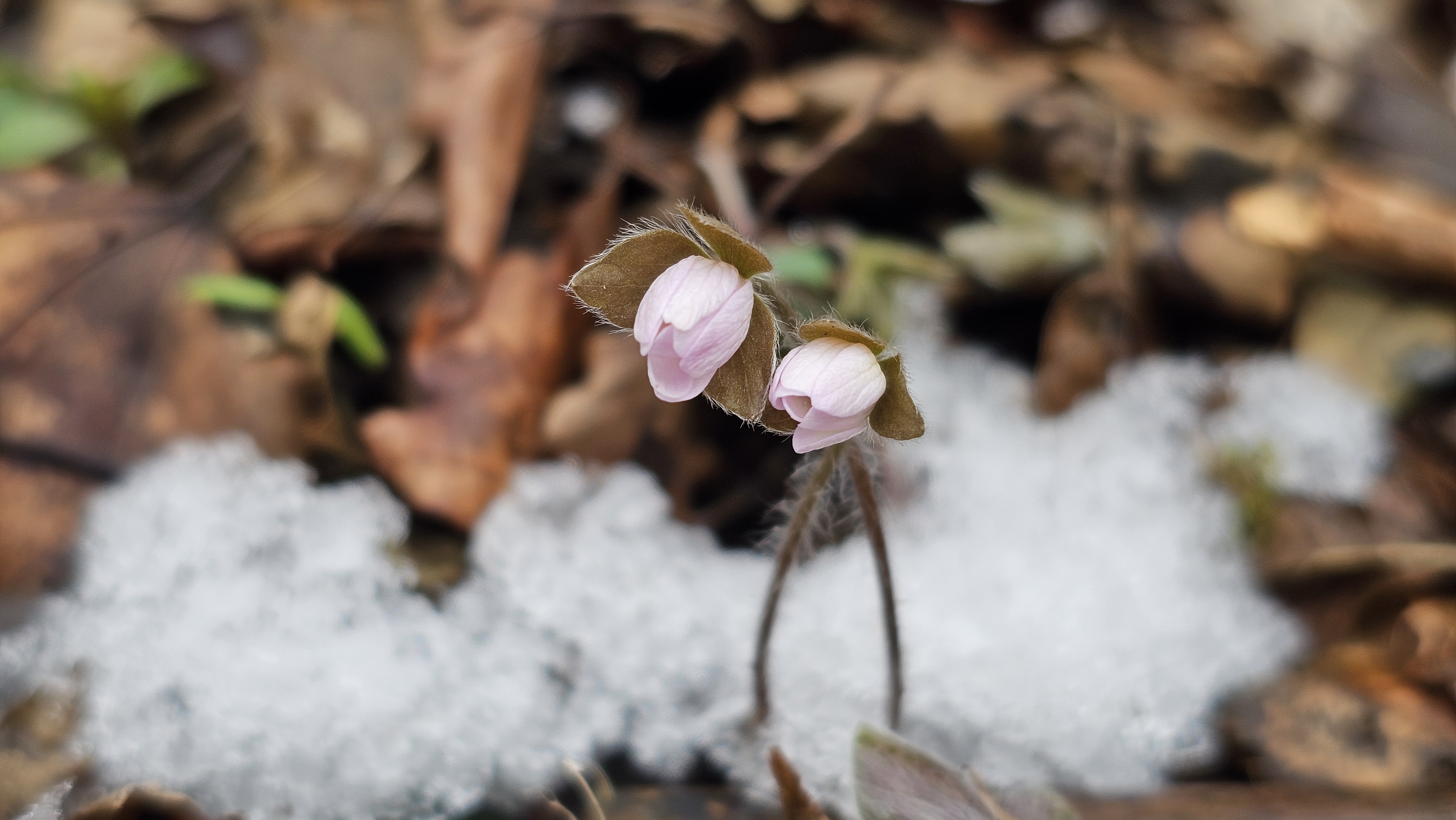 하얀 털옷을 입고 기지개 켜는 '새끼노루귀'