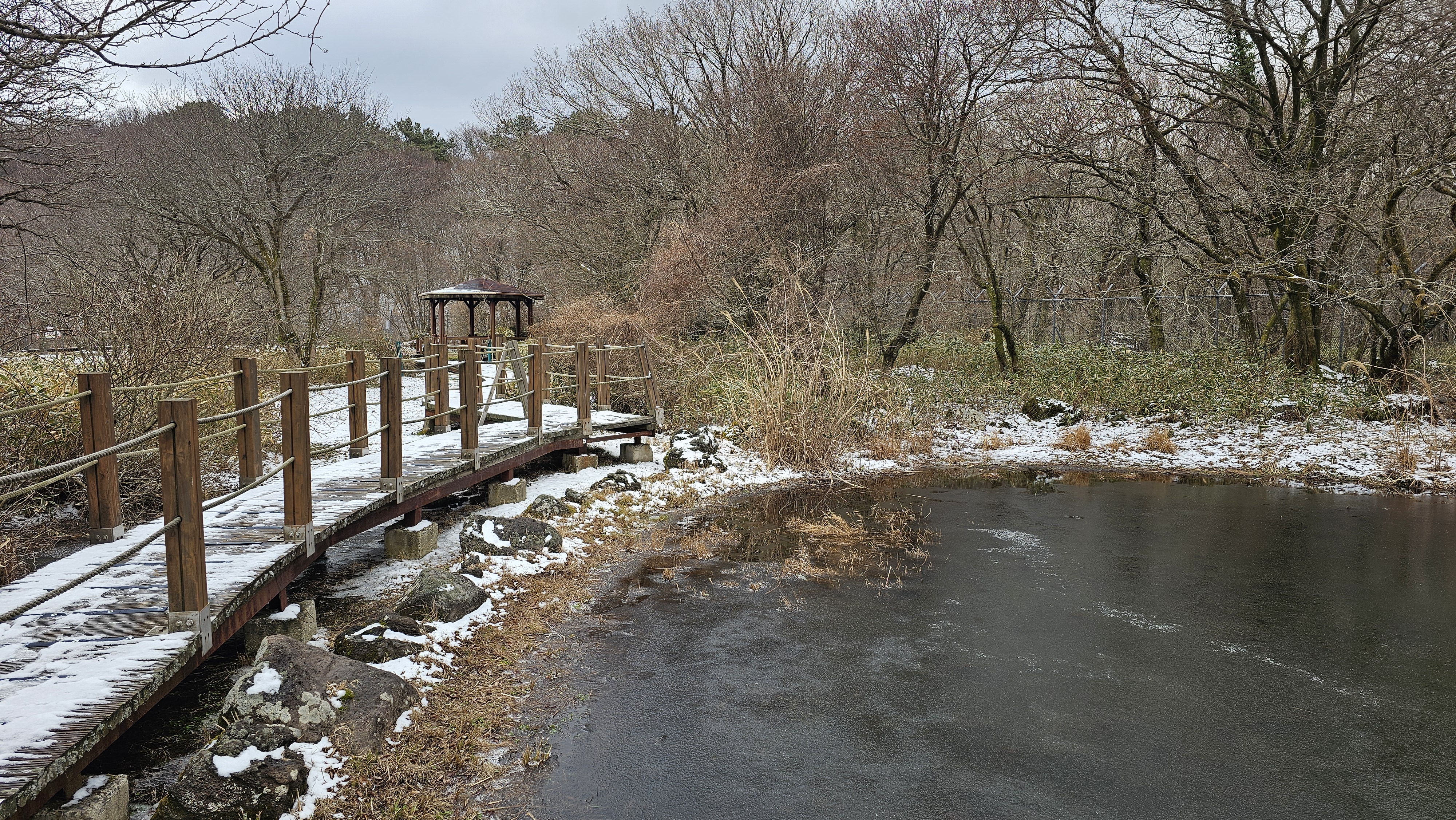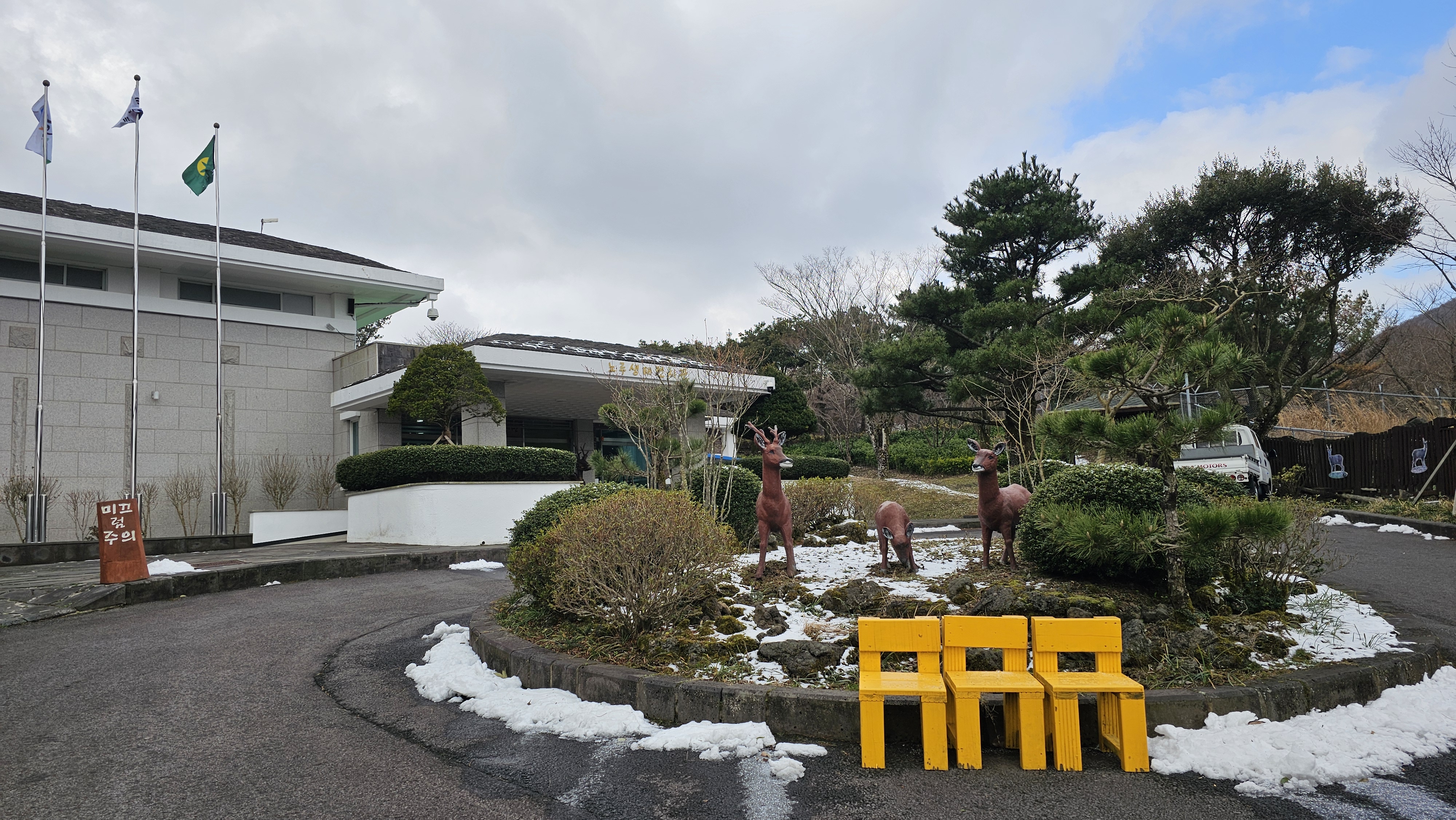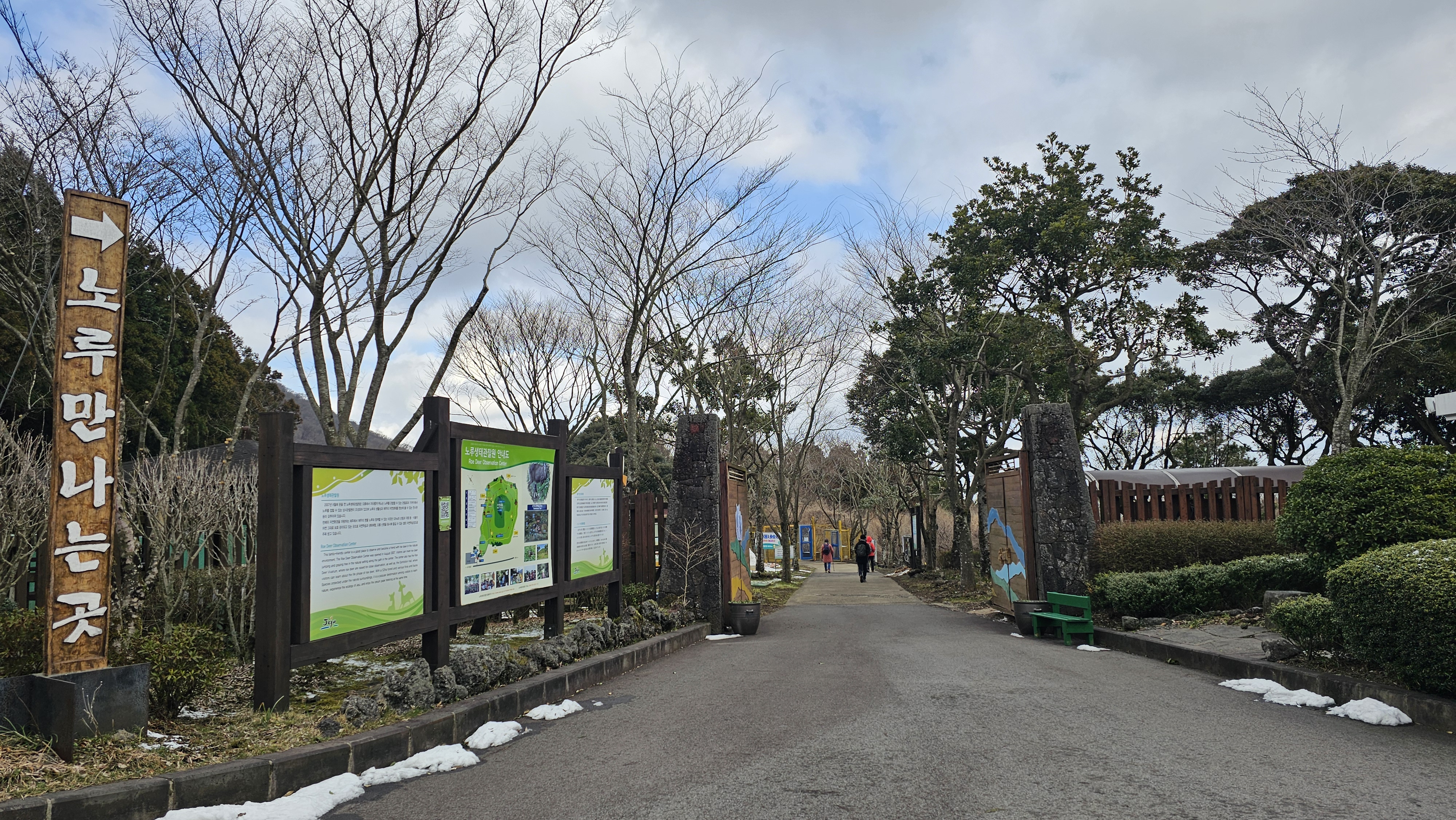 큰 기대 없이 노루생태관찰원으로 향하는 동안 도로에 쌓인 눈