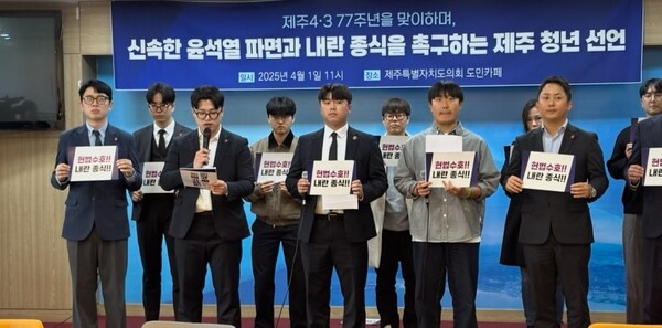 한편, 청년들은 이날 기자회견을 시작으로 신속한 윤석열 파면과 내란 종식을 위한 온라인 서명운동을 제주사회 각계각층으로 확산시켜 나갈 방침이다.
