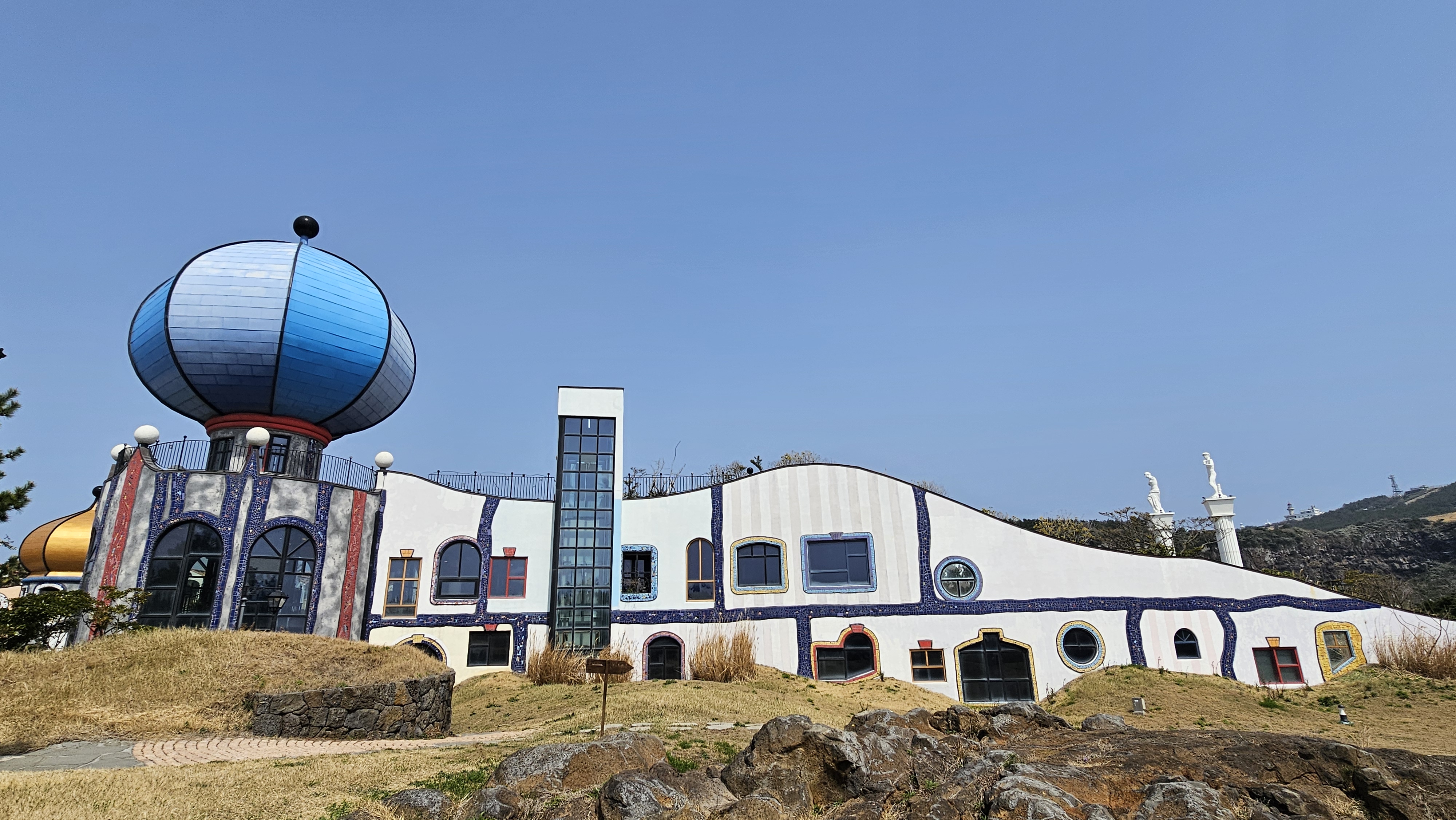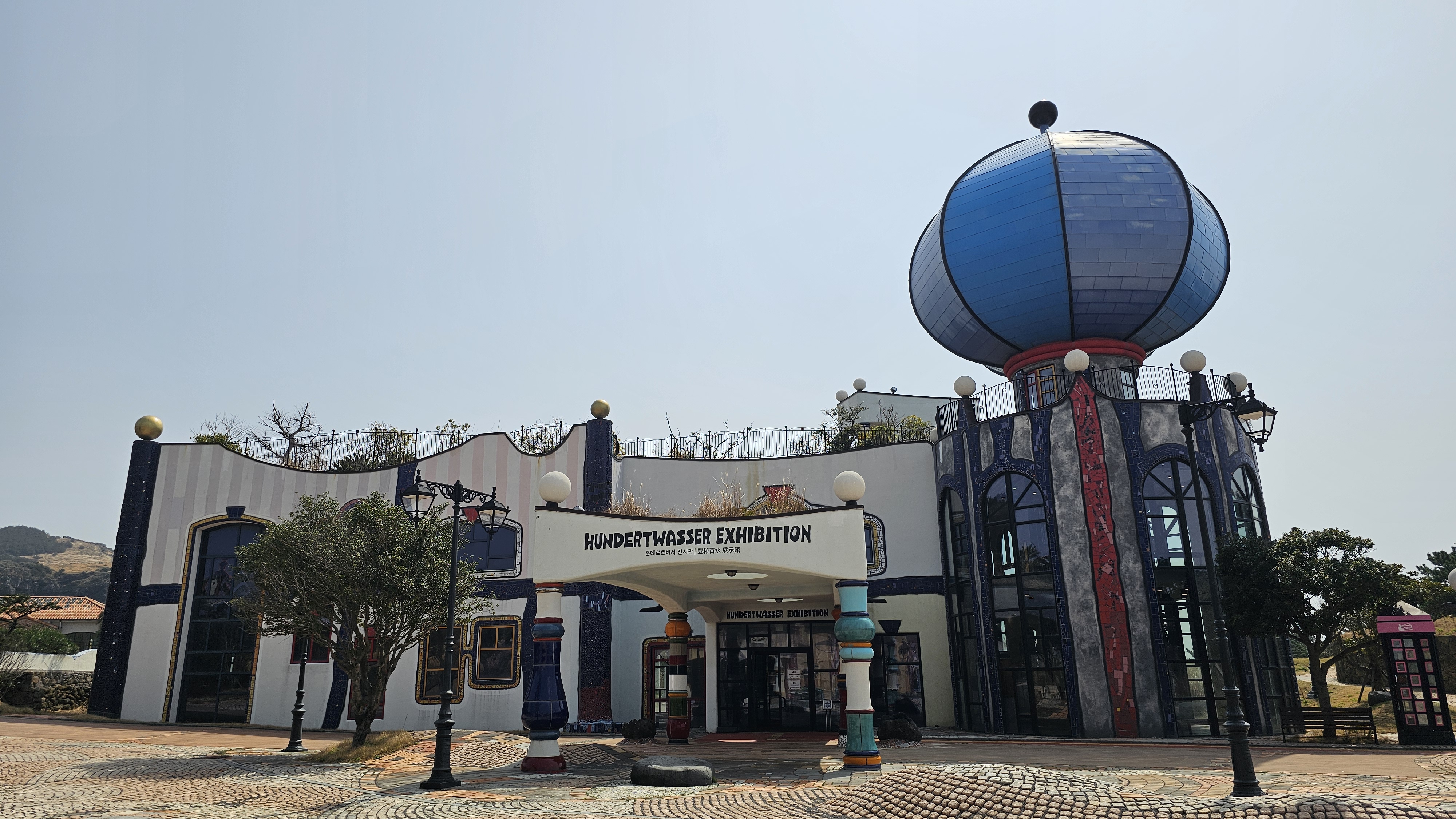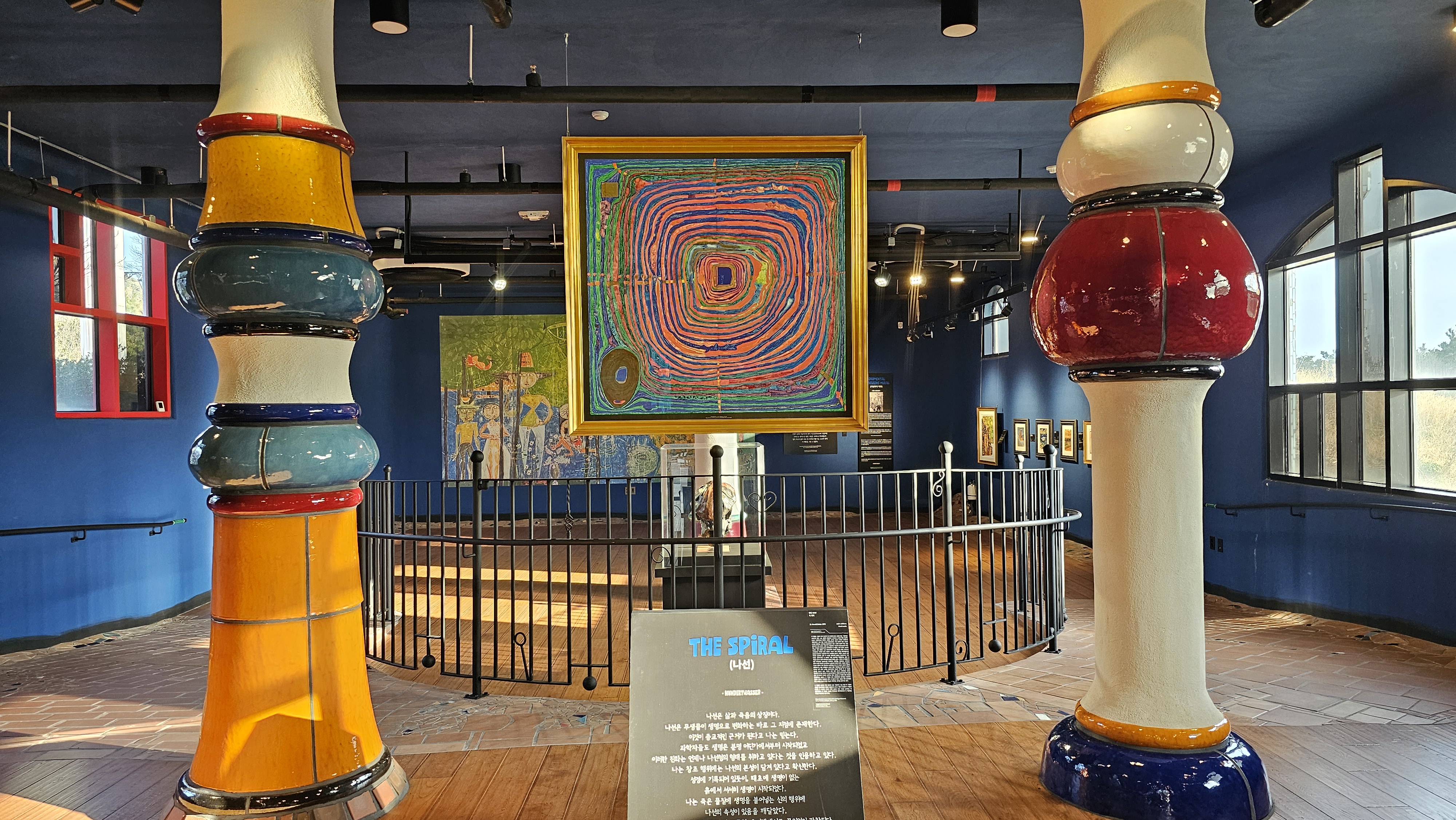 넓은 규모의 정원과 함께 바서의 철학이 담긴 훈데르트바서 전시관, 우도미술관,