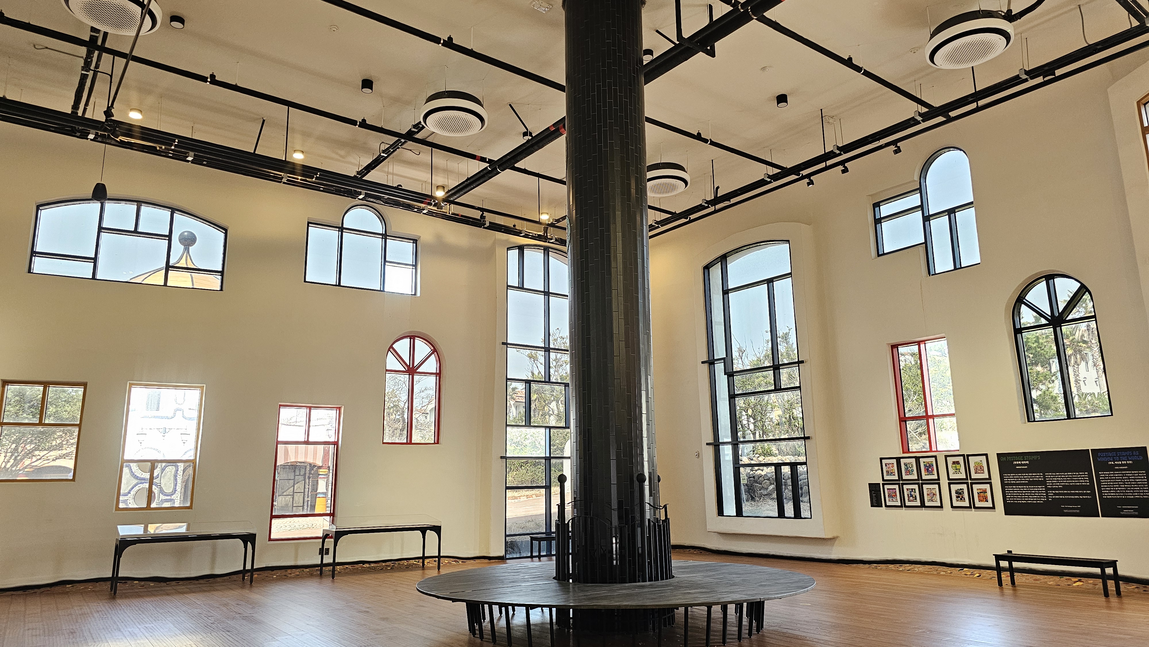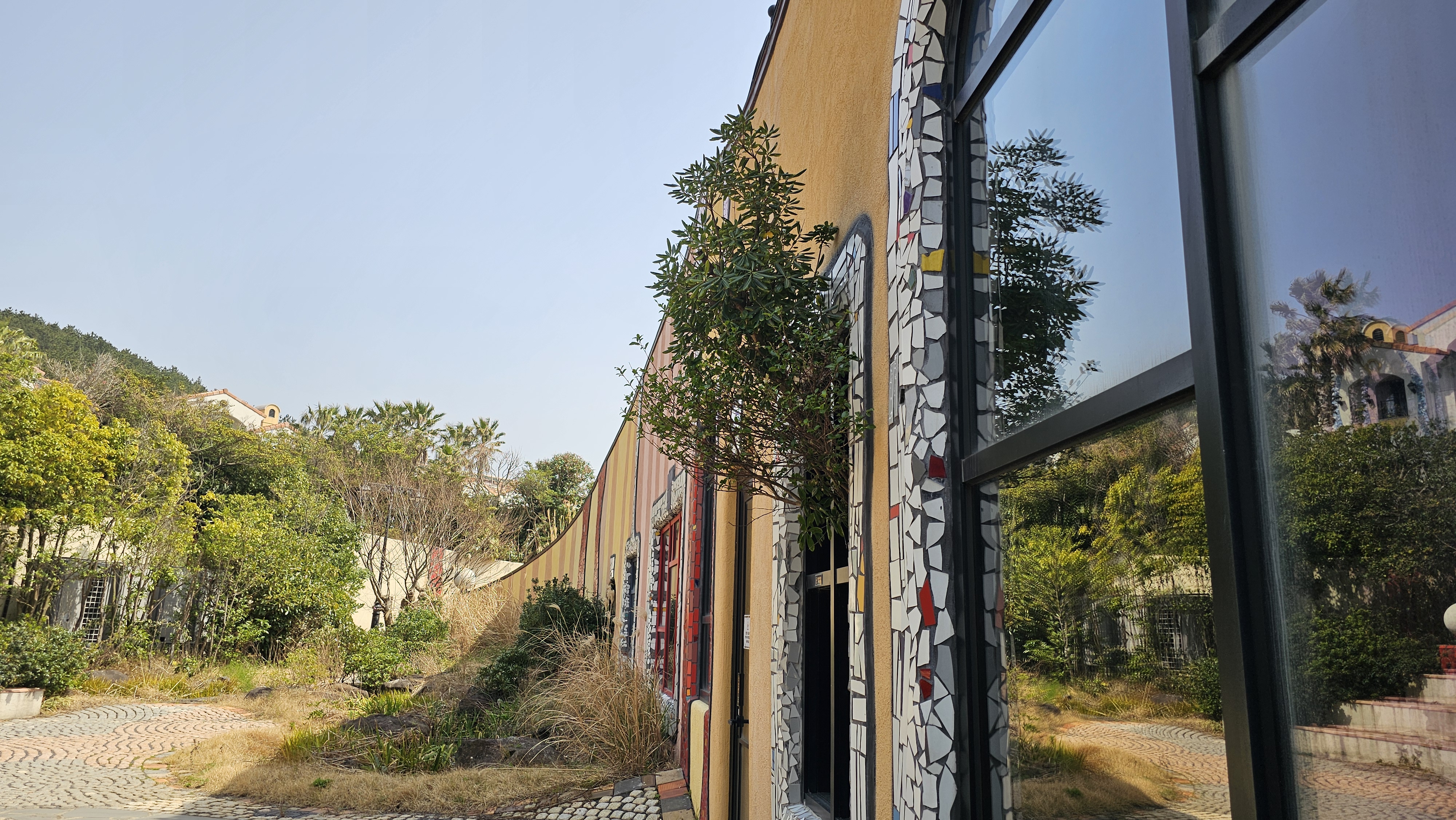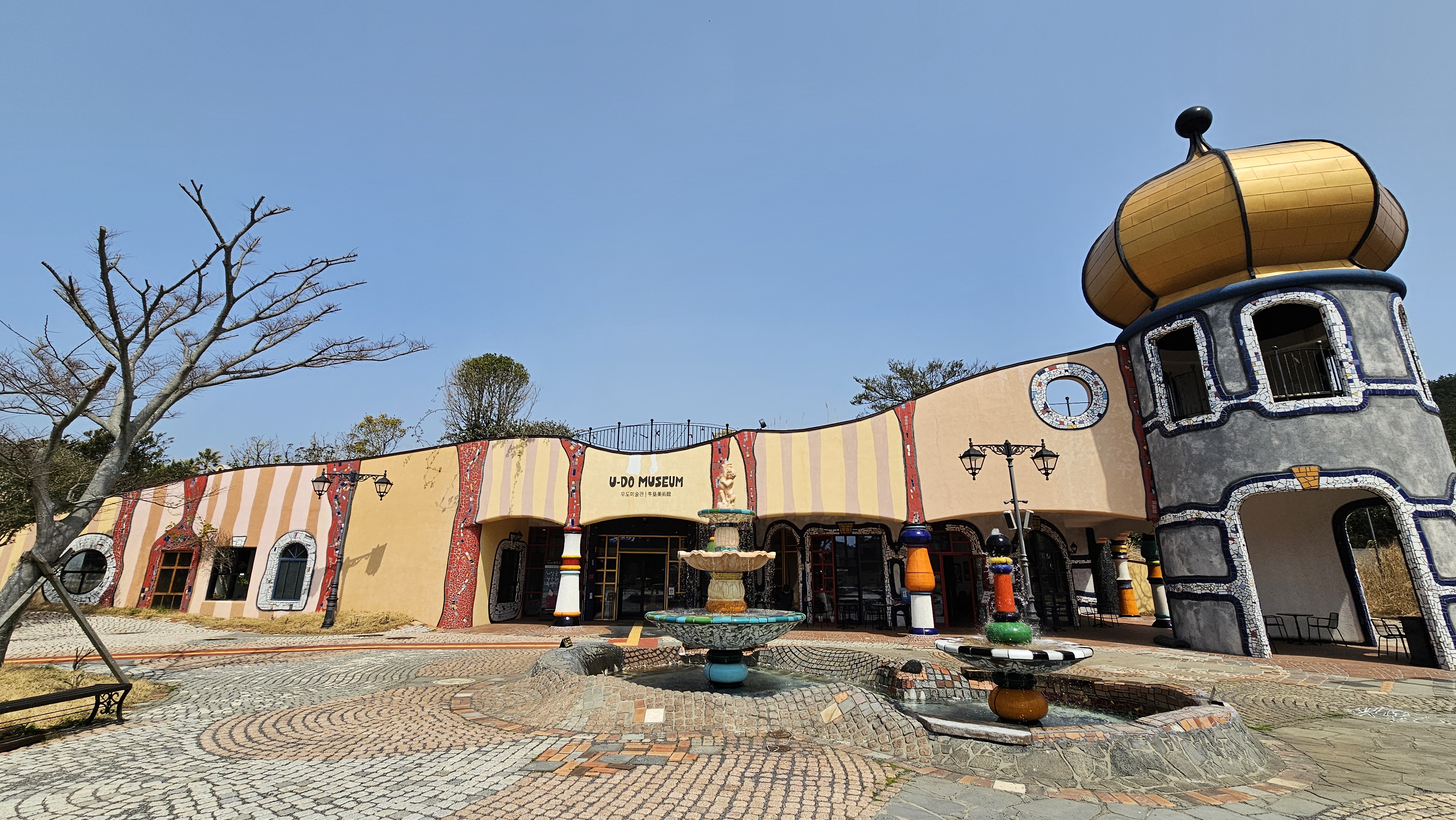 넓은 규모의 정원과 함께 바서의 철학이 담긴 훈데르트바서 전시관, 우도미술관,