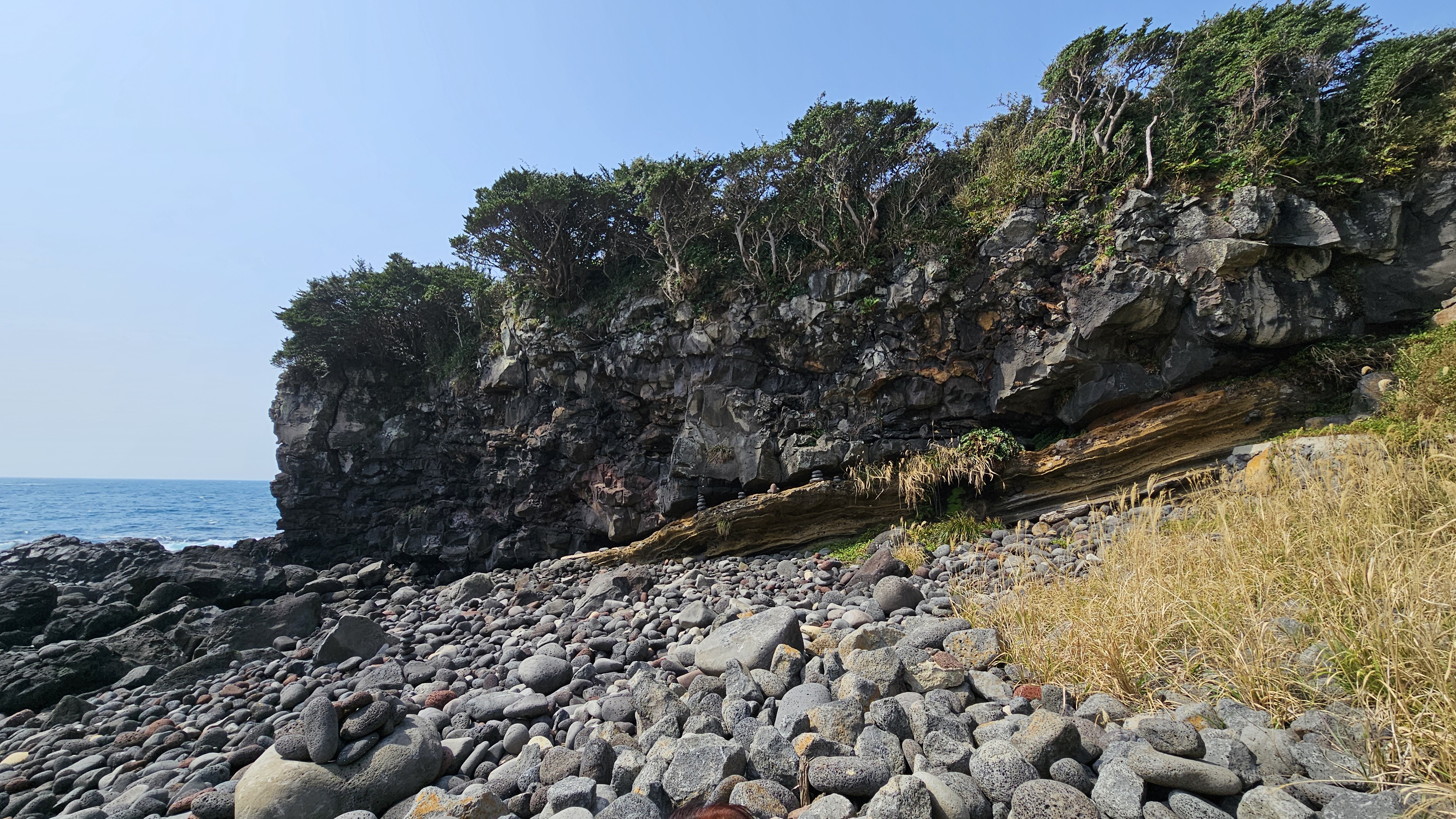 기암절벽과 먹돌해안이 어우러져 비경을 이룬다.