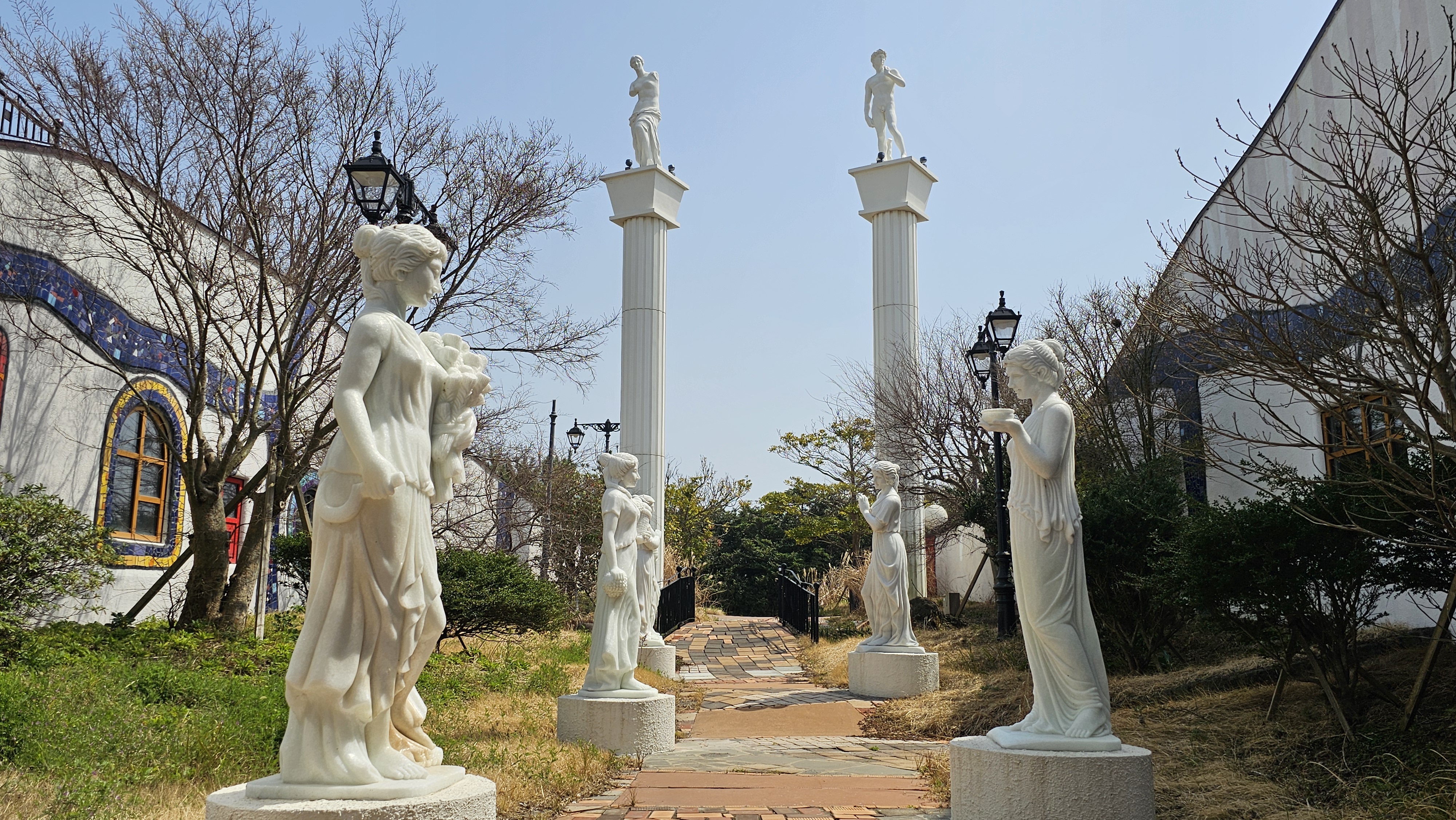 기다란 세라믹 기둥은 모양 하나 같은 게 없고,