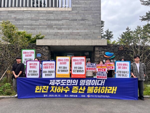 제주시민사회단체연대회의는 22일 한진 지하수 증산 허용을 심의한 지하수관리분과심위원회 결정에 대해 오영훈 도정을 강력 비판했다.